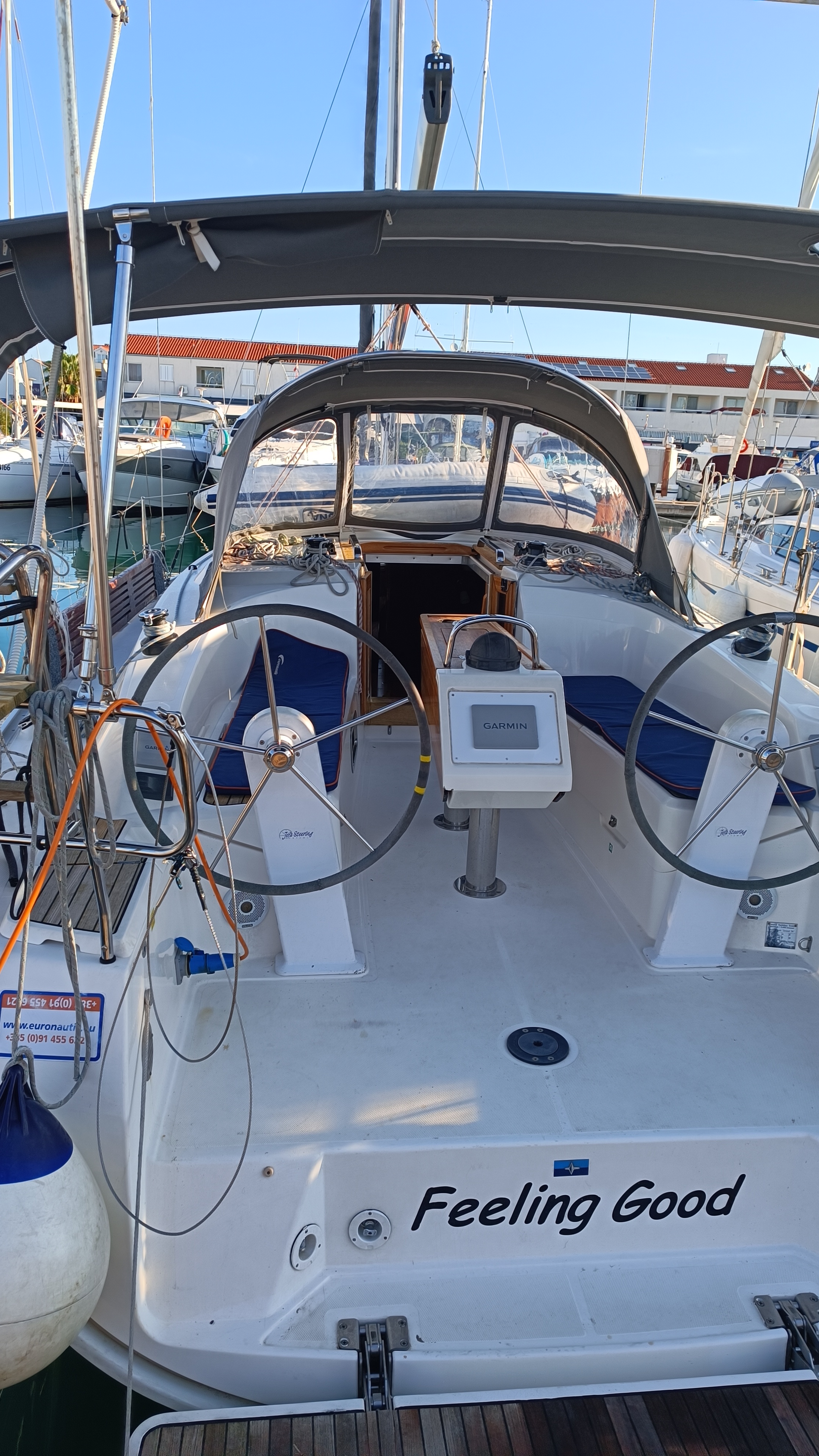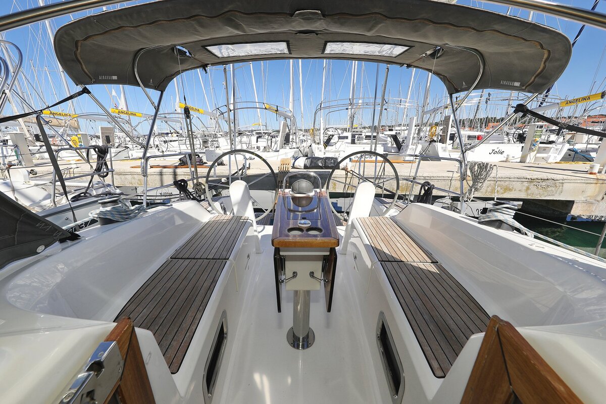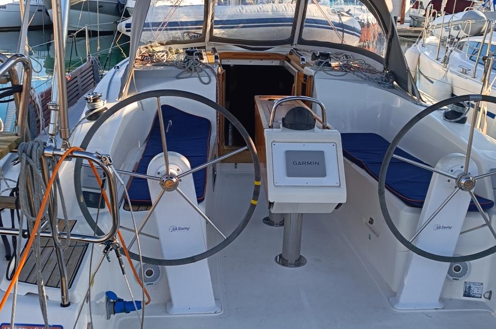 Outside Badeplattform, Biminitop, Cockpitdusche, Cockpitlautsprecher, Cockpitpolster, Cockpittisch, Delta-Anker, elektr. Ankerwinsch, Fender, Festmacherleinen, Gangway, Solaranlage, Sprayhood, Teak im Cockpit, Treibanker, Wantenschneider, Winschen