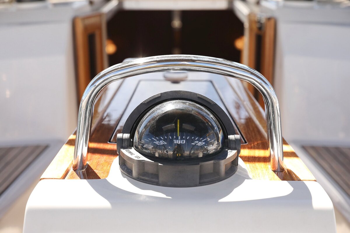 Navigation GPS mit Kartenplotter im Cockpit, Kompass, Seekarten, Tridata (Log, Echolot, Windm.)