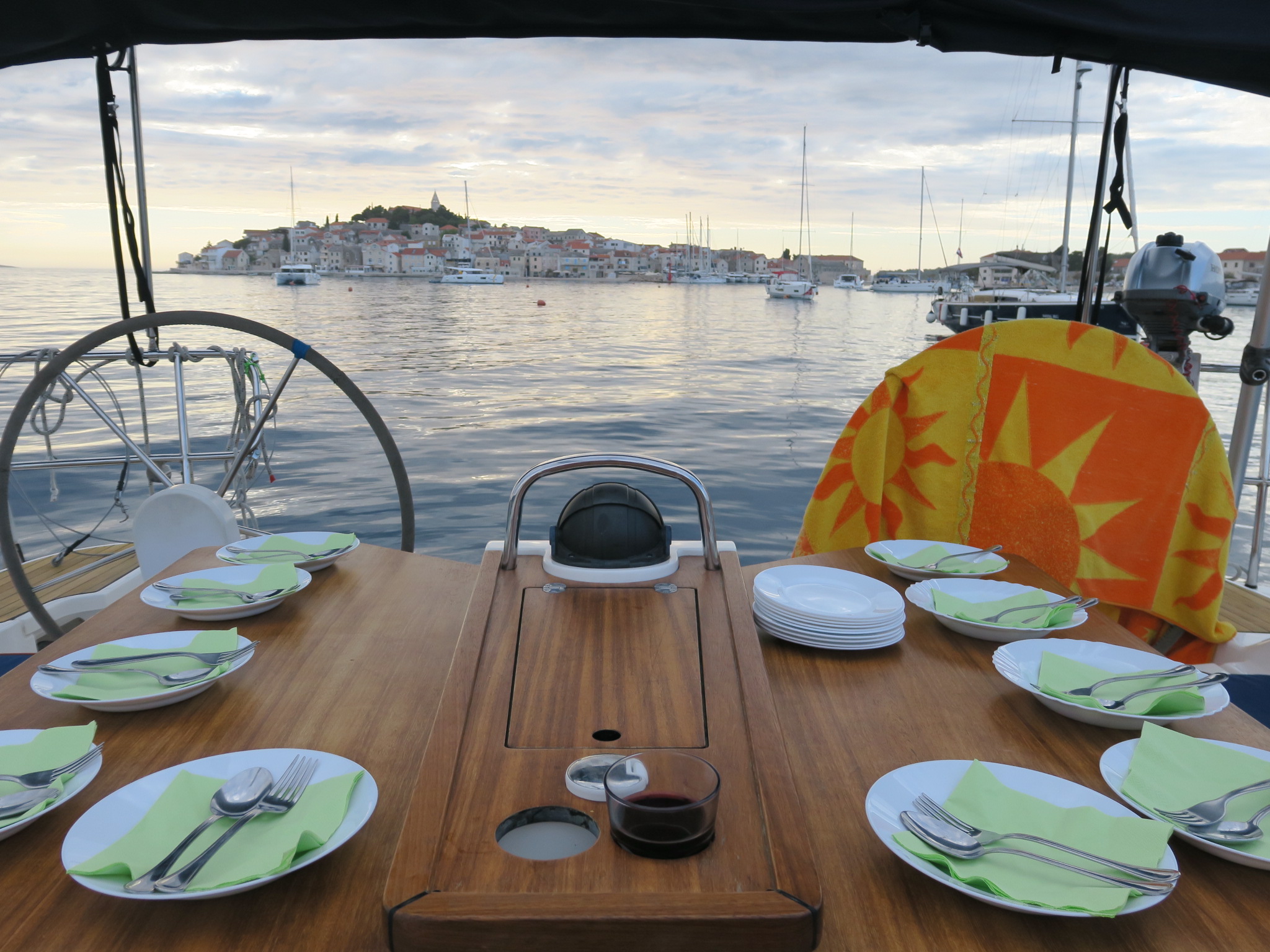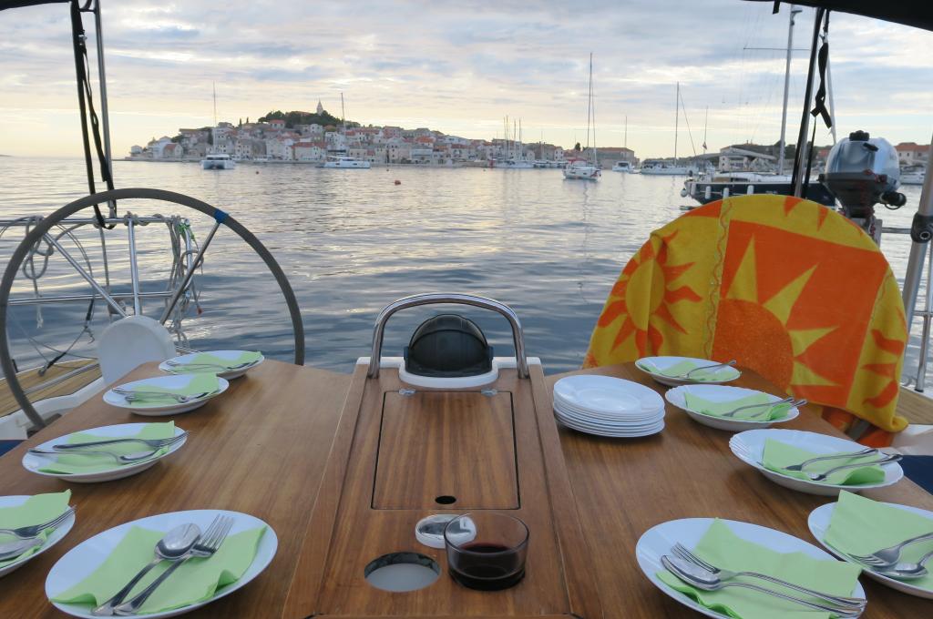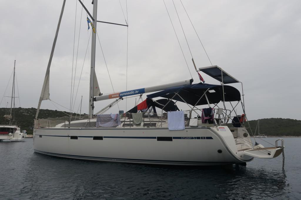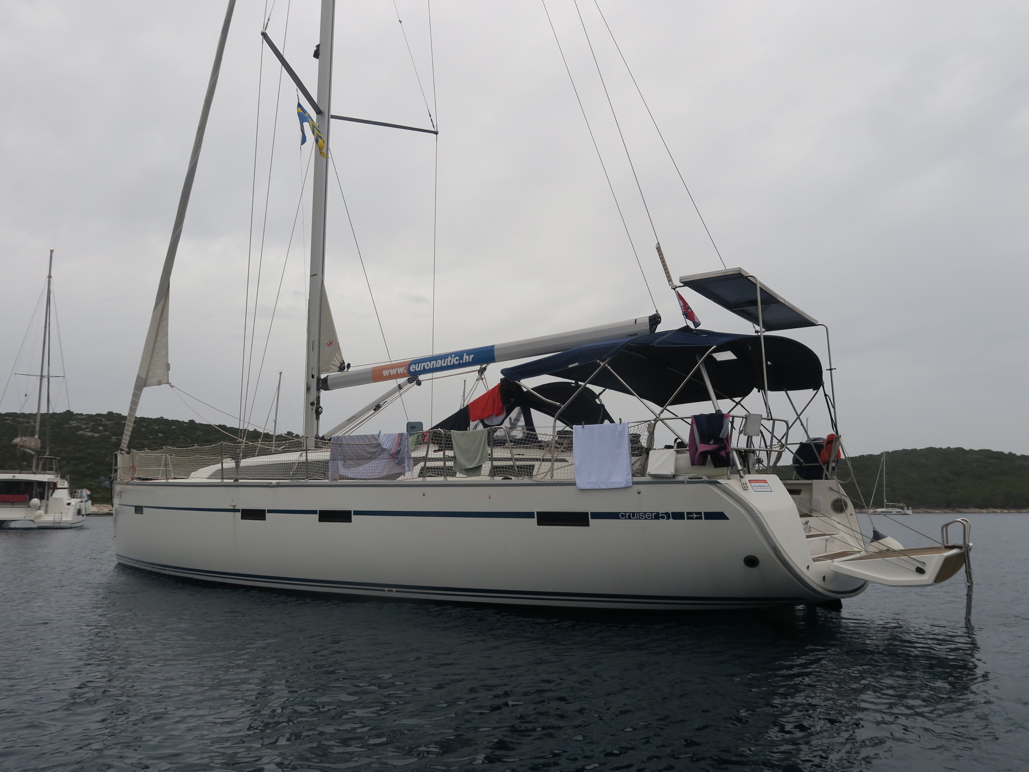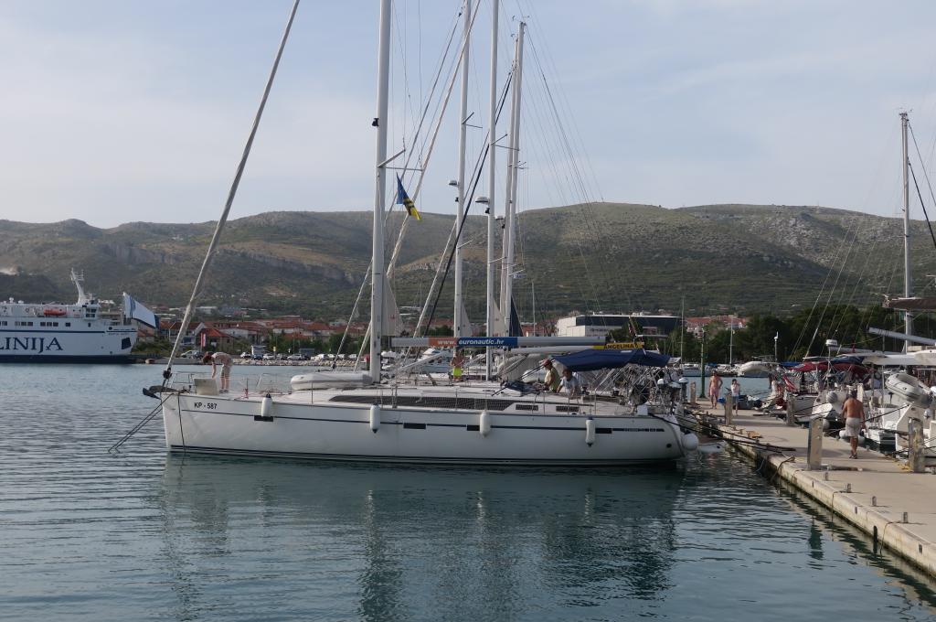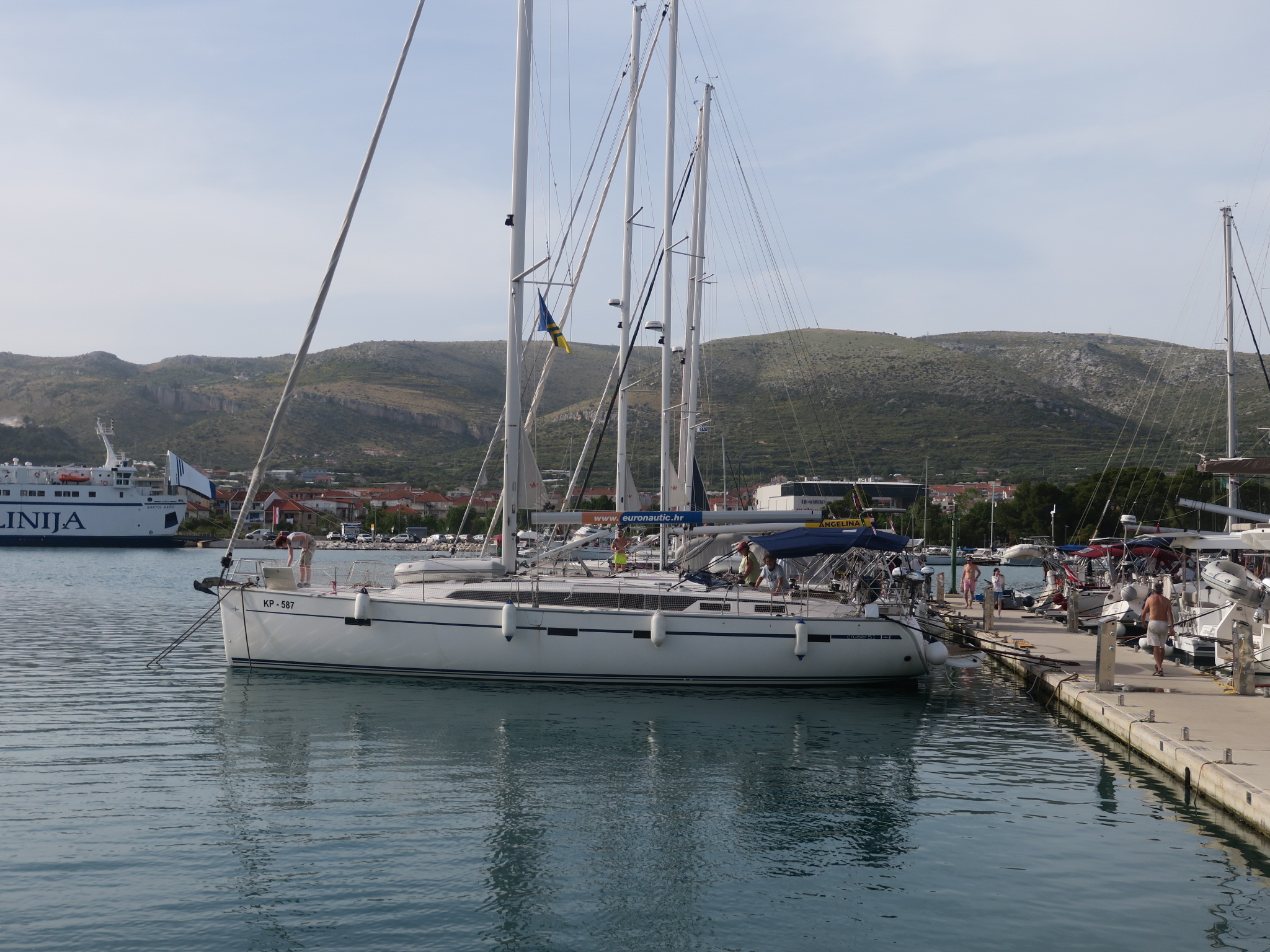 Yacht generell in sehr gutem Zustand. Viele Leinen, auch extra langer Festmacher für Landleine. Keine Rettungsinsel, trotz Vertrag. Von den Gasflaschen war eine fast leer und die Ersatzflasche ganz leer. Euronautics hat uns über Pitter in Trogir eine volle Flasche geschickt. Topplicht ging nicht, sonst alles klar.