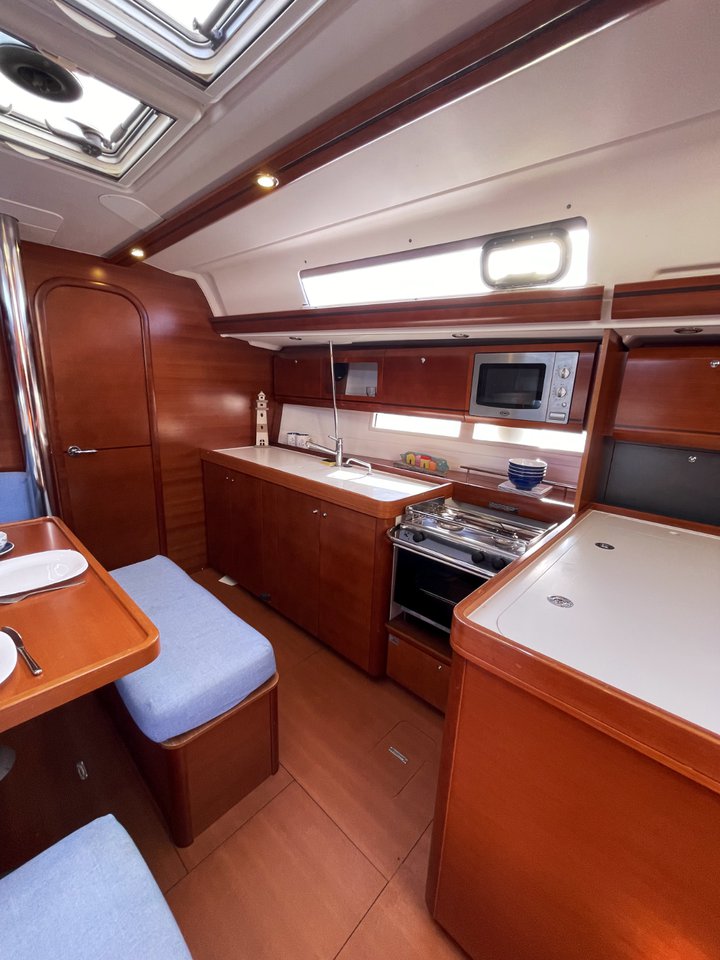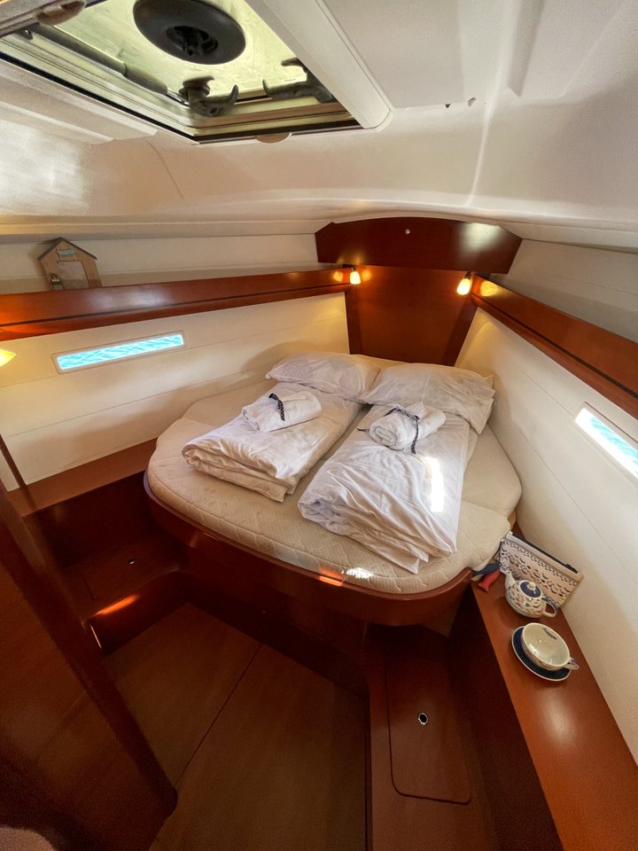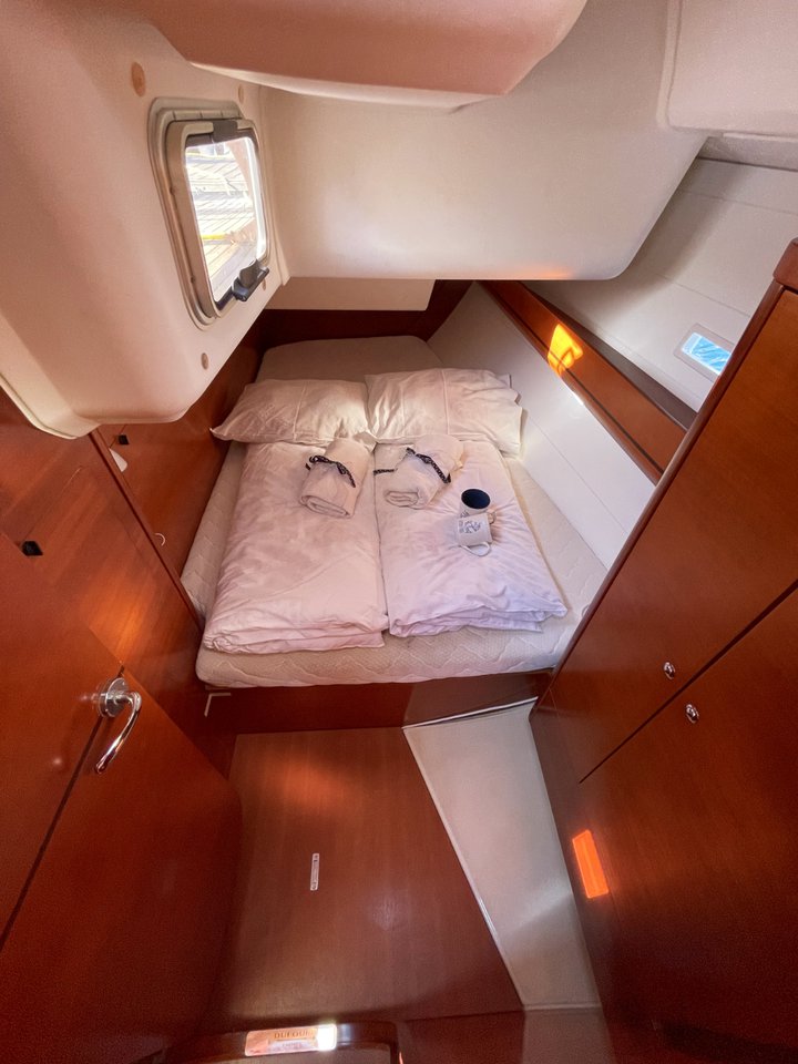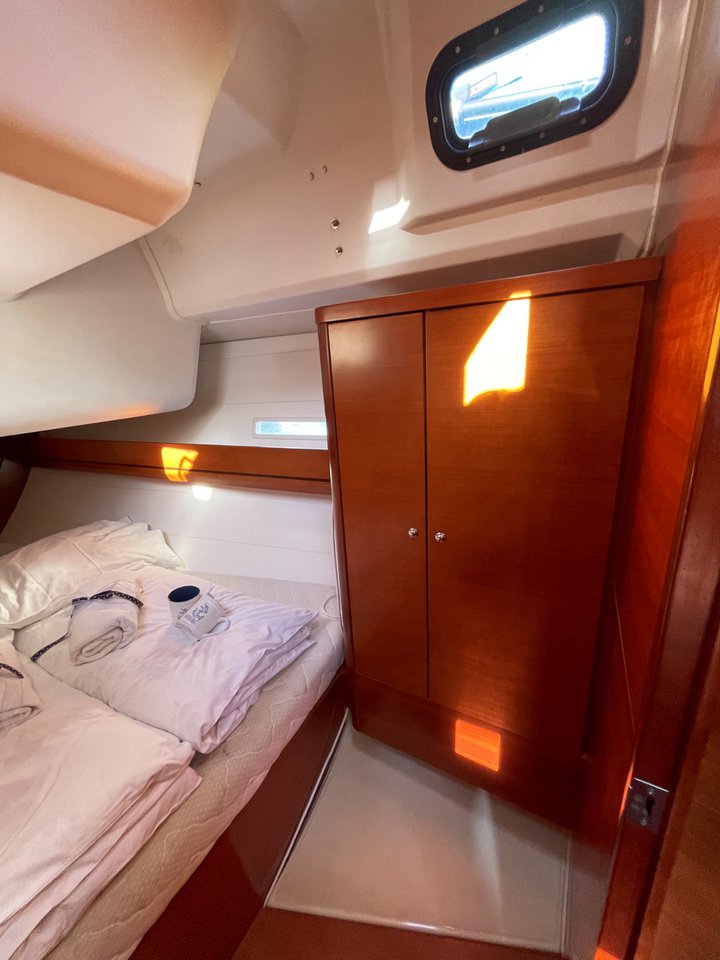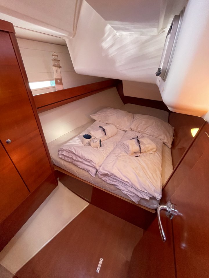 | Safety | Autopilot, Bordapotheke, elektr. Bilgepumpe, Feststoffschwimmwesten, Feuerlöscher, Handbilgepumpe, Markierungsboje, Notpinne, Notsignale, Radarreflektor, Rettungskragen, UKW-Funk m. DSC |