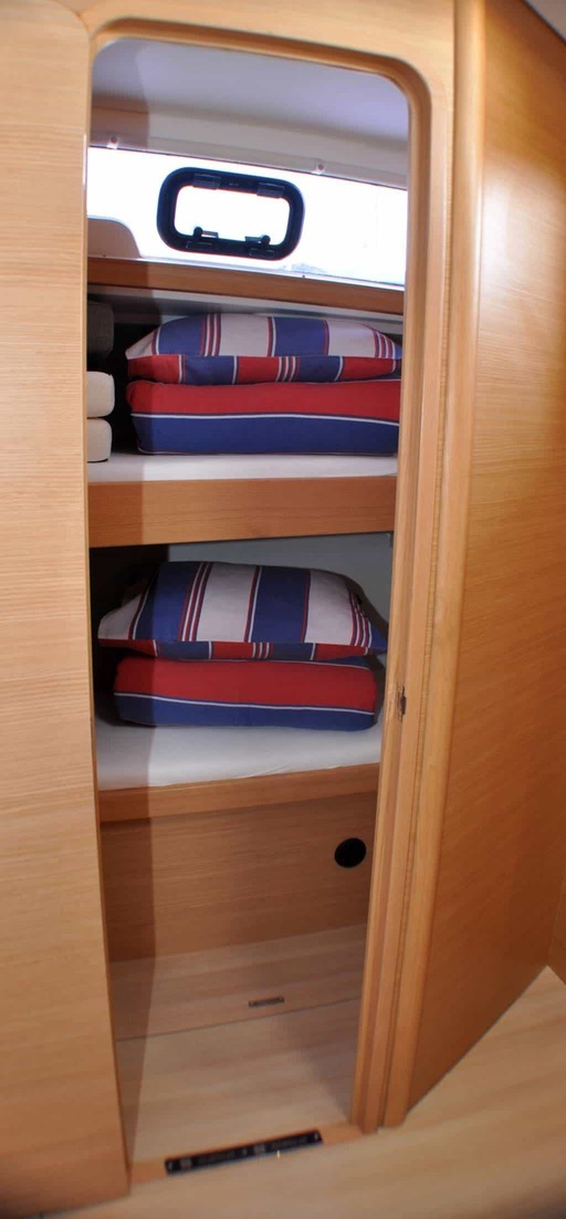 | Safety | Autopilot, Blitzboje, Bordapotheke, Bordwerkzeug, Bugstrahlruder, elektr. Bilgepumpe, Feuerlöscher, Handbilgepumpe, Lifebelts, Nebelhorn, Notpinne, Notsignale, Radarreflektor, Rettungsinsel, Rettungskragen, Rettungswesten, Taschenlampe, UKW-Funk, Zweitanker |