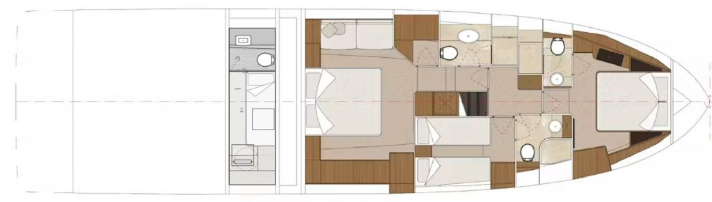 | Outside | Anker mit Kette, Badeleiter, Badeplattform (hydr.), Cockpitkühlschrank, Cockpitlautsprecher, Cockpittisch, Deckbeleuchtung, elektr. Ankerwinsch, Fender, Festmacherleinen, Flybridge, Grill, Hardtop, Jetski, Solaranlage, Spülbecken im Cockpit, Unterwasserbeleuchtung, Wet Bar |
