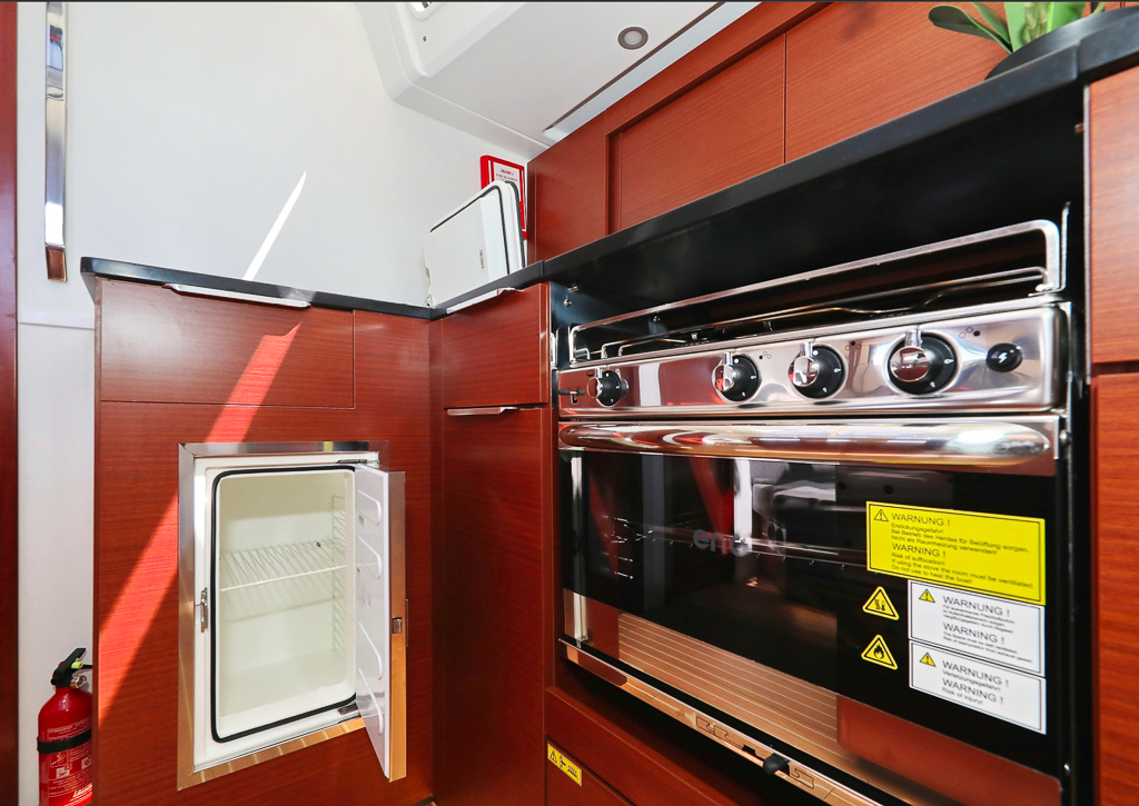 | Inside | Backofen, Gasherd, Generator, Heizung, Inverter 12V/220V, Klimaanlage (ohne Landstrombedarf), Kühlschrank, Ladegerät, Pantryausstattung, Radio mit CD, TV, Warmwasser |