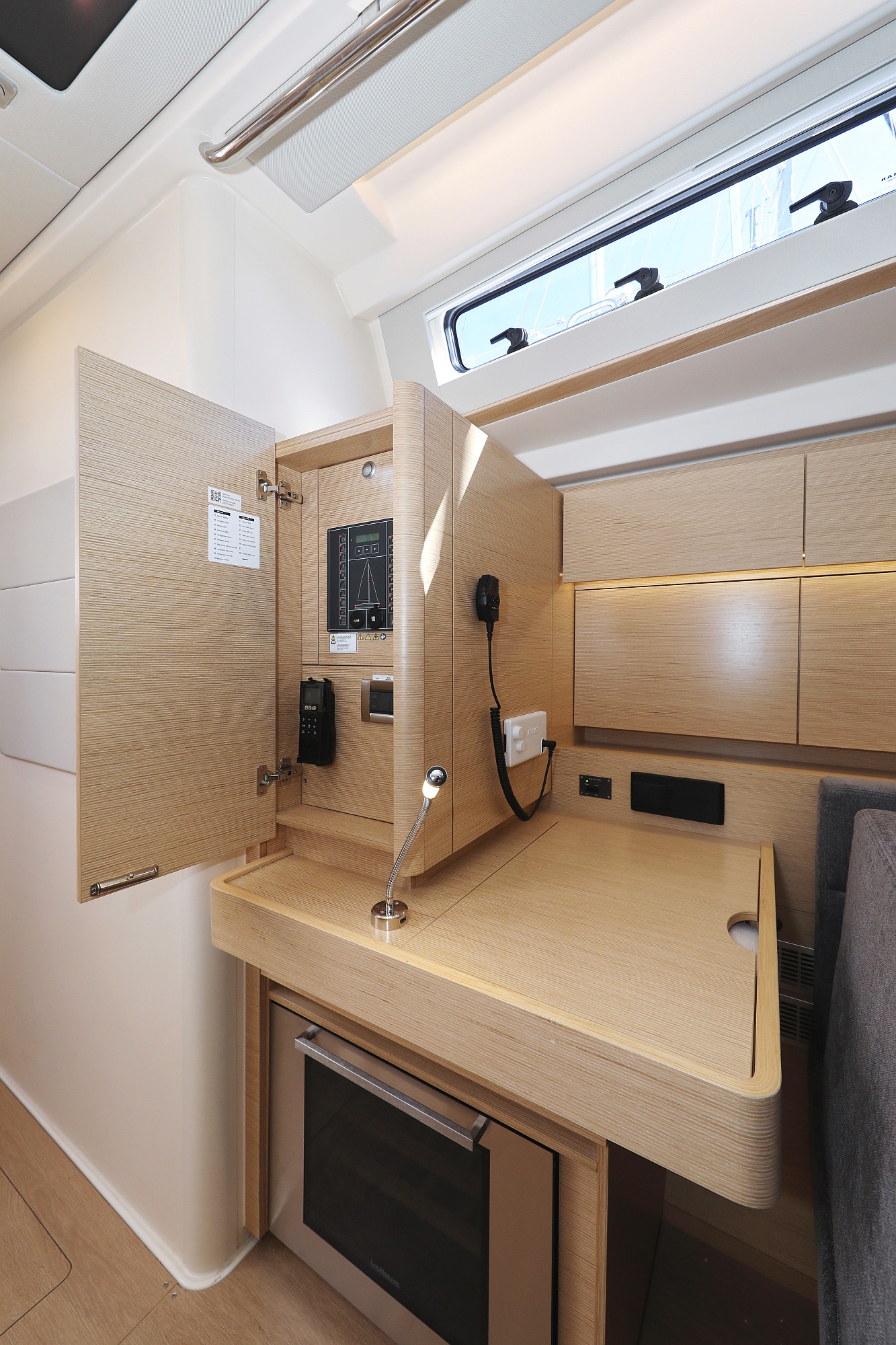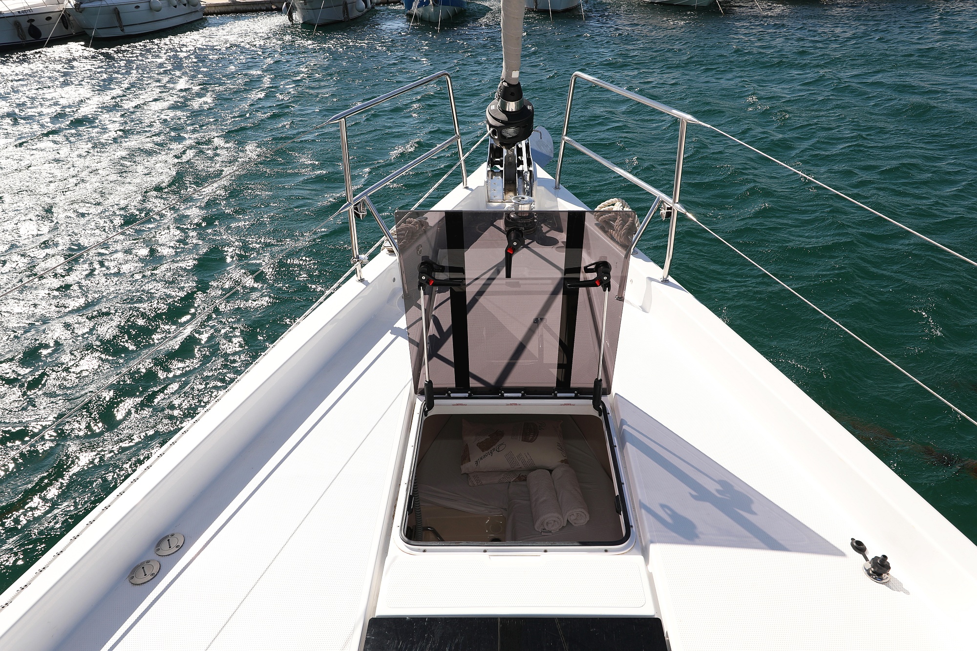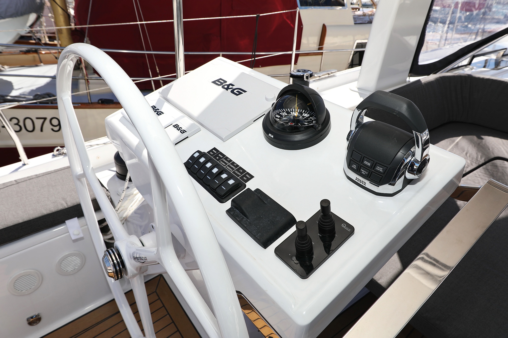 | Safety | Autopilot, Bootsmannstuhl, Bordapotheke, Bordwerkzeug, Bugstrahlruder, Feststoffschwimmwesten, Feuerlöscher, Heckstrahlruder, Lifebelts, Navigationslichter, Nebelhorn, Notpinne, Notsignale, Rettungskragen, Taschenlampe, UKW-Funk m. DSC, Zweitanker |