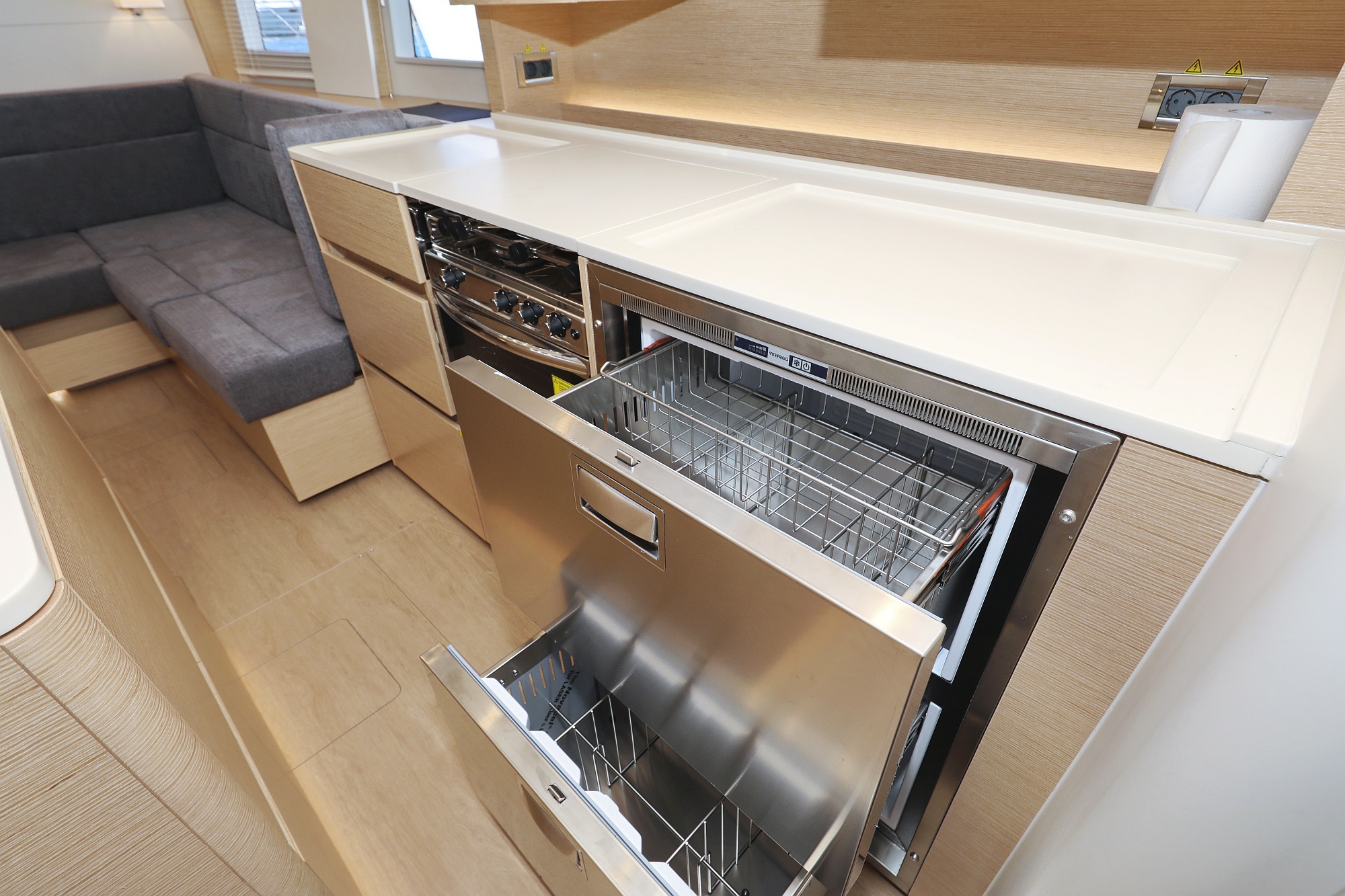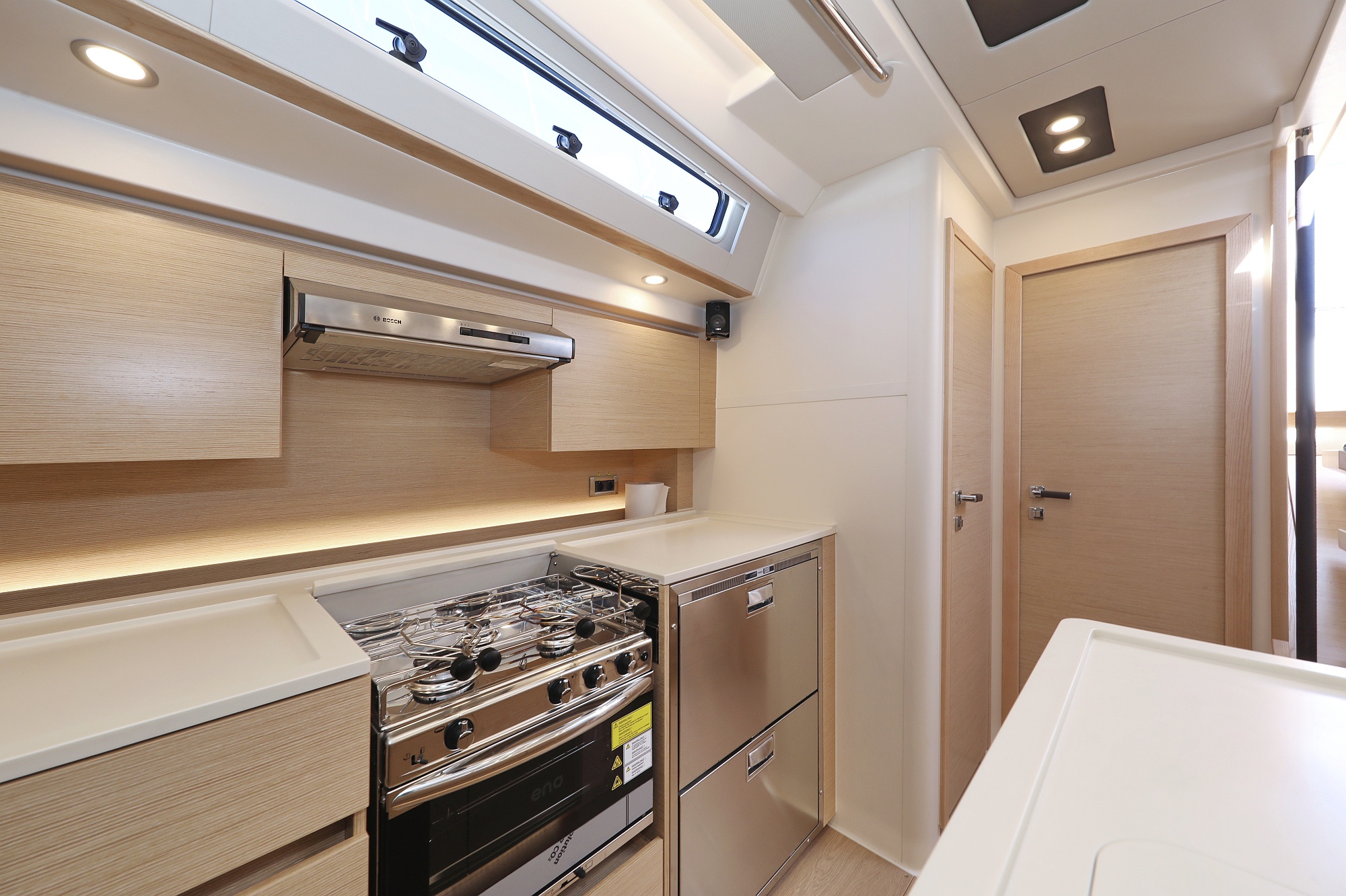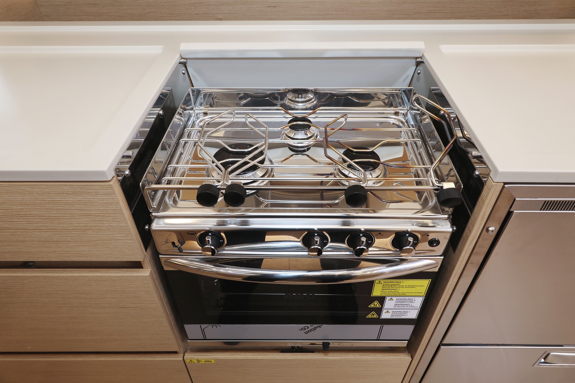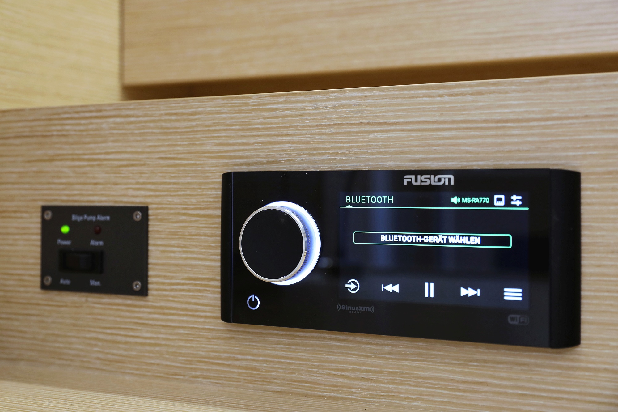 | Inside | Backofen, FUSION Sound System, Gasherd, Gefrierschrank, Generator, Heizung, Inverter 12V/220V, Klimaanlage (ohne Landstrombedarf), Kühlschrank, Ladegerät, LED-Innenleuchten, Pantryausstattung, Radio mit USB und Bluetooth, TV, Warmwasser, Weinkühlschrank |
