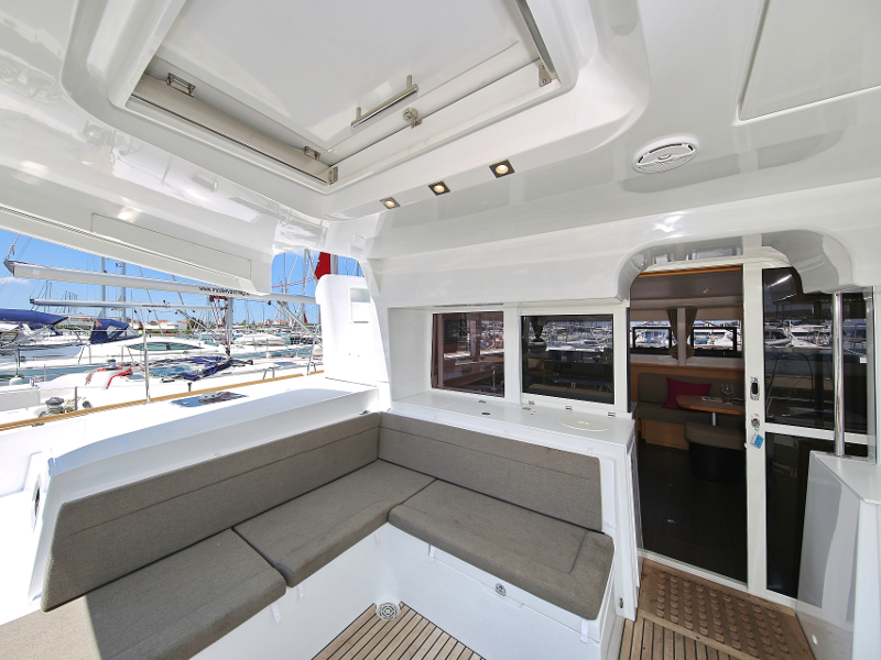 | Outside | Anker mit Kette, Biminitop, Cockpitdusche, Cockpitlautsprecher, elektr. Ankerwinsch, Teak im Cockpit |