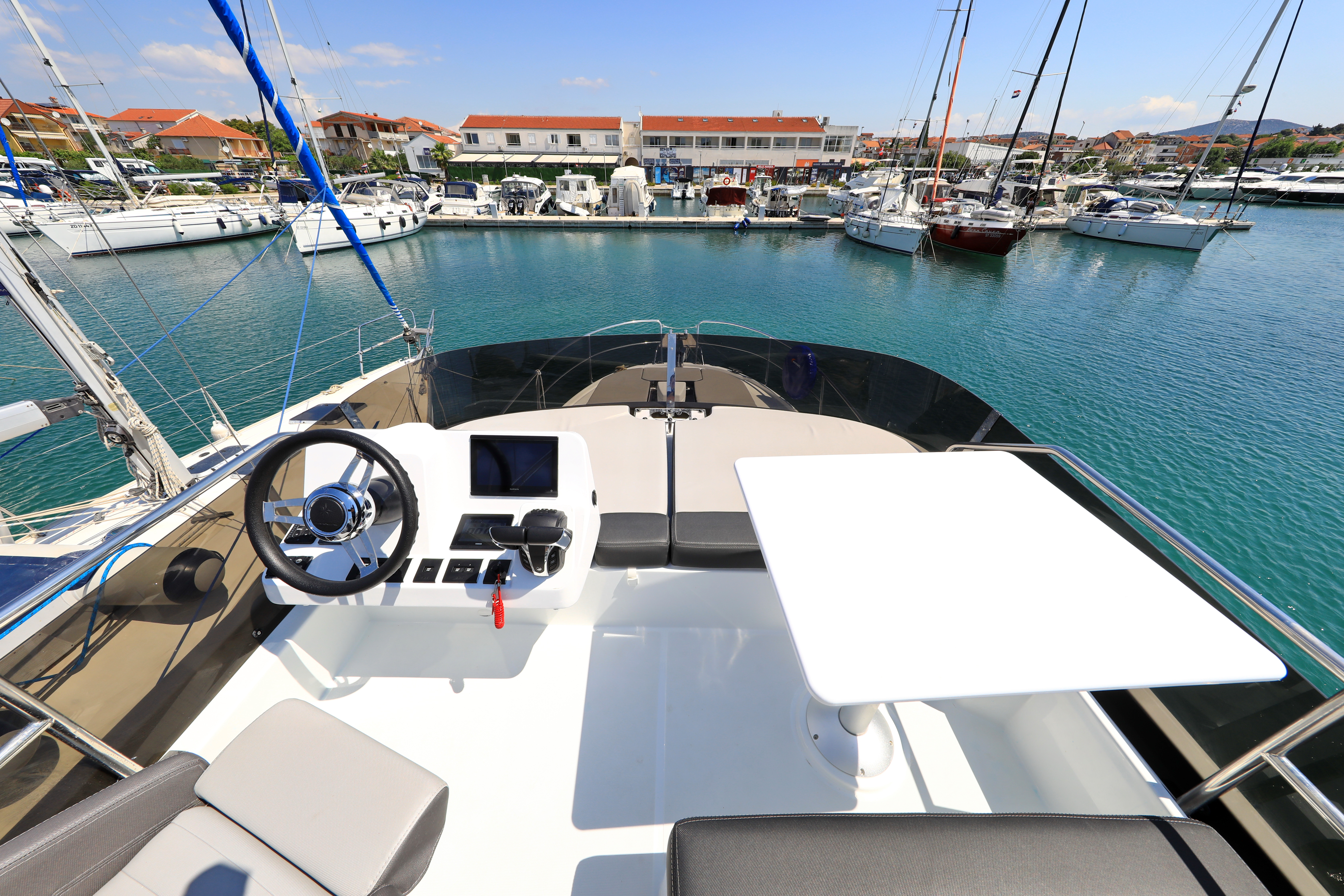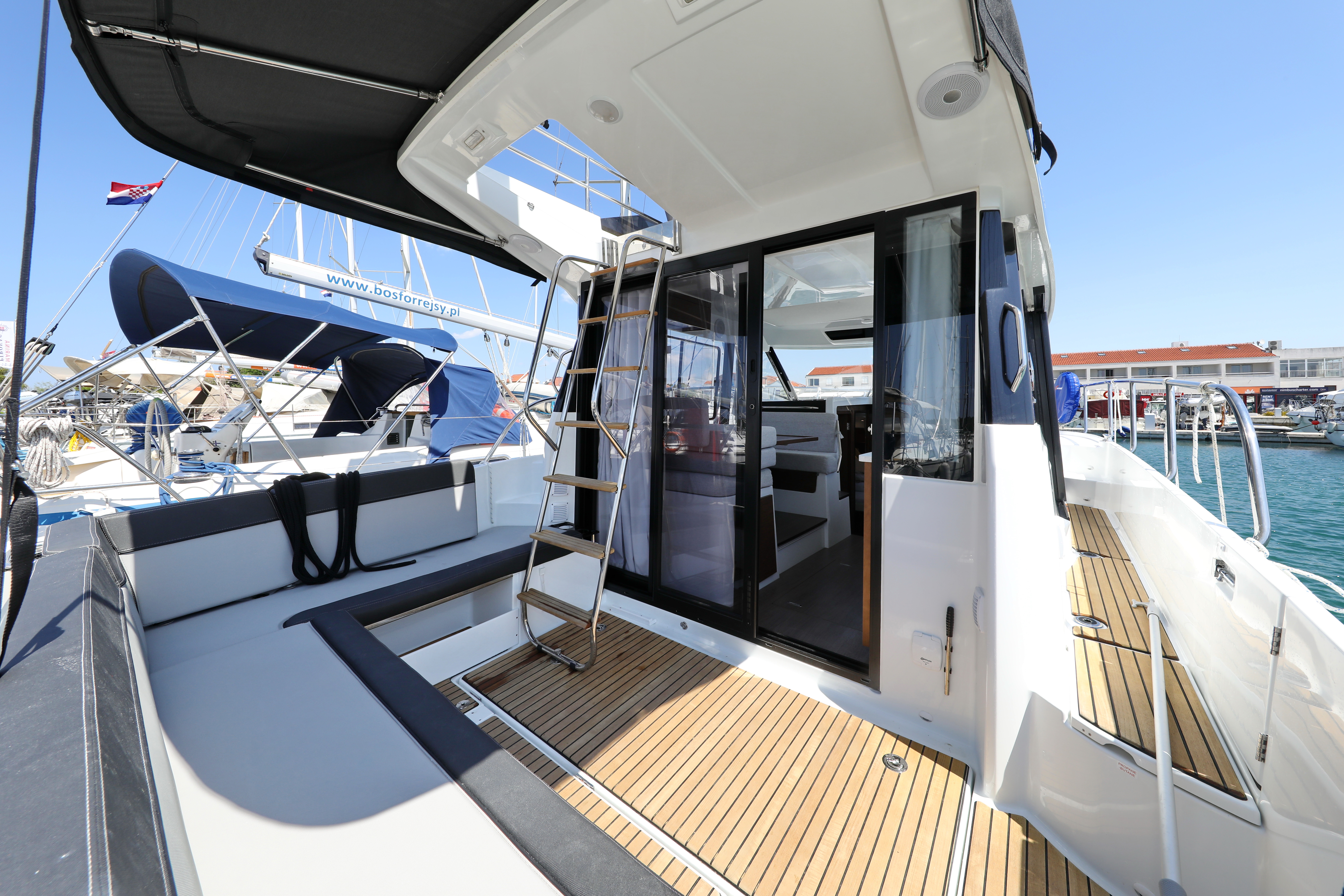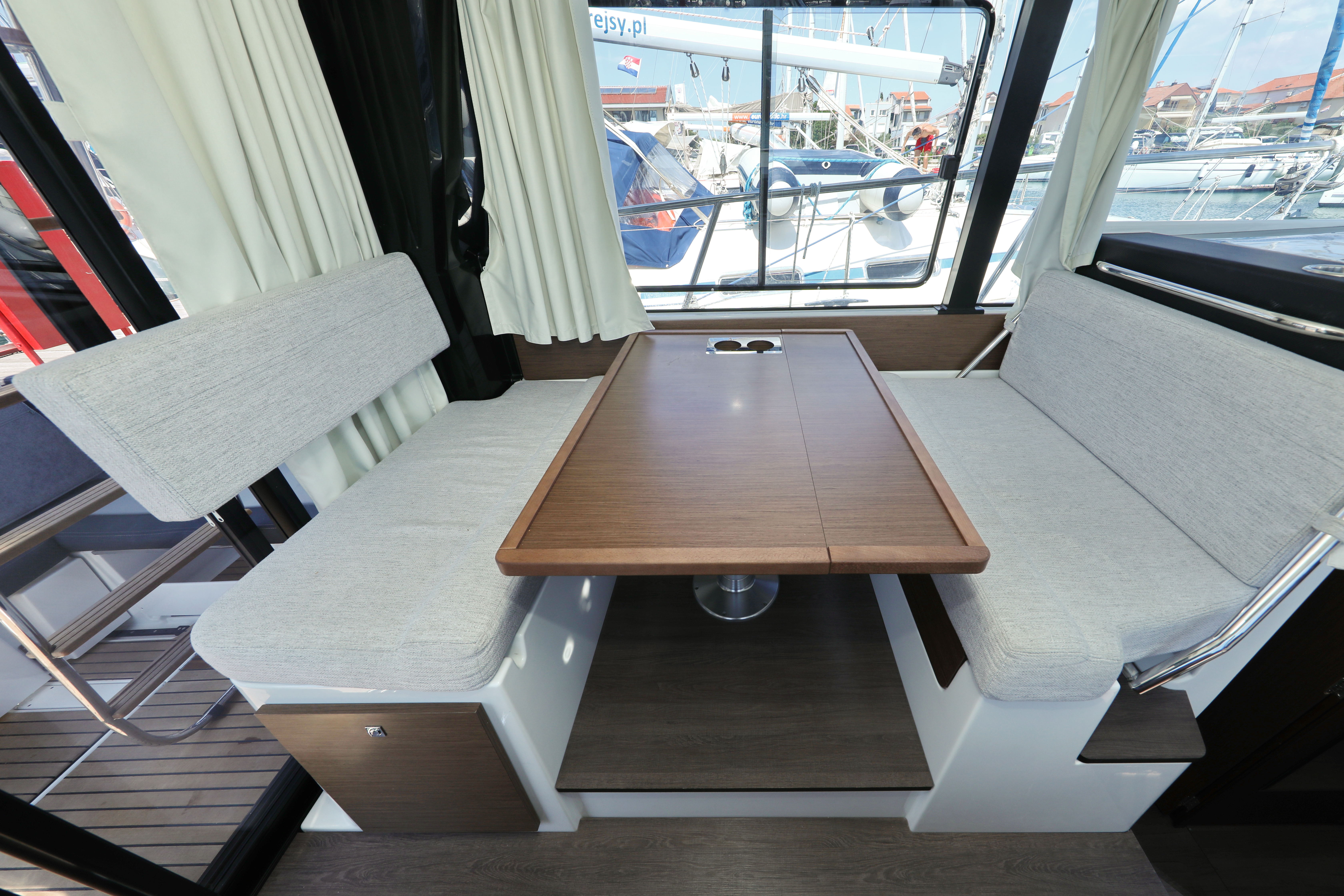 | Outside | 220 V-Landanschluss, Biminitop, Cockpitdusche, Cockpitpolster, elektr. Ankerwinsch, Fender, Festmacherleinen |