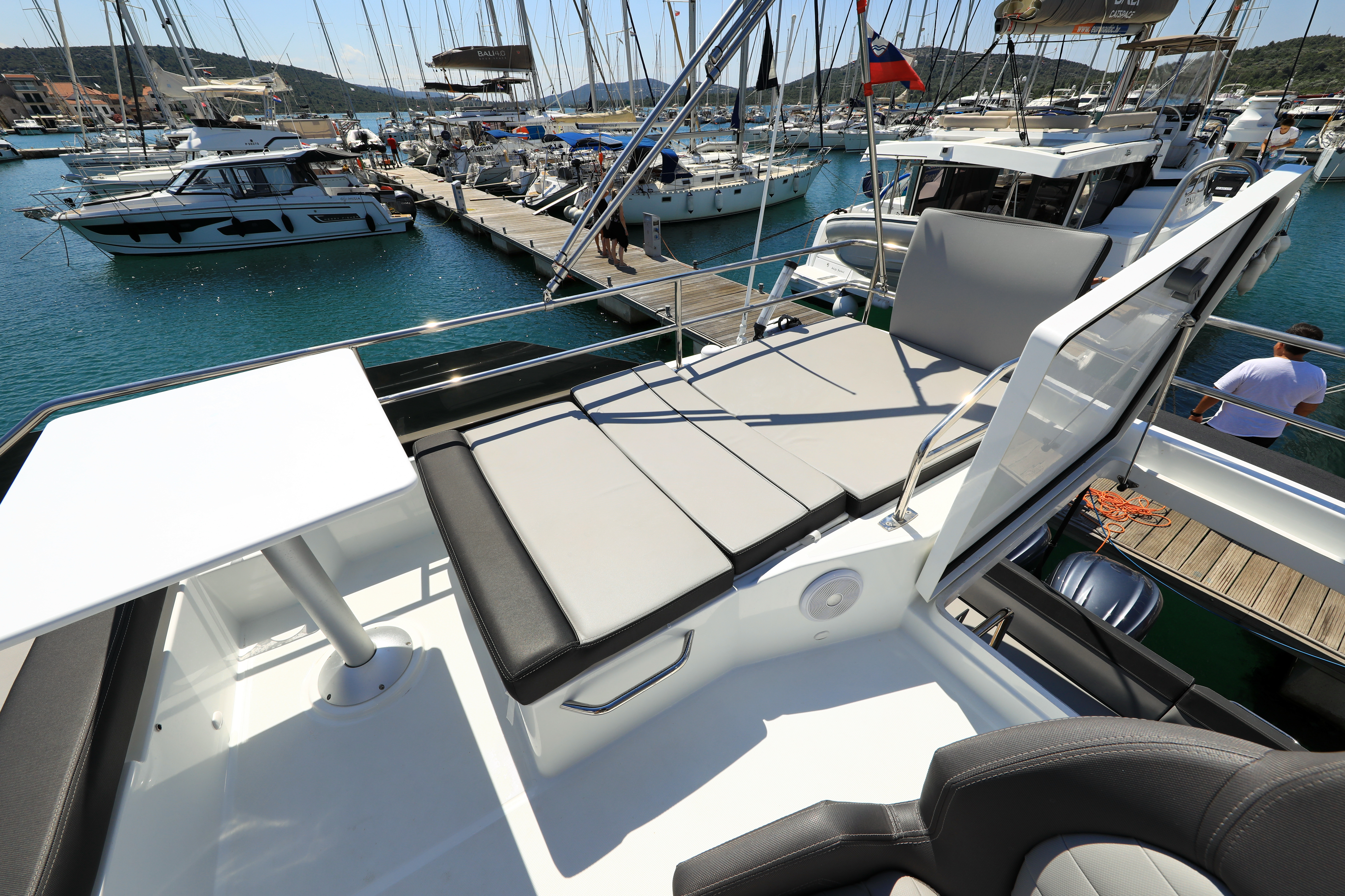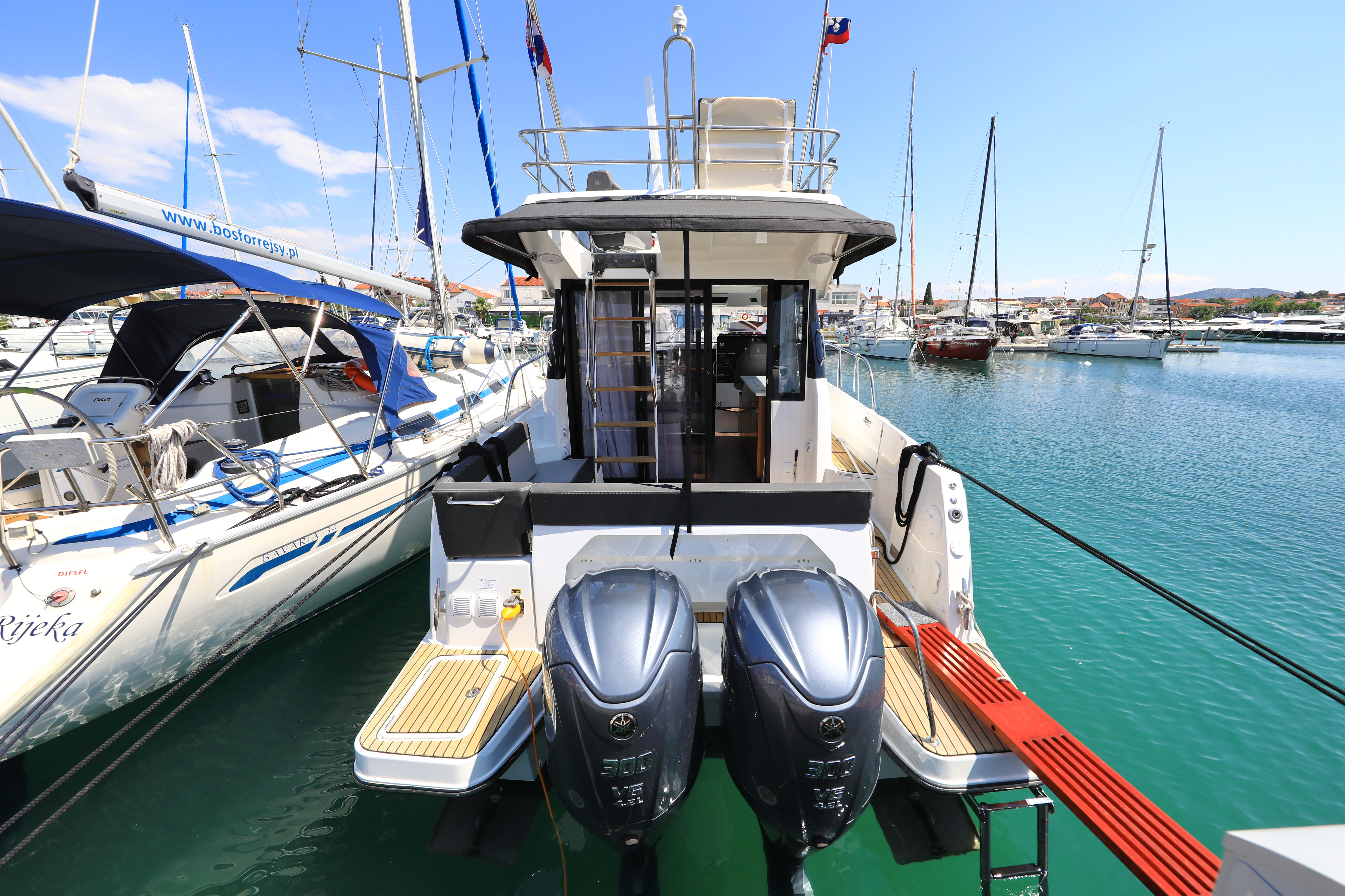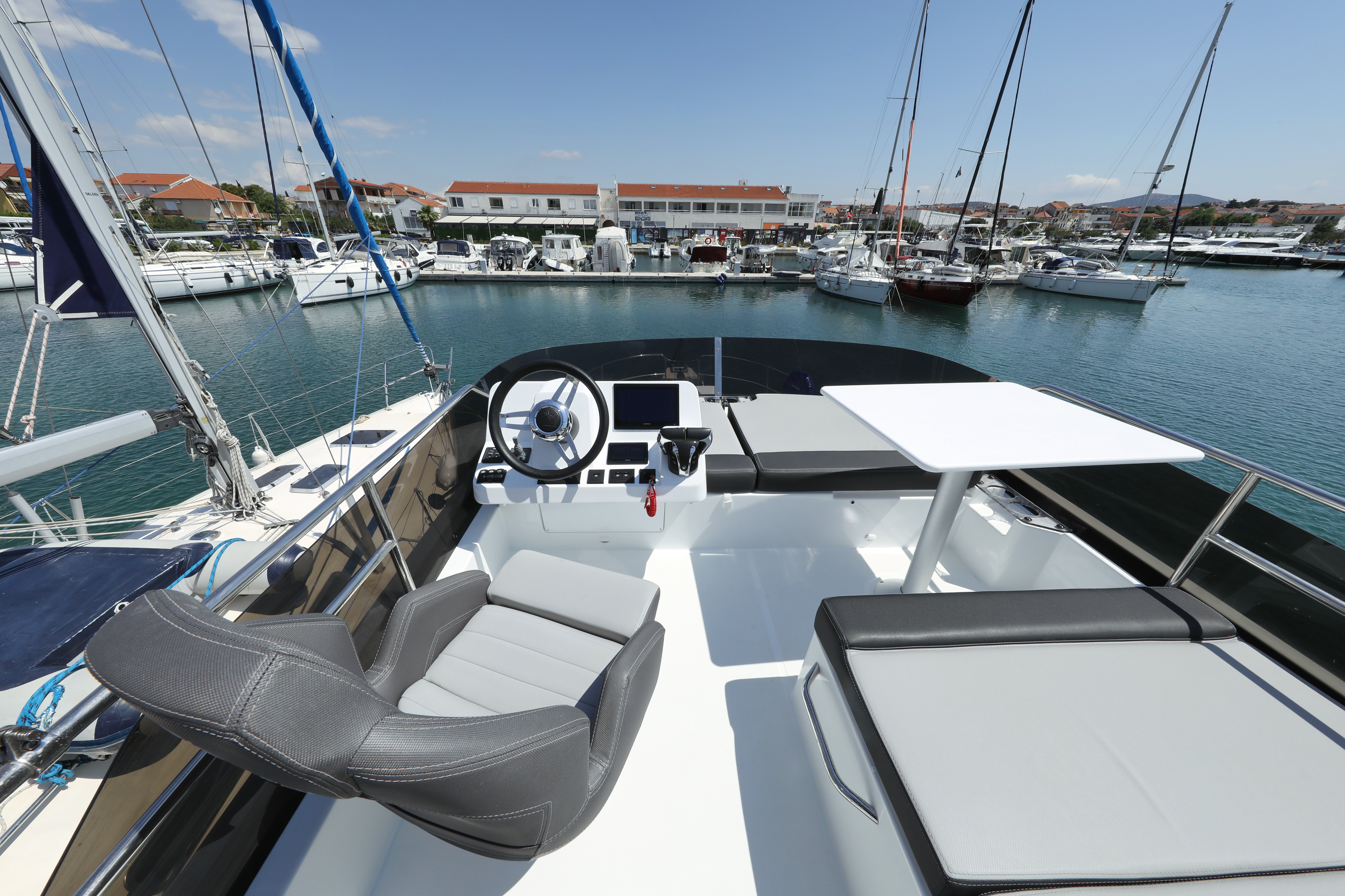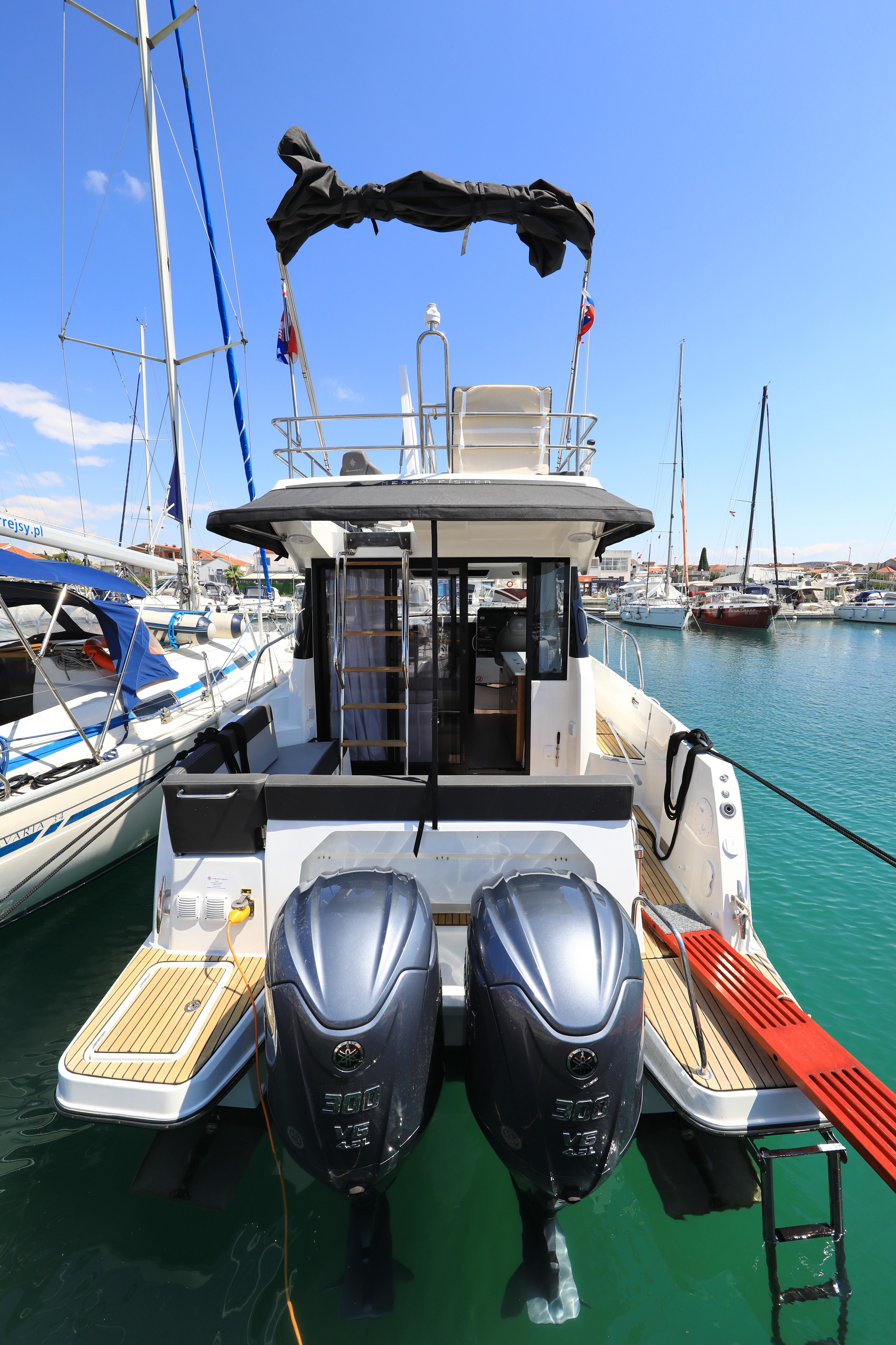 | Outside | 220 V-Landanschluss, Biminitop, Cockpitdusche, Cockpitpolster, elektr. Ankerwinsch, Fender, Festmacherleinen |