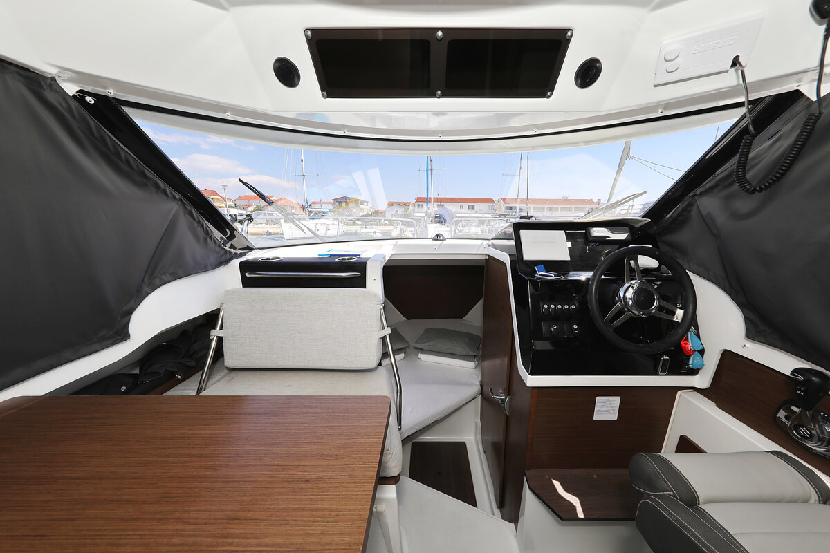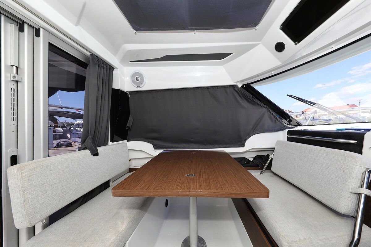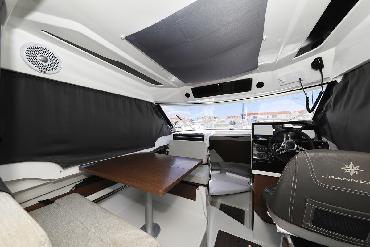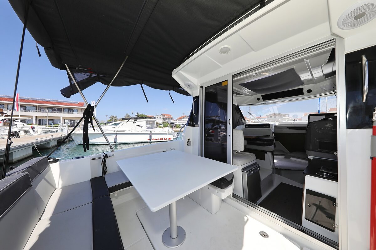 | Outside | Anker mit Kette, Badeleiter, Biminitop, Cockpitdusche, Cockpitpolster, Cockpittisch, elektr. Ankerwinsch, Fender, Festmacherleinen, Solaranlage, Wantenschneider |