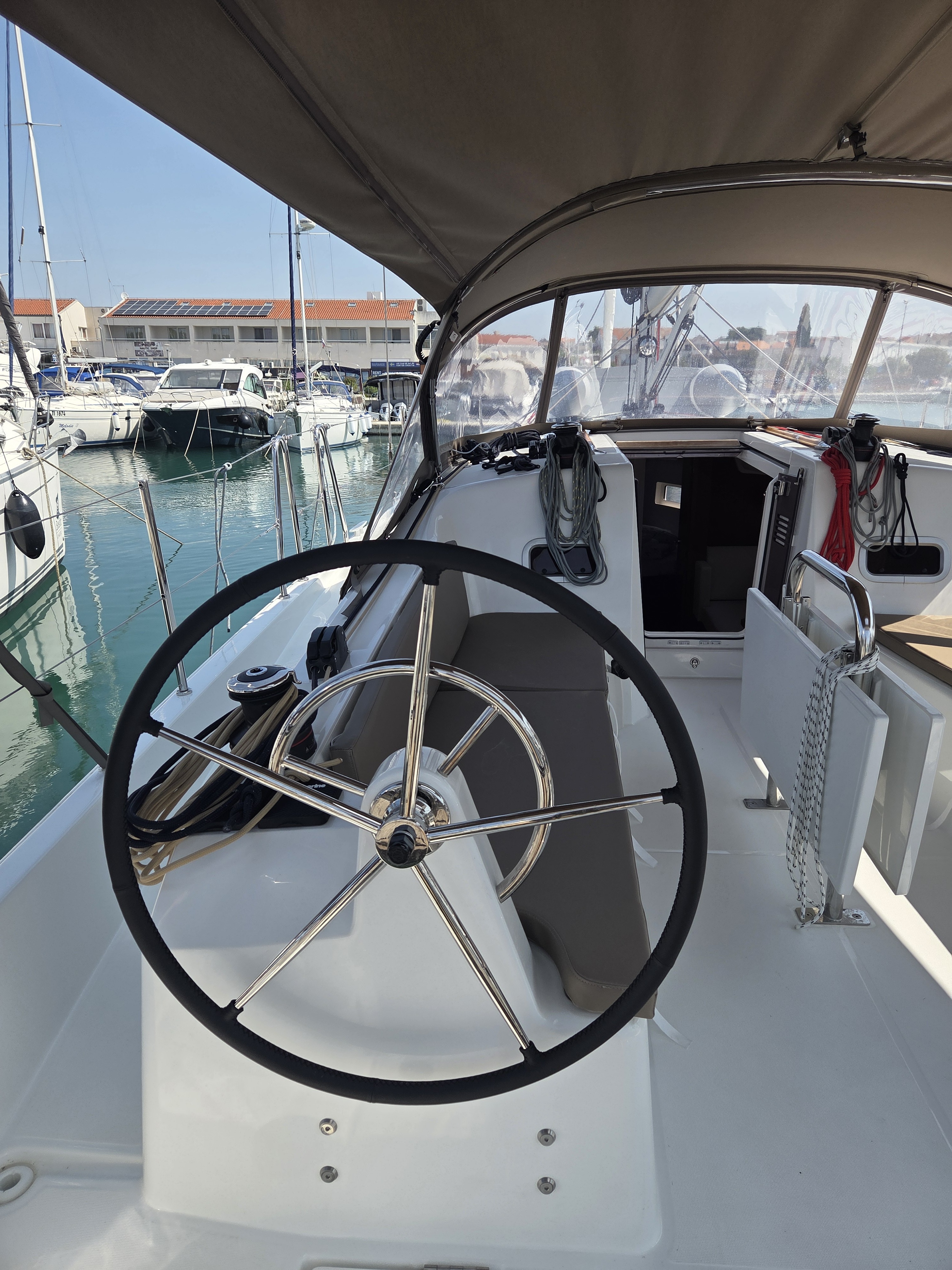 | Outside | Ankerkettenzähler, Badeleiter, Biminitop, Cockpitdusche, Cockpitlautsprecher, Cockpitpolster, elektr. Ankerwinsch, Fernsteuerung für elektr. Ankerwinsch, Gangway, Solaranlage, Sprayhood, Windex, Winschen |