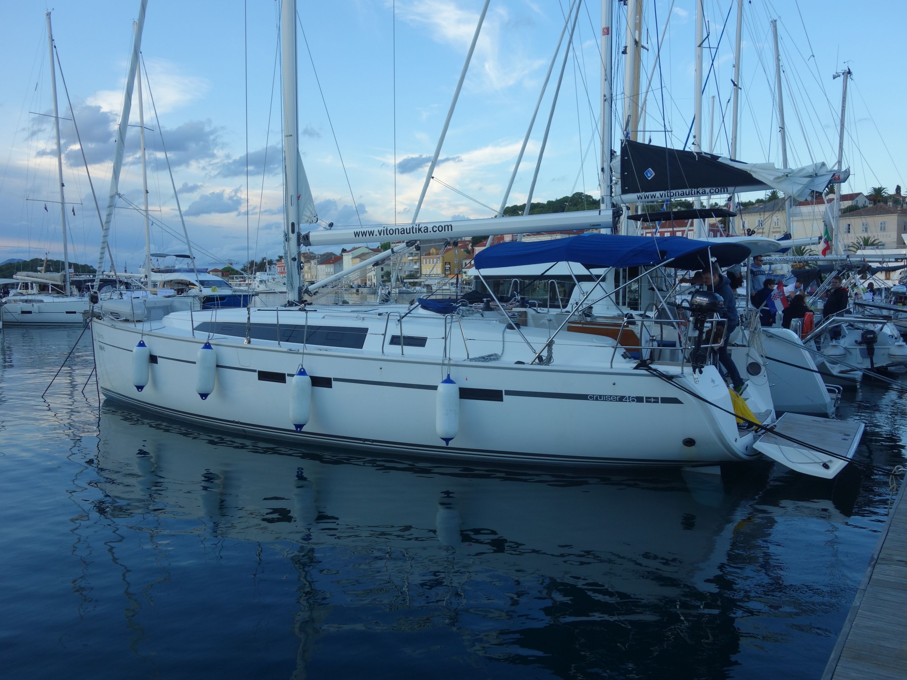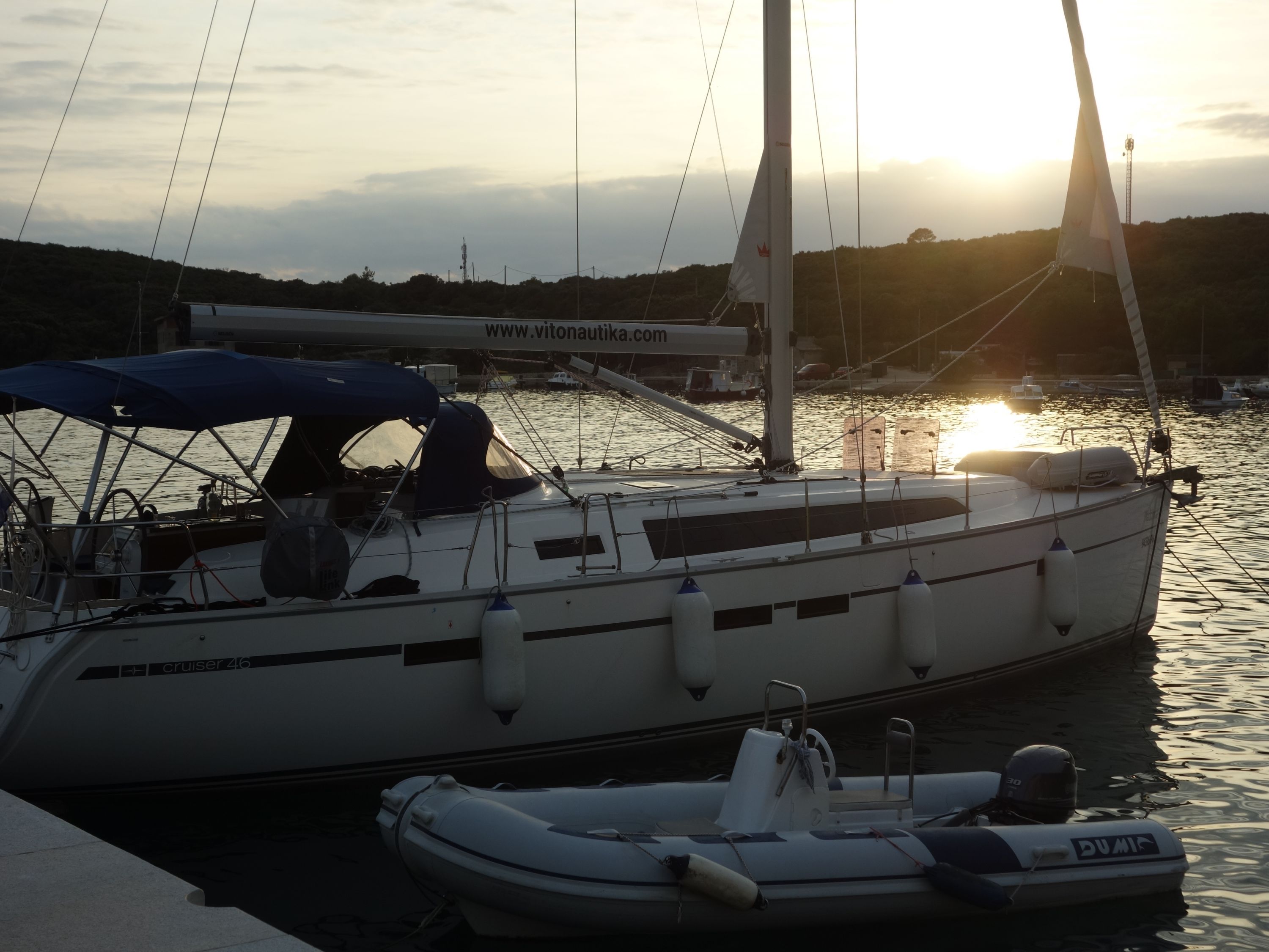 | Outside | 220 V-Landanschluss, Anker mit Kette, Badeplattform, Biminitop, Bootshaken, Cockpitdusche, Cockpitlautsprecher, Cockpittisch, Davits, Dieselkanister , elektr. Ankerwinsch, Fender, Festmacherleinen, Gangway, Kugelfender, Kunststoff-Eimer (Pütz), Sprayhood, Wantenschneider, Wasserkanister , Wasserschlauch, Windex |