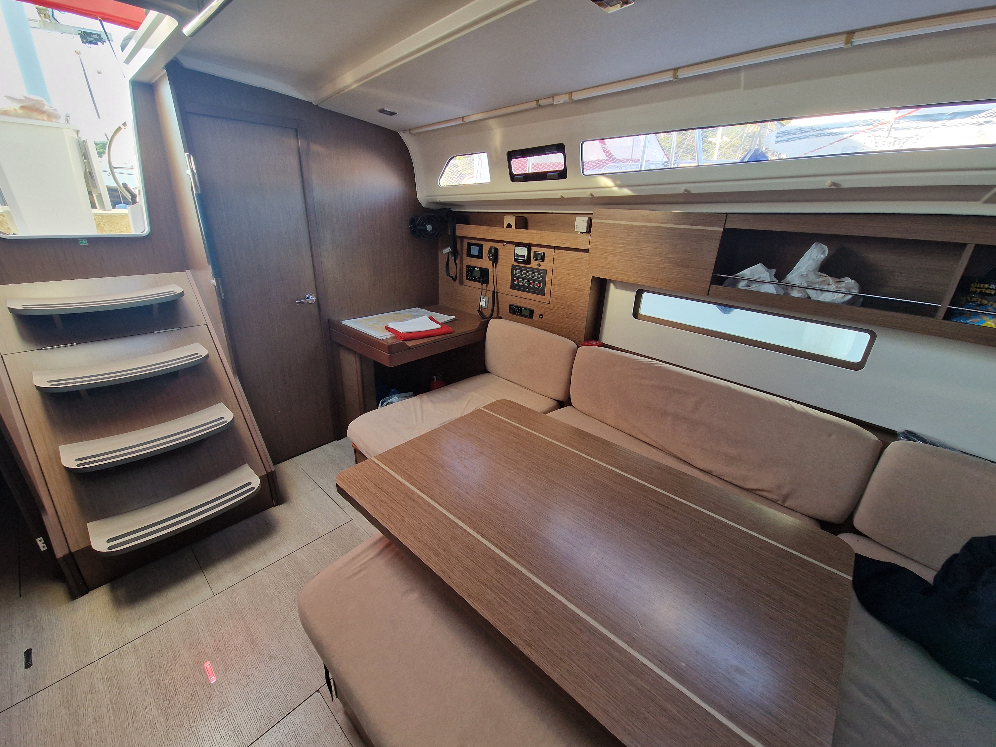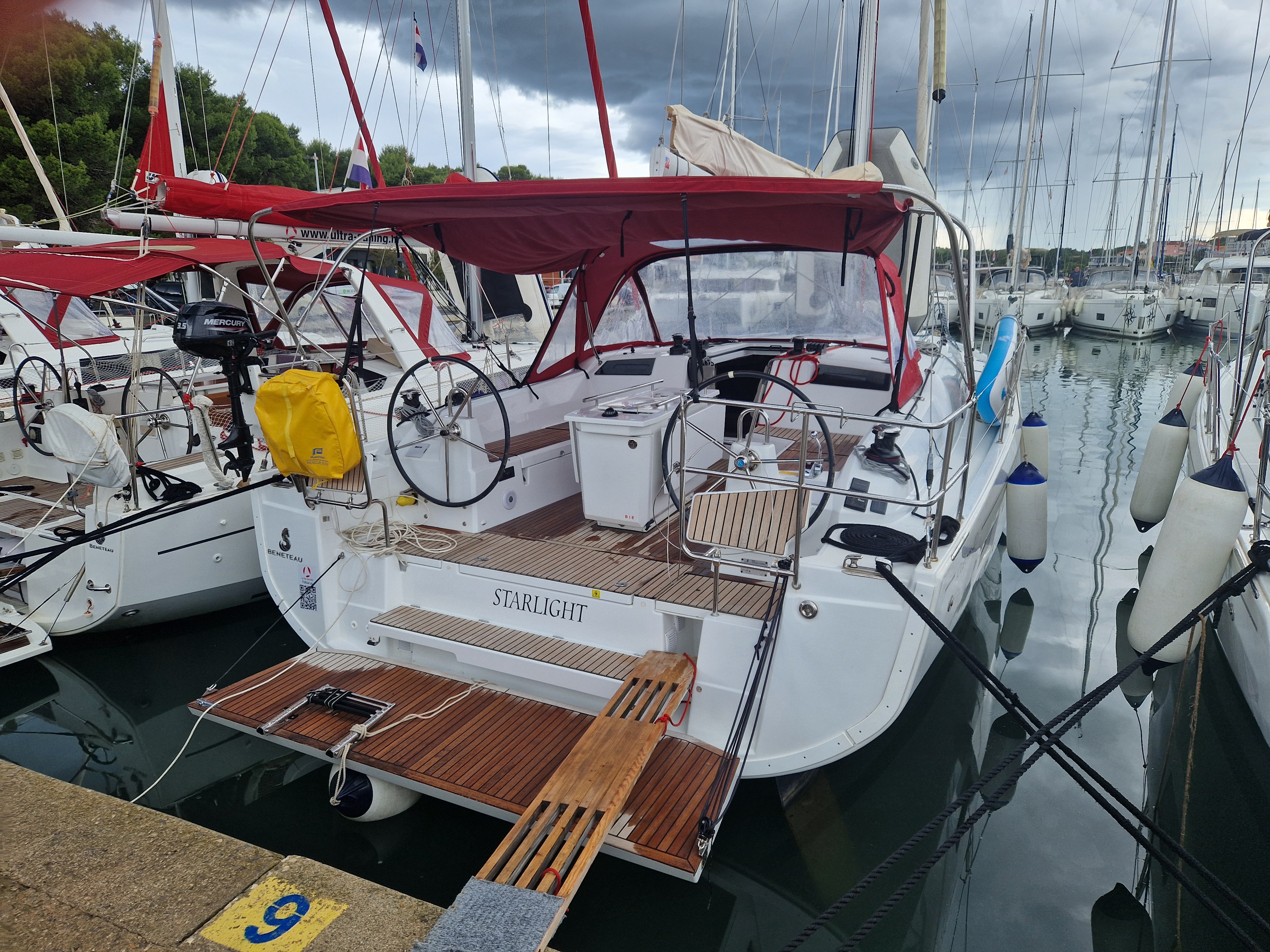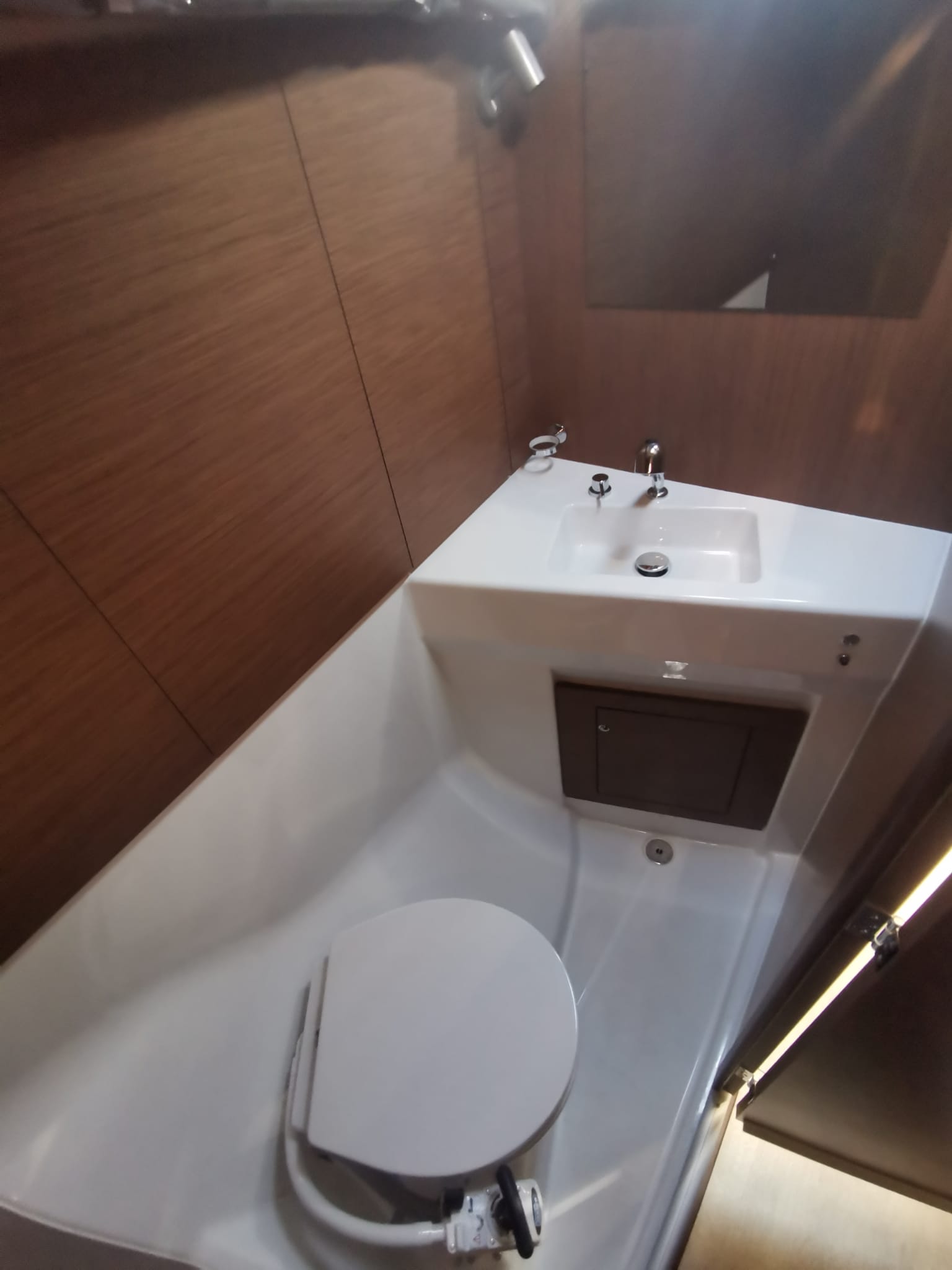 | Outside | 220 V-Landanschluss, Anker mit Kette, Badeplattform, Biminitop, Bootshaken, Cockpitdusche warm/kalt, Cockpitlautsprecher, Cockpittisch, elektr. Ankerwinsch, Fender, Gangway, Kugelfender, Solaranlage, Sprayhood |