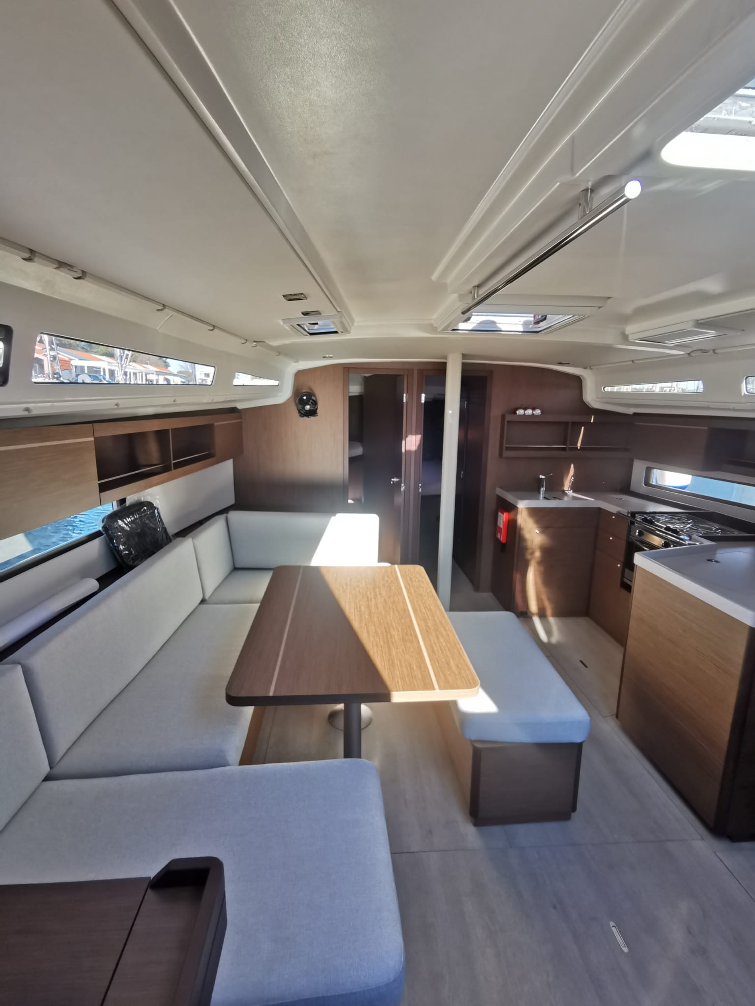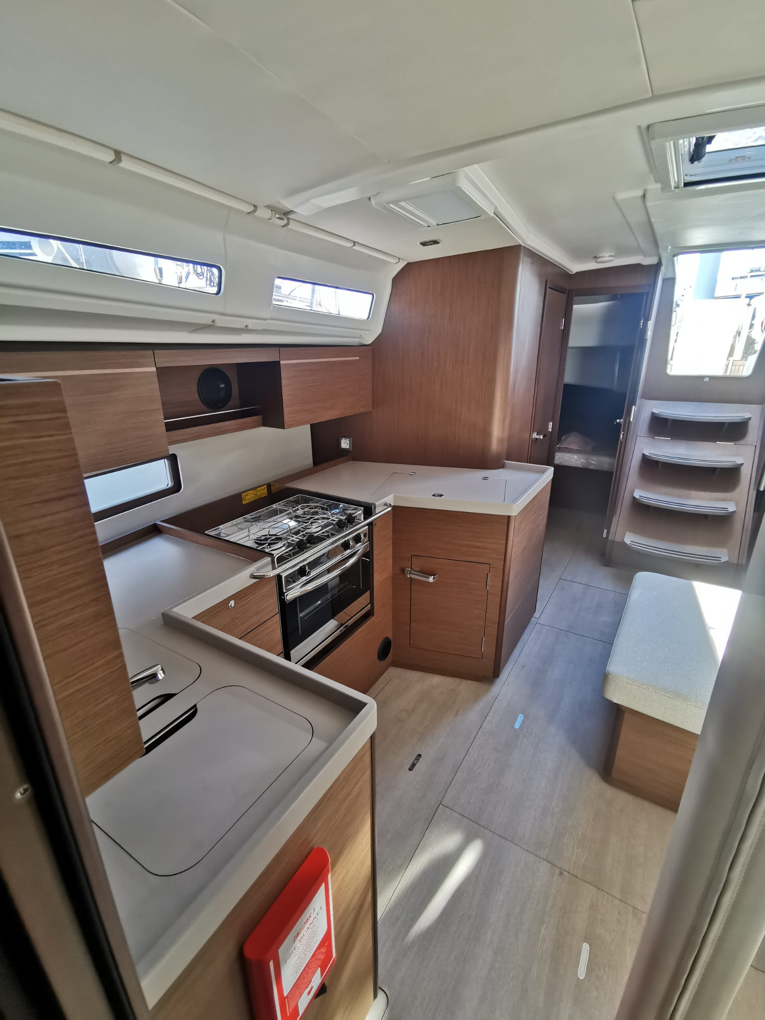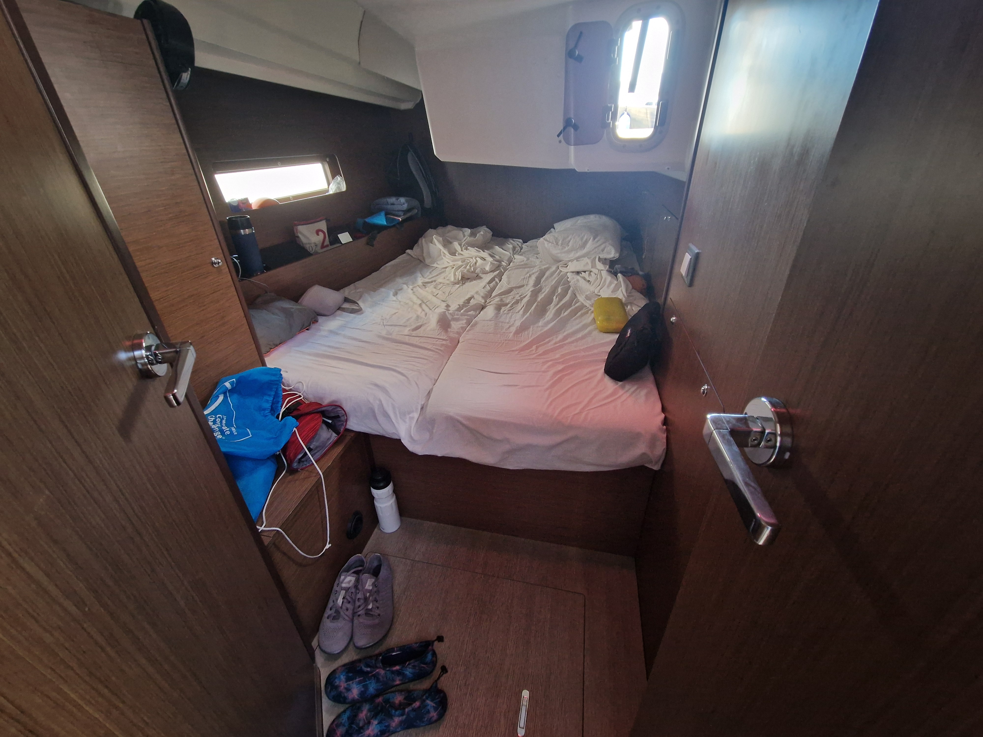 | Inside | Eisbox, FUSION Sound System, Gasherd mit Backofen, Heizung, Kühlschrank, Ladegerät, Moskitonetze, Pantryausstattung, Radio mit CD und USB, USB Steckdosen in den Kabinen, Ventilatoren in Salon und Kabinen, Warmwasser |