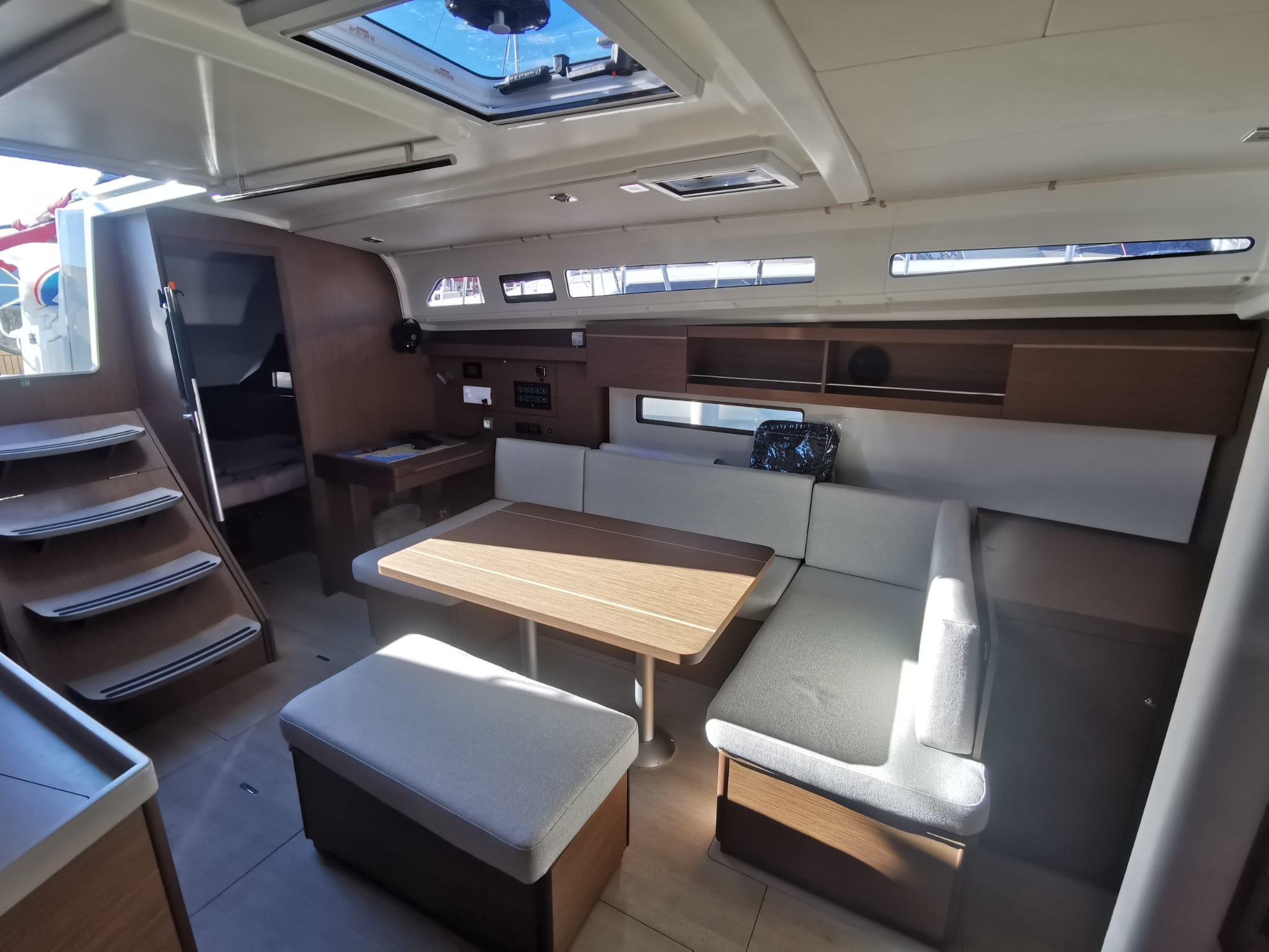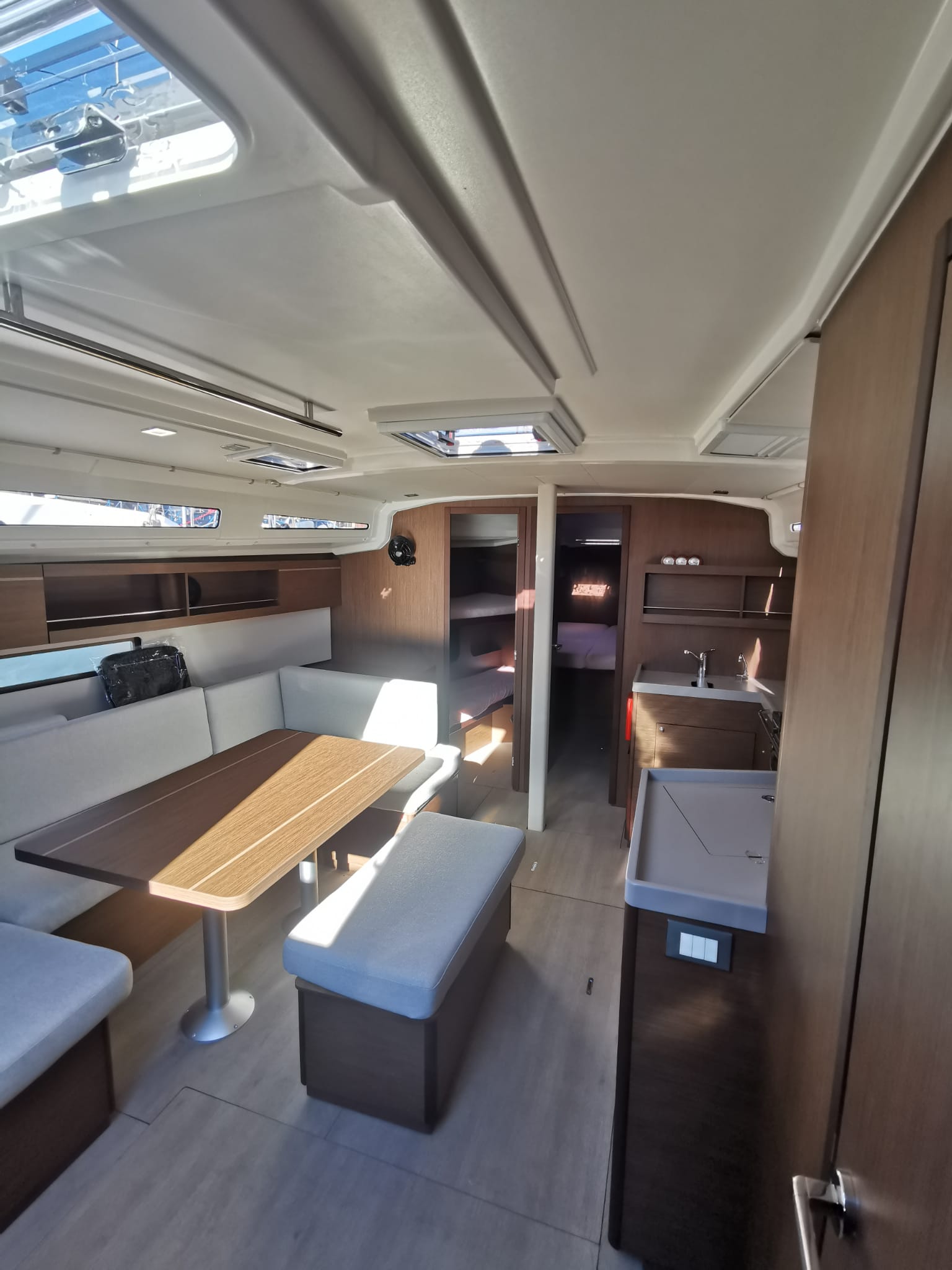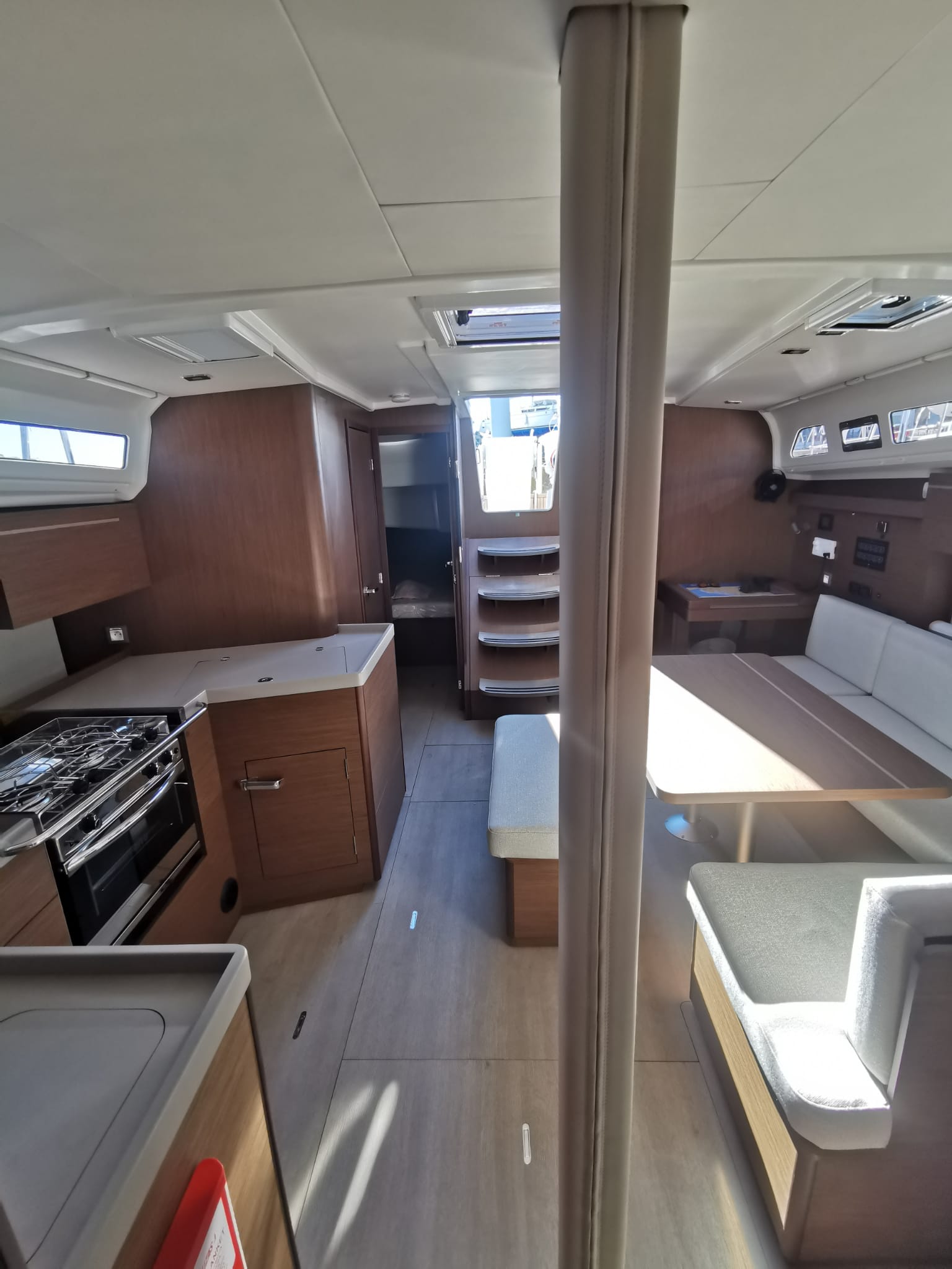 | Inside | Eisbox, FUSION Sound System, Gasherd mit Backofen, Heizung, Kühlschrank, Ladegerät, Moskitonetze, Pantryausstattung, Radio mit CD und USB, USB Steckdosen in den Kabinen, Ventilatoren in Salon und Kabinen, Warmwasser |