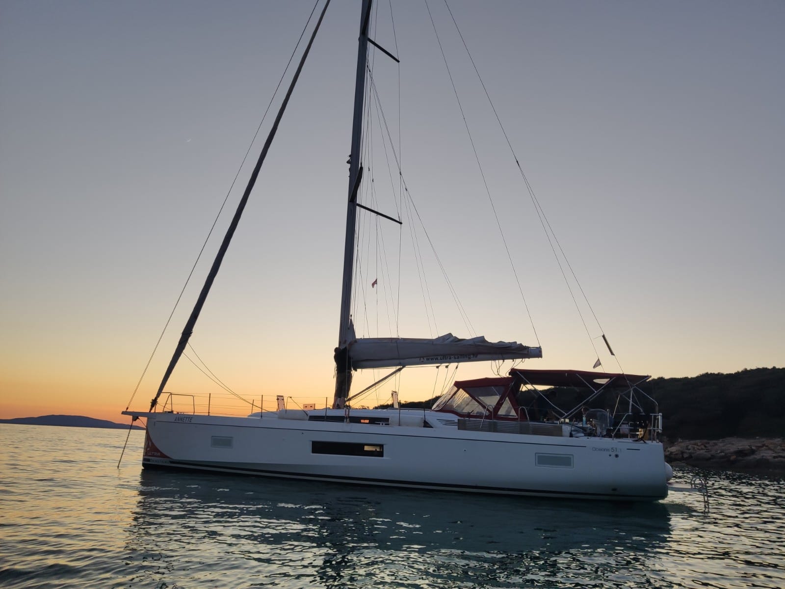| Safety | Autopilot, Bootsmannstuhl, Bordapotheke, Bugstrahlruder, elektr. Bilgepumpe, Feststoffschwimmwesten, Feueraxt, Feuerlöscher, Flaggen, Handbilgepumpe, Lifebelts, Nebelhorn, Notsignale, Rettungsinsel, UKW-Funk, Zweitanker |