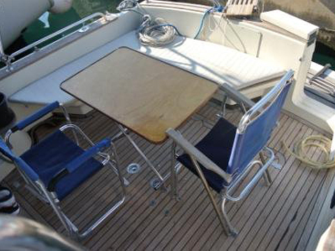 | Outside | 220 V-Landanschluss, Anker mit Kette, elektr. Ankerwinsch, Teak im Cockpit |