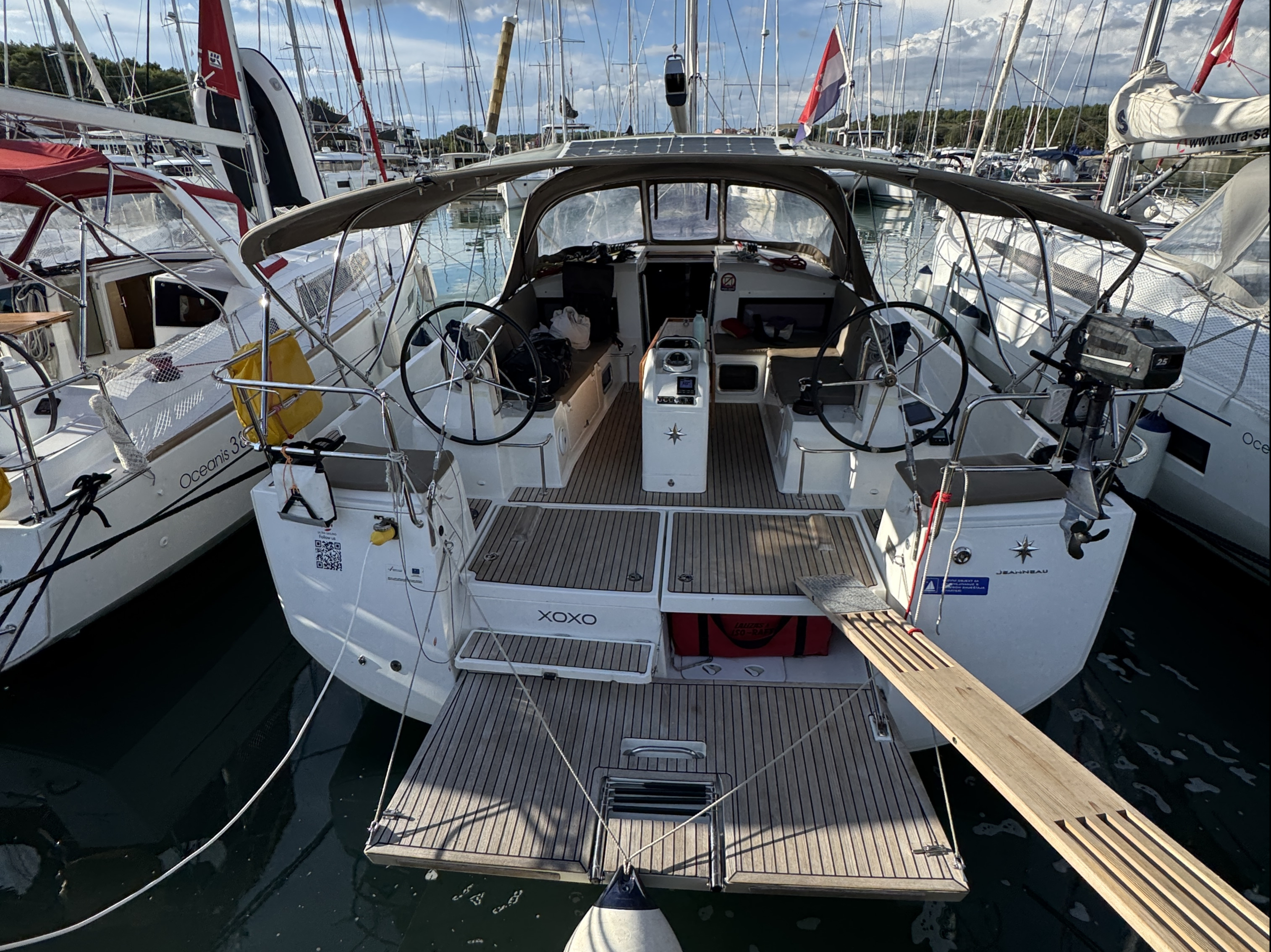 | Outside | 220 V-Landanschluss, Anker mit Kette, Badeplattform elektr., Biminitop, Bootshaken, Cockpitdusche, Cockpitkühlschrank, Cockpitlautsprecher, Cockpitpolster, Cockpittisch, elektr. Ankerwinsch, Fender, Gangway, Kugelfender, Solaranlage, Sprayhood, Winschen |
