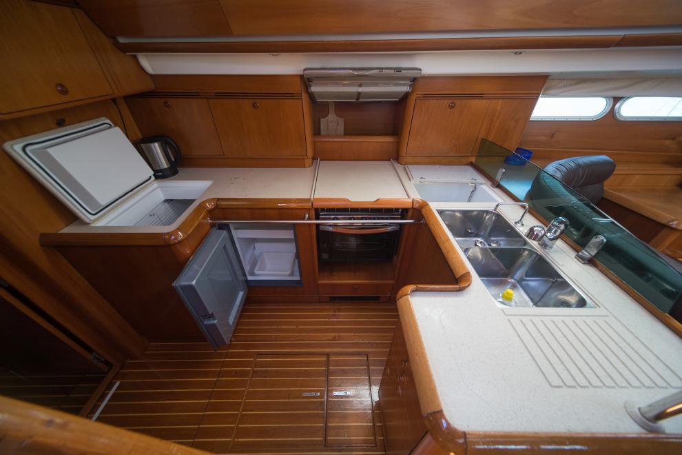 | Outside | Badeleiter, Cockpitdusche, Cockpitlautsprecher, Cockpitpolster, Cockpittisch, elektr. Ankerwinsch, Selbstholende Winschen, Teakdeck |