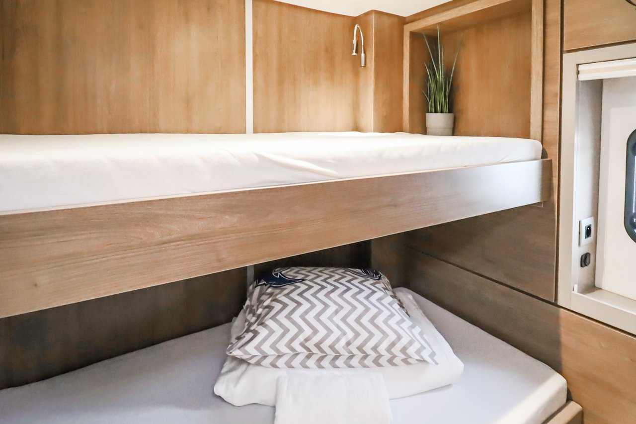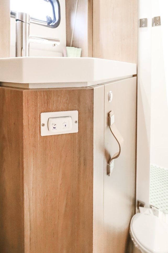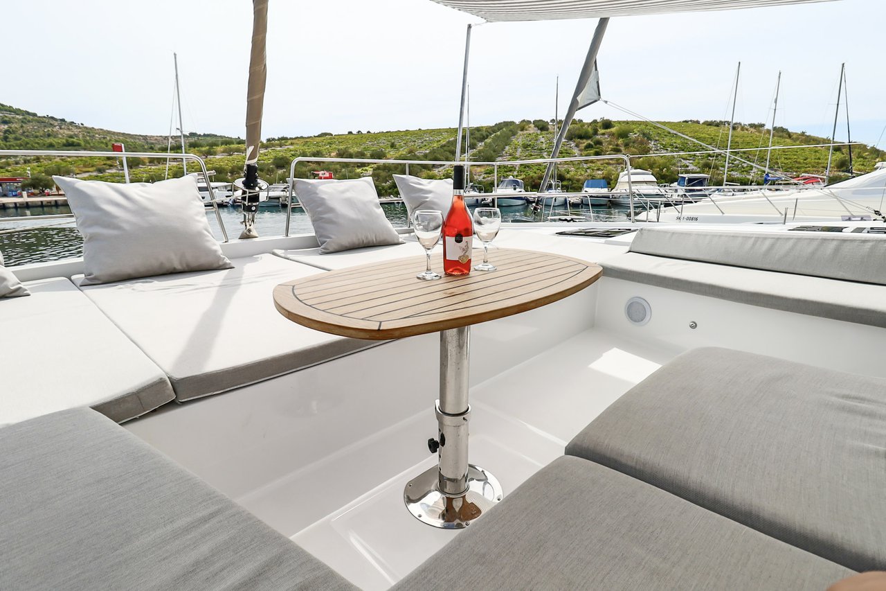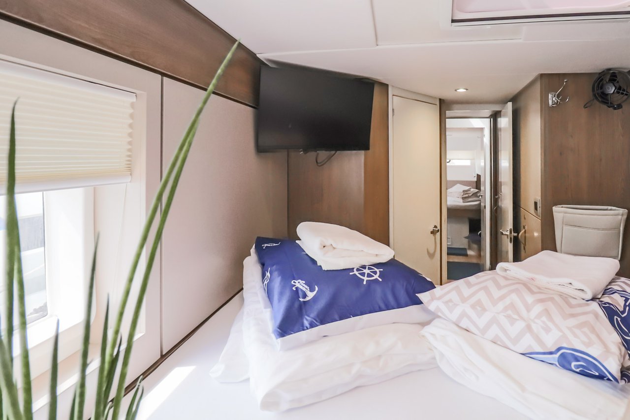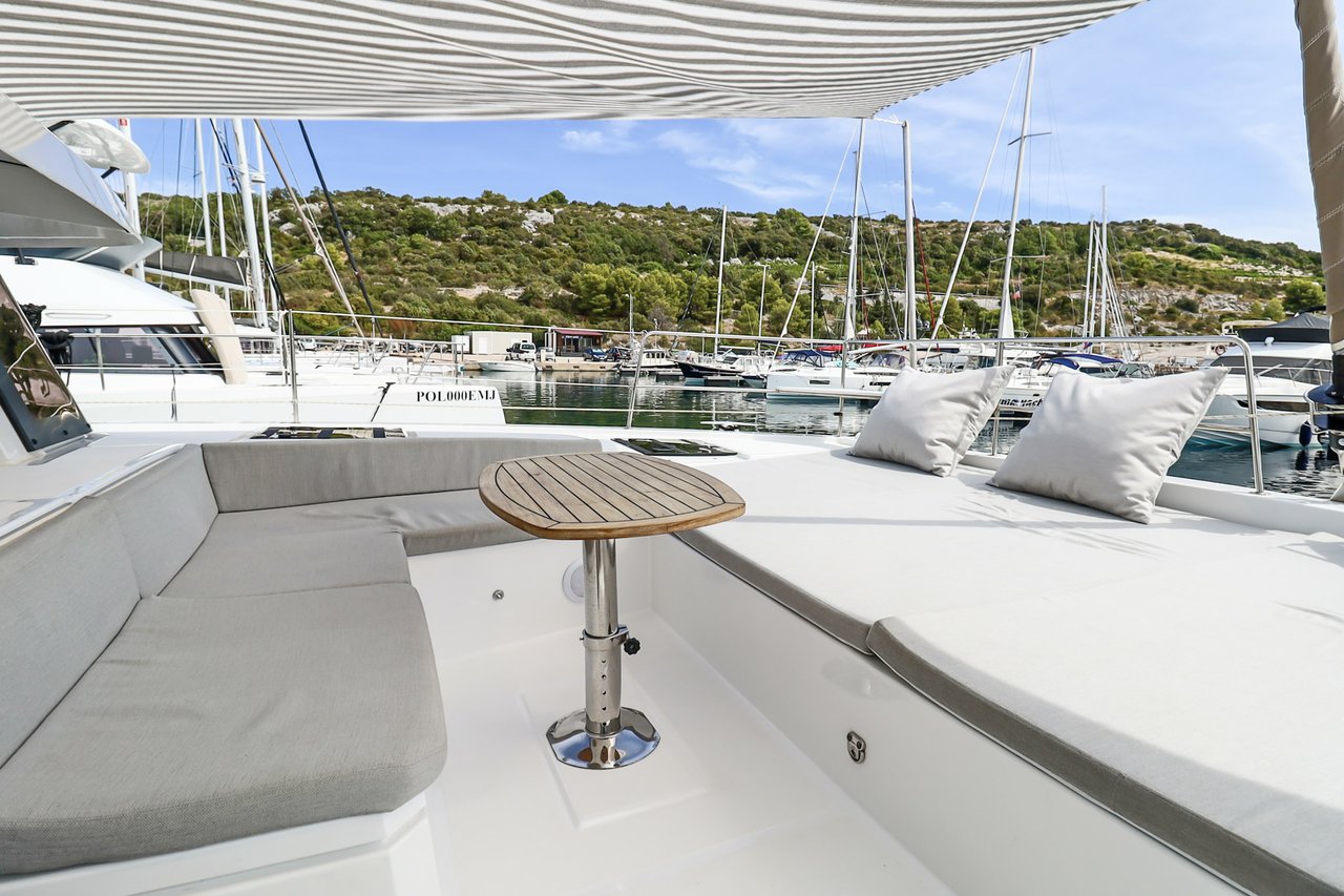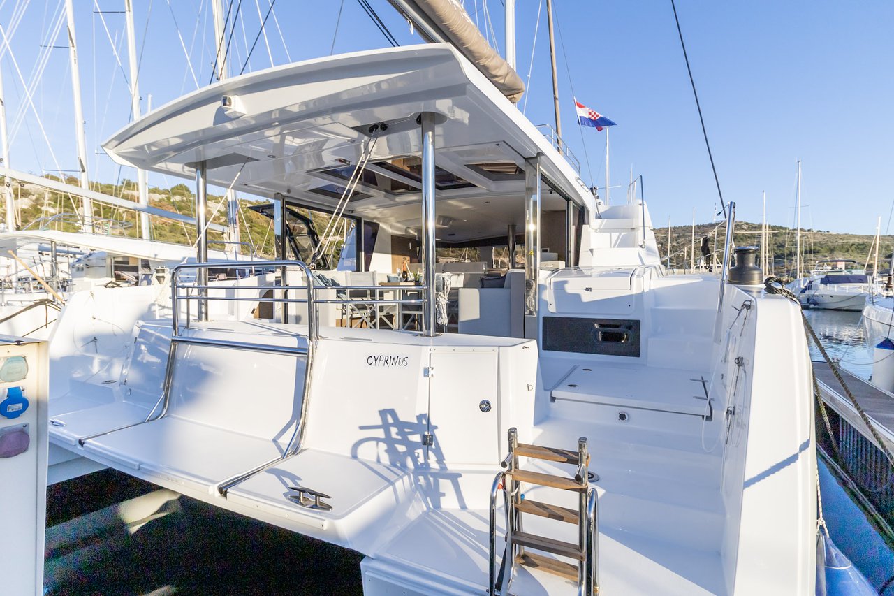| Inside | Backofen, FUSION Sound System, Gasherd, Gefrierschrank, Generator, Geschirrspüler, Heizung, Inverter 12V/220V, Kaffeemaschine, Klimaanlage (ohne Landstrombedarf), Kühlschrank, Ladegerät, LCD Fernseher, Mikrowelle, Pantryausstattung, Safe für Wertsachen, Ventilatoren in Kabinen, Warmwasser, WC (elektr.) |