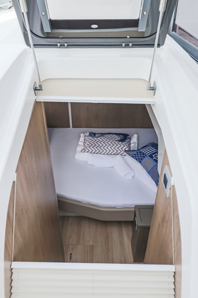 | Outside | Cockpitdusche, Cockpitlautsprecher, Cockpitpolster, Cockpittisch, Deckpolster, elektr. Winsch, Flybridge, Hardtop, Solaranlage, Teak im Cockpit, Unterwasserbeleuchtung |