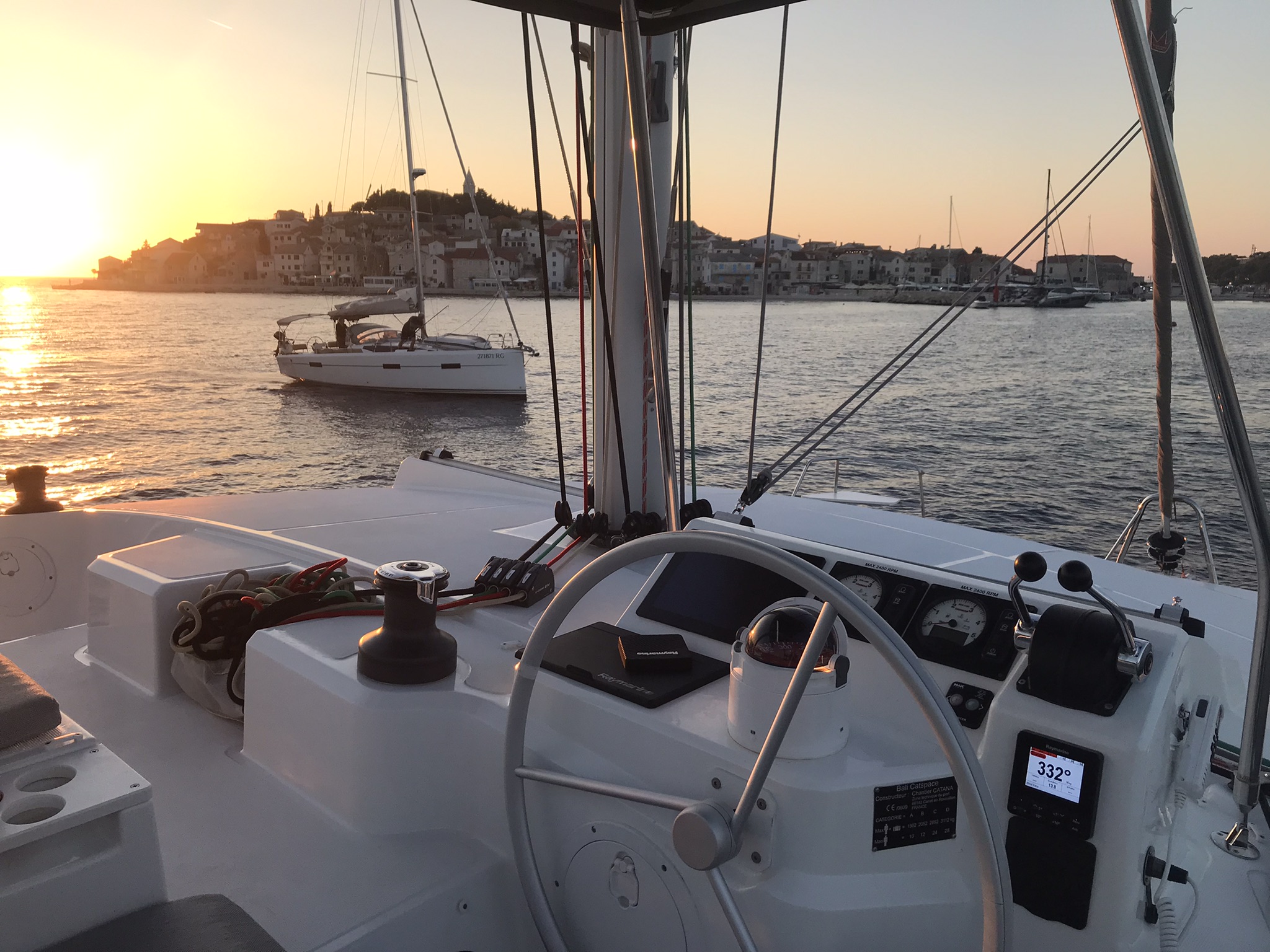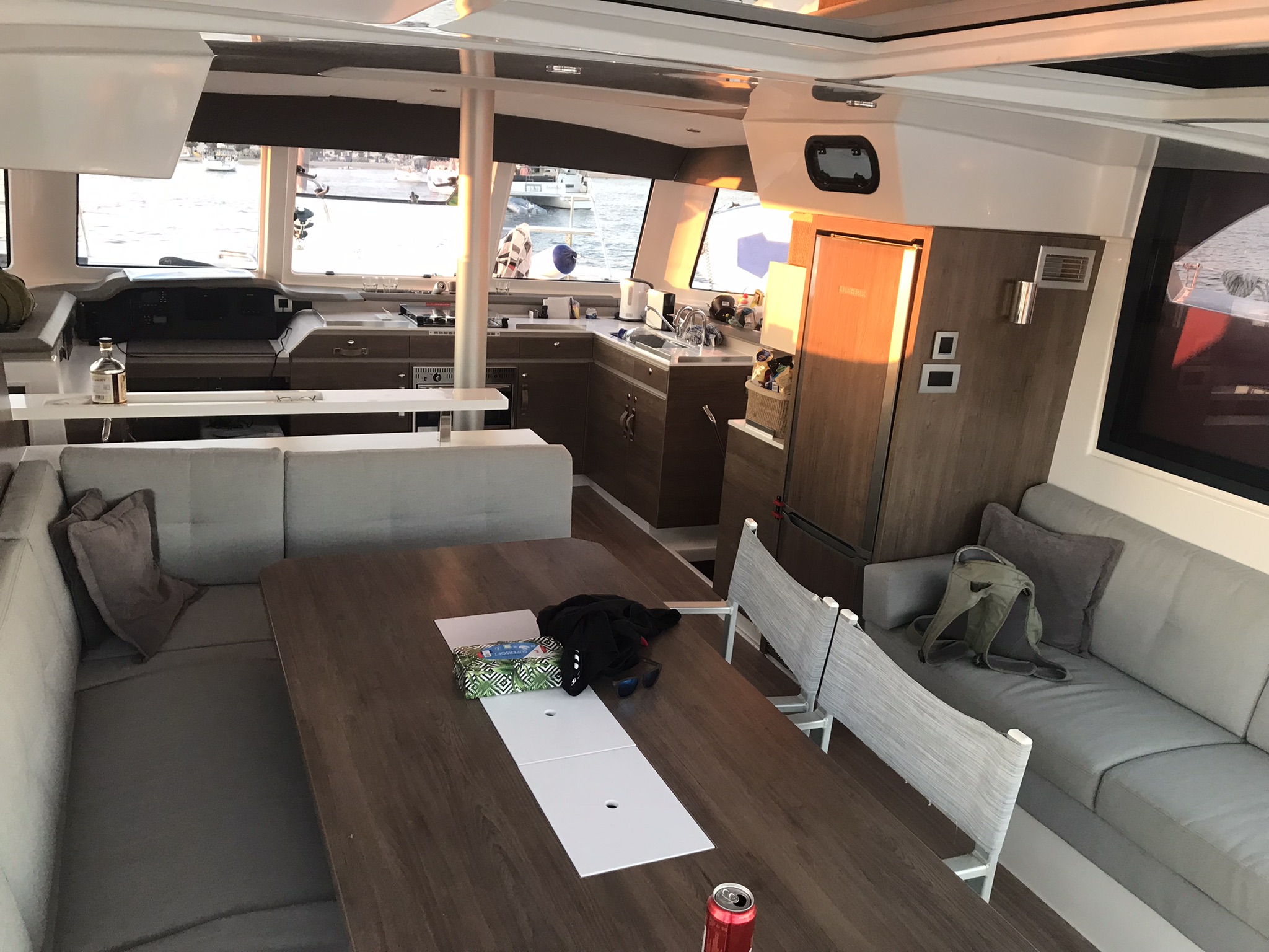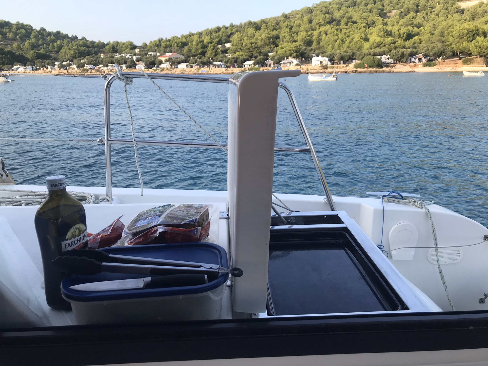 Outside 220 V-Landanschluss, Anker mit Kette, Bootshaken, Cockpitdusche, Cockpitlautsprecher, Cockpitleuchte, Cockpitpolster, Cockpittisch, Davits, Deckbeleuchtung, elektr. Ankerwinsch, elektr. Winsch, Fender, Festmacherleinen, Grill, Solaranlage, Unterwasserbeleuchtung