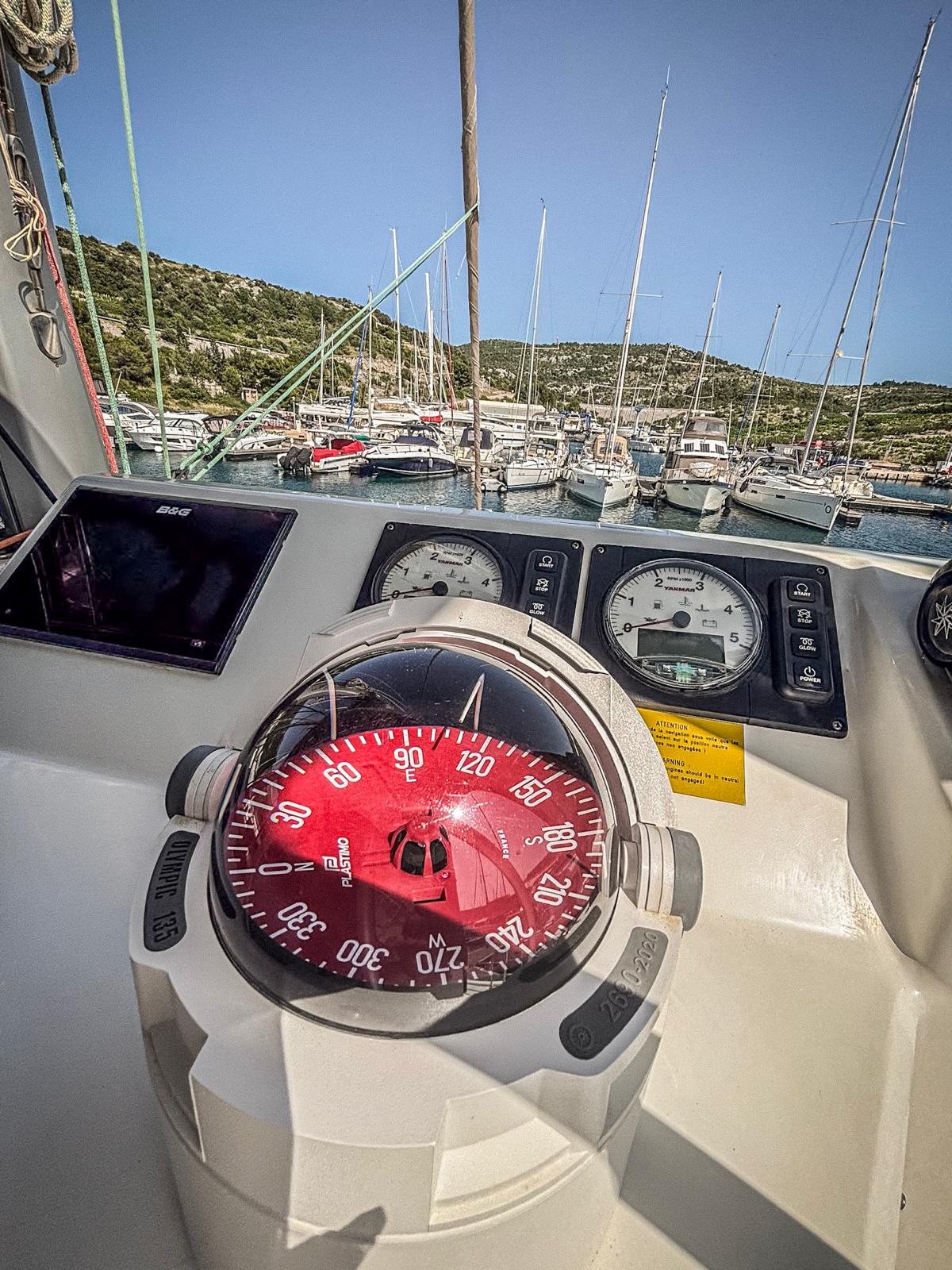 | Navigation | GPS mit Kartenplotter, Hafenhandbücher, Handpeilkompass, Seekarten, Windmesser |