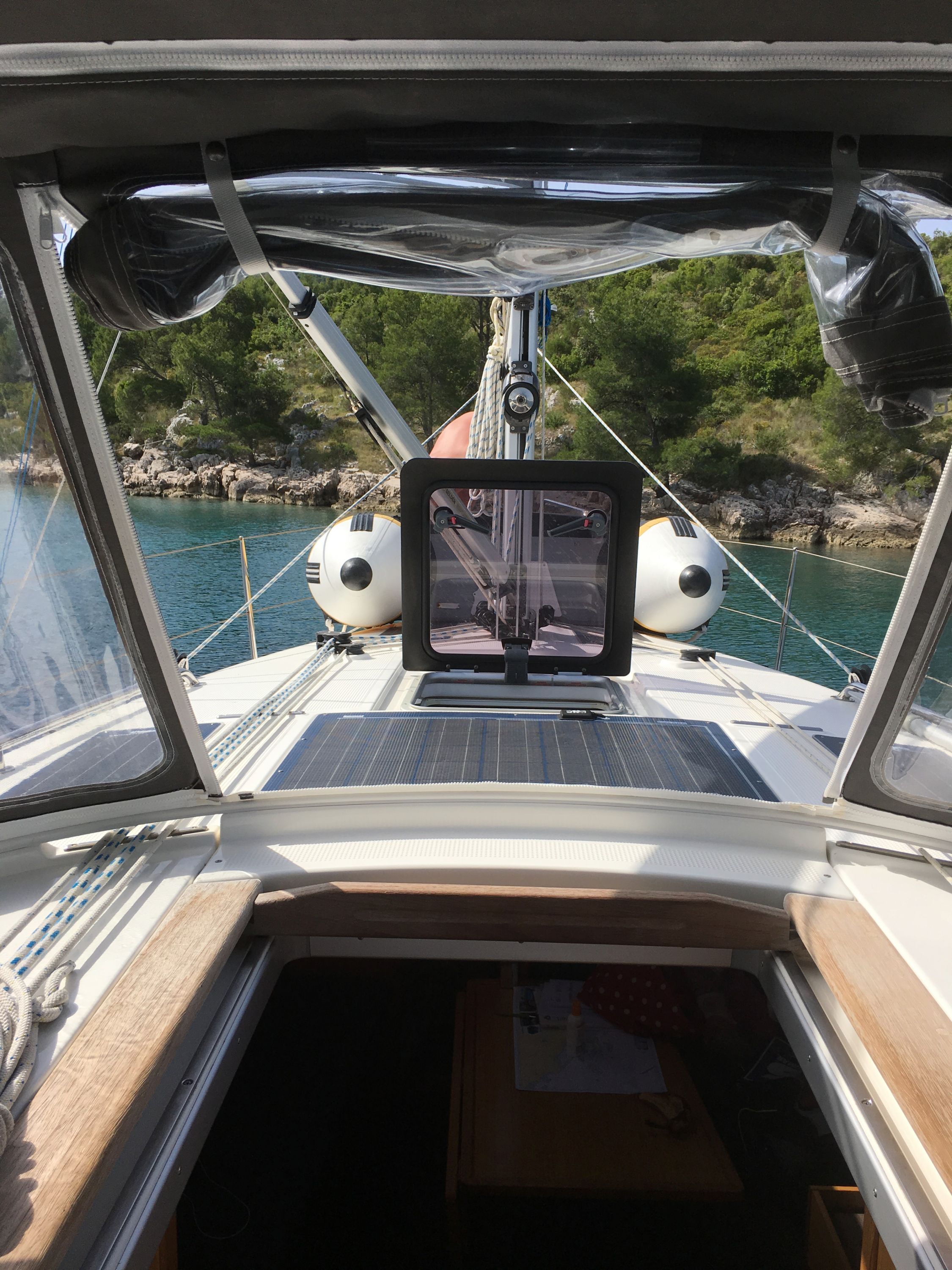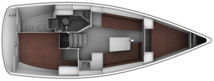 | Outside | 220 V-Landanschluss, Badeleiter, Biminitop, Cockpitdusche, Cockpitlautsprecher, Cockpittisch, elektr. Ankerwinsch, Gangway, Heckdusche, Solaranlage, Sprayhood, Treibanker, Windex |