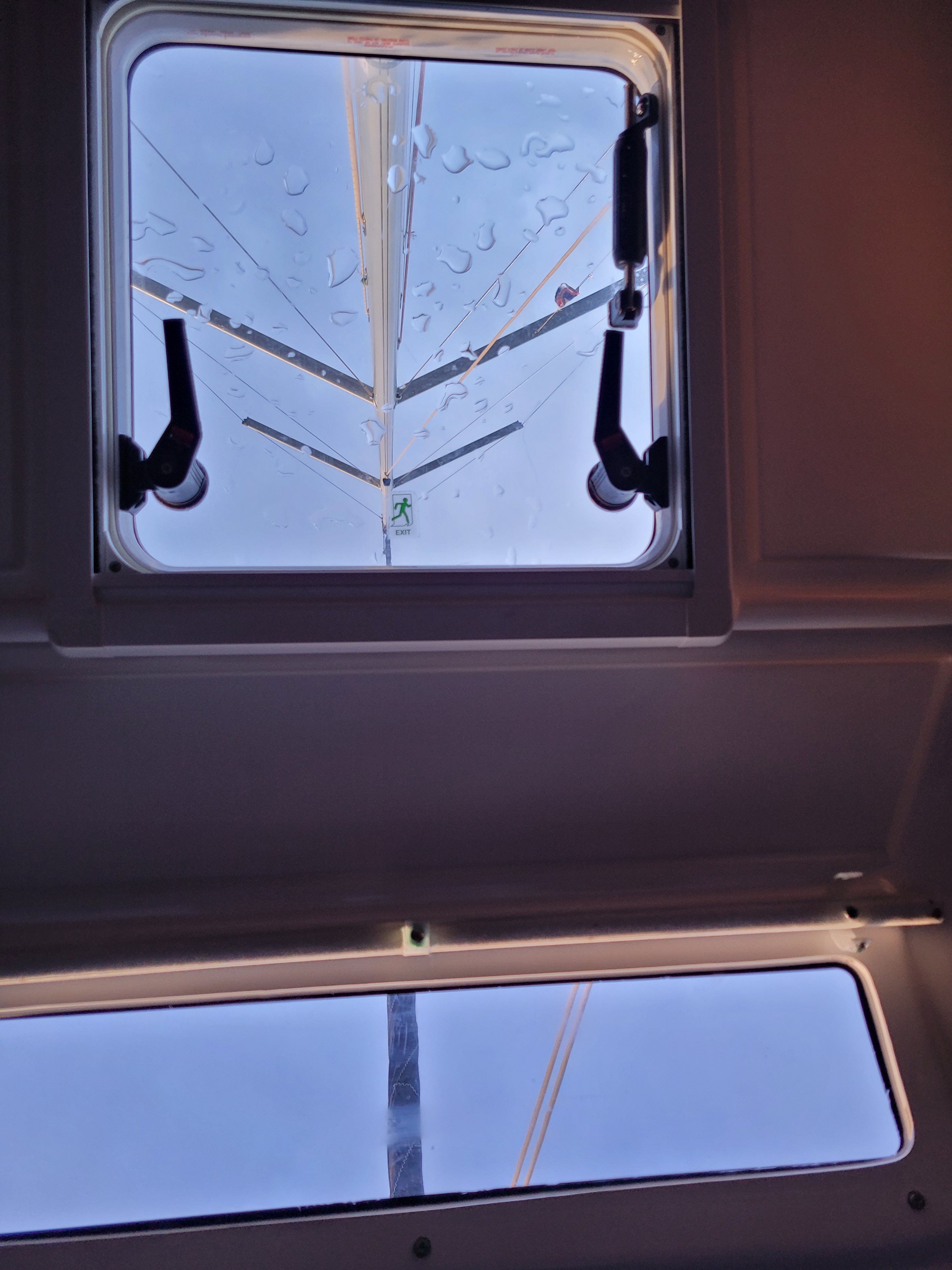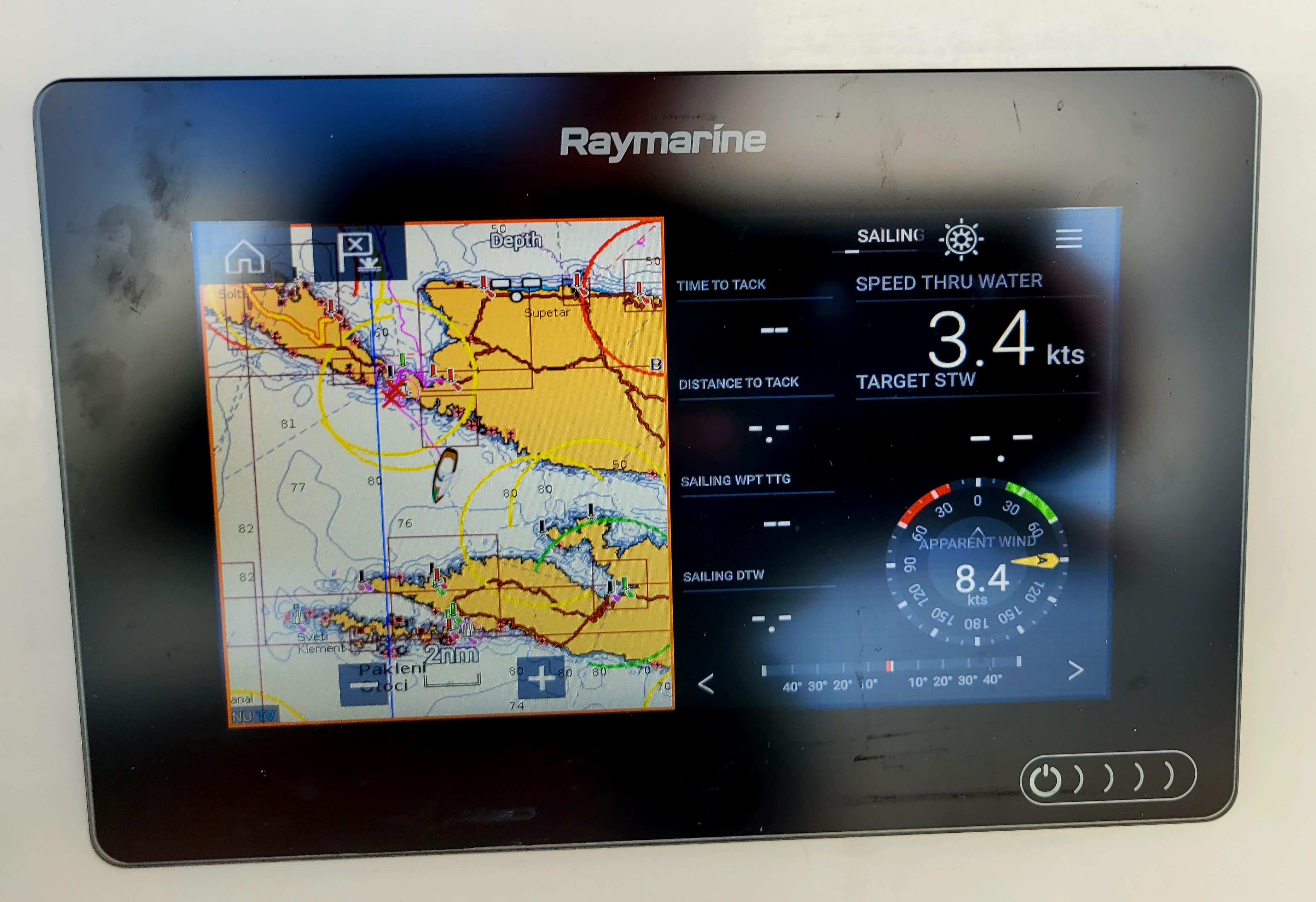 | Navigation | Fernglas mit Peilkompass, GPS mit Kartenplotter im Cockpit, Hafenhandbücher, Navigationsbesteck, Seekarten, Tridata (Log, Echolot, Windm.) |