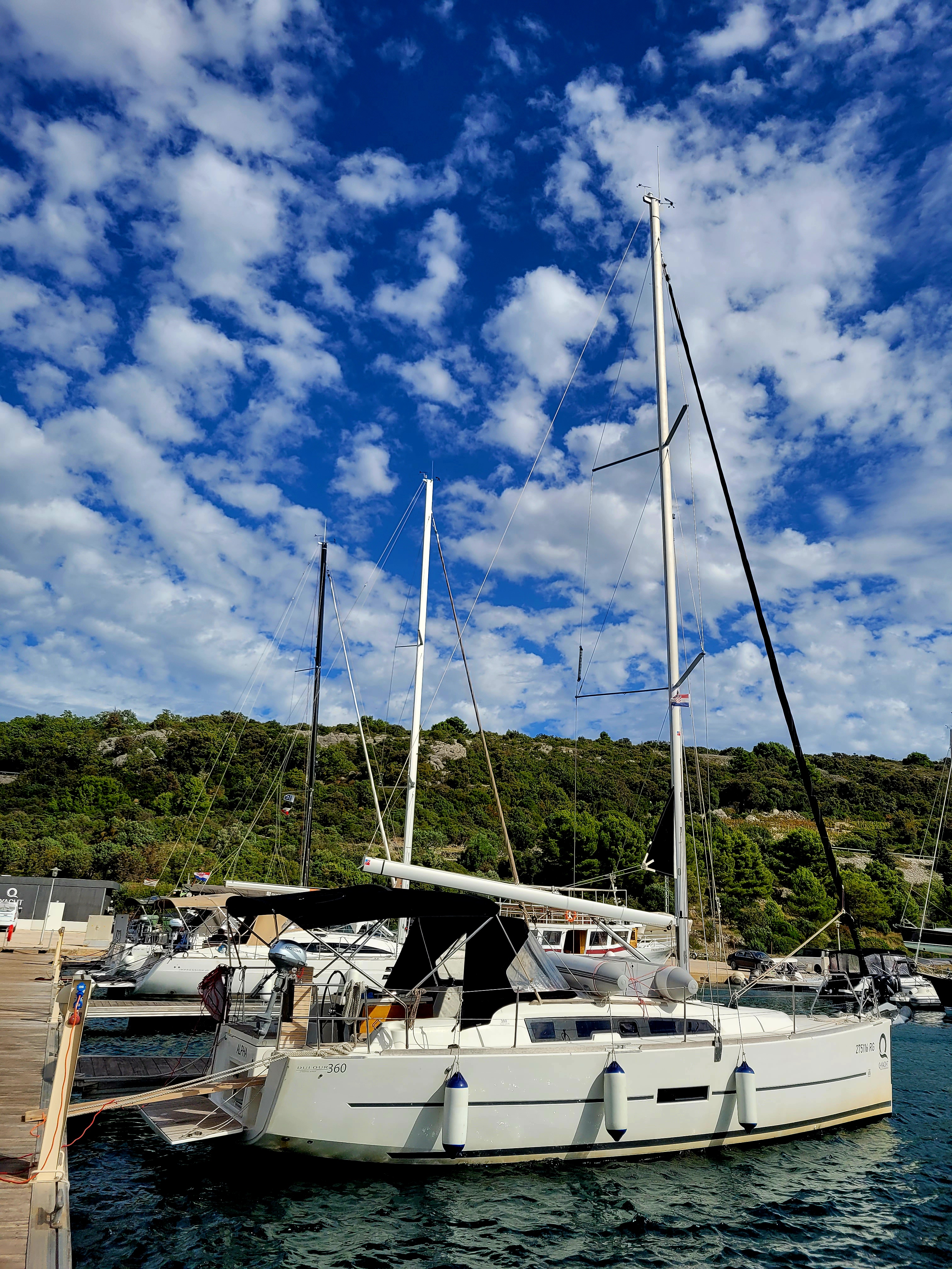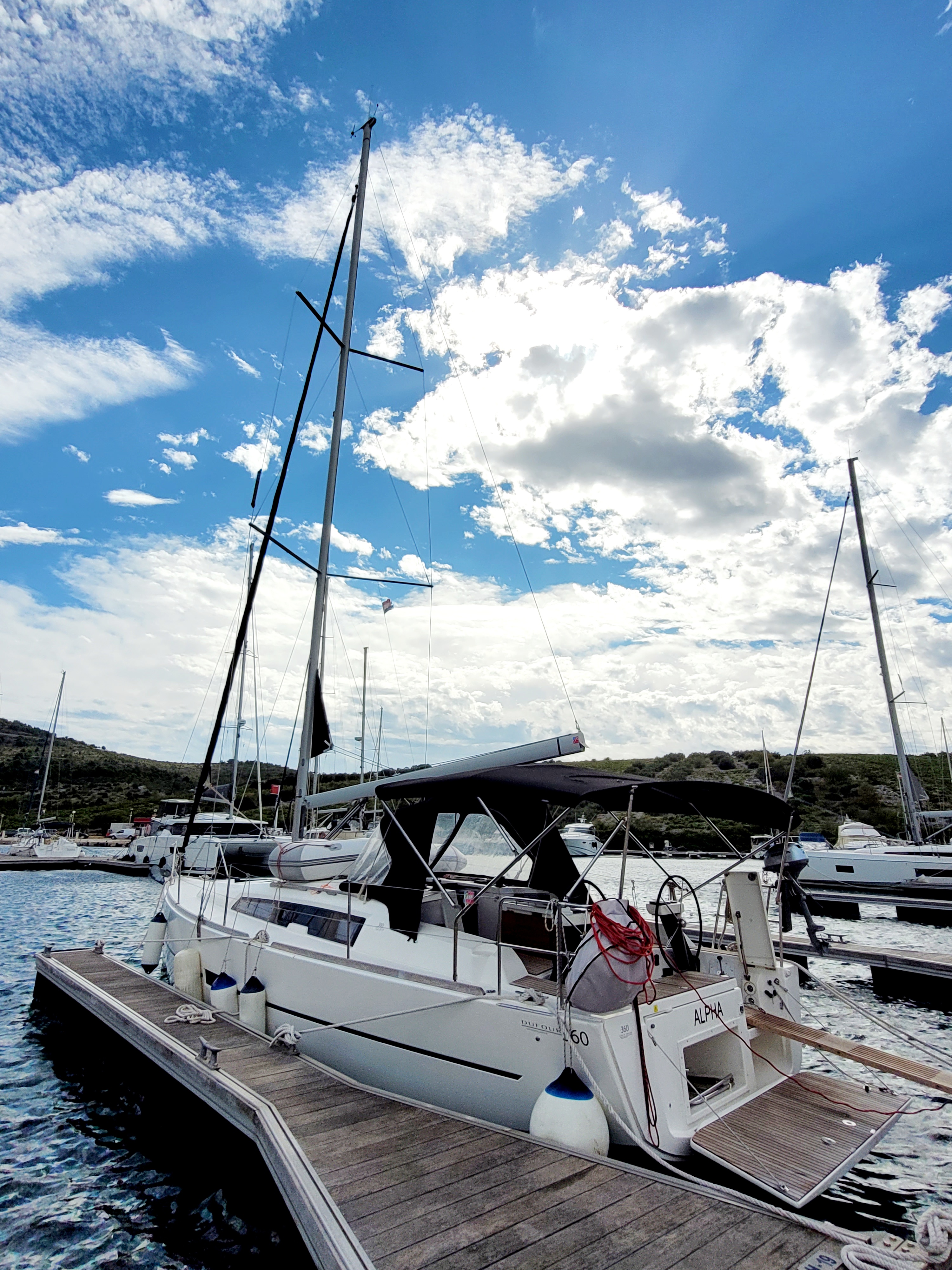 | Outside | 220 V-Landanschluss, Anker mit Kette, Badeplattform, Biminitop, Bootshaken, Cockpitdusche, Cockpitlautsprecher, Cockpitpolster, Cockpittisch, Dieselkanister , elektr. Ankerwinsch, Fender, Festmacherleinen, Gangway, Grill, Kugelfender, Kunststoff-Eimer (Pütz), Sprayhood, Teak im Cockpit, Wasserkanister , Wasserschlauch |