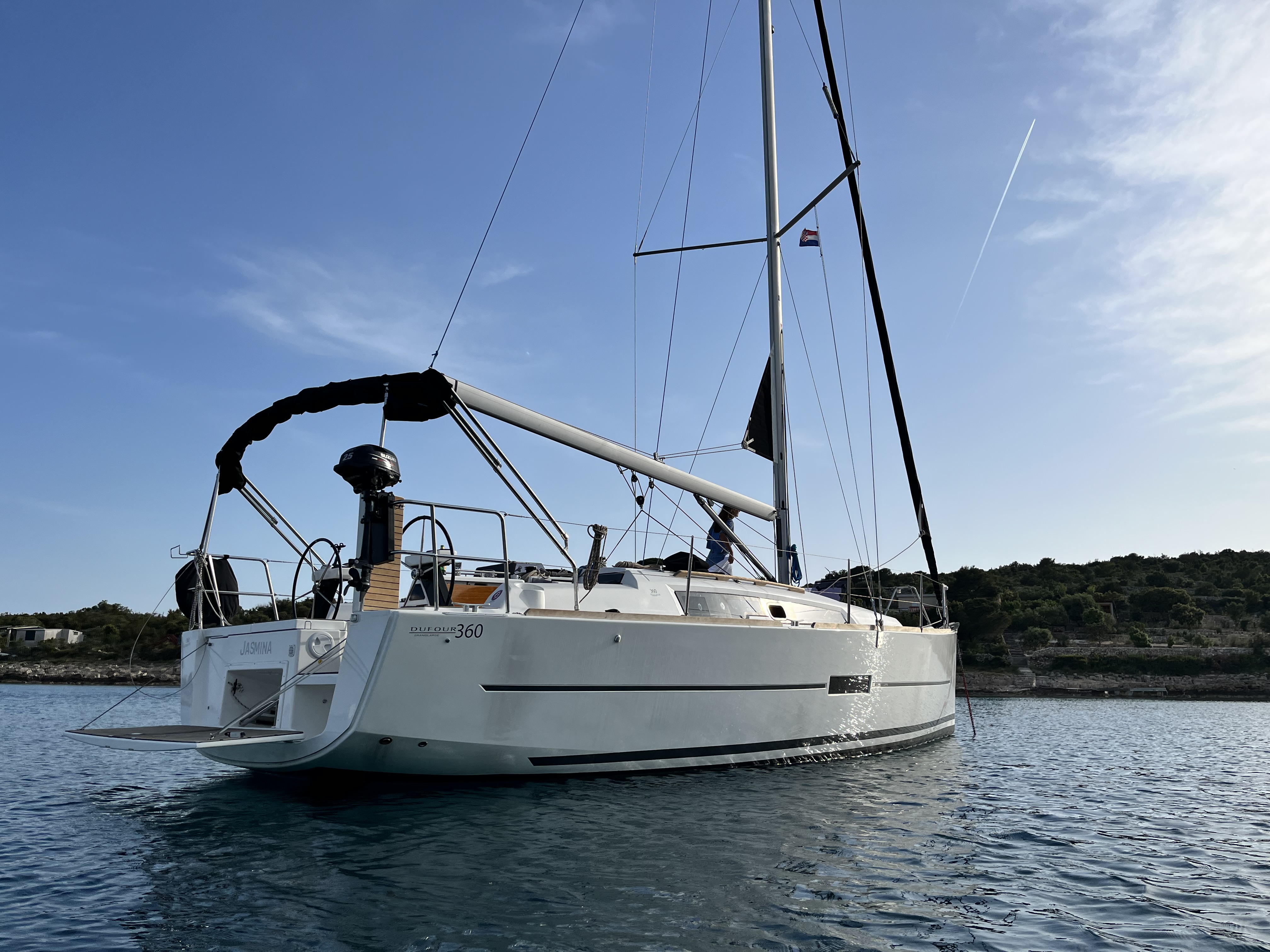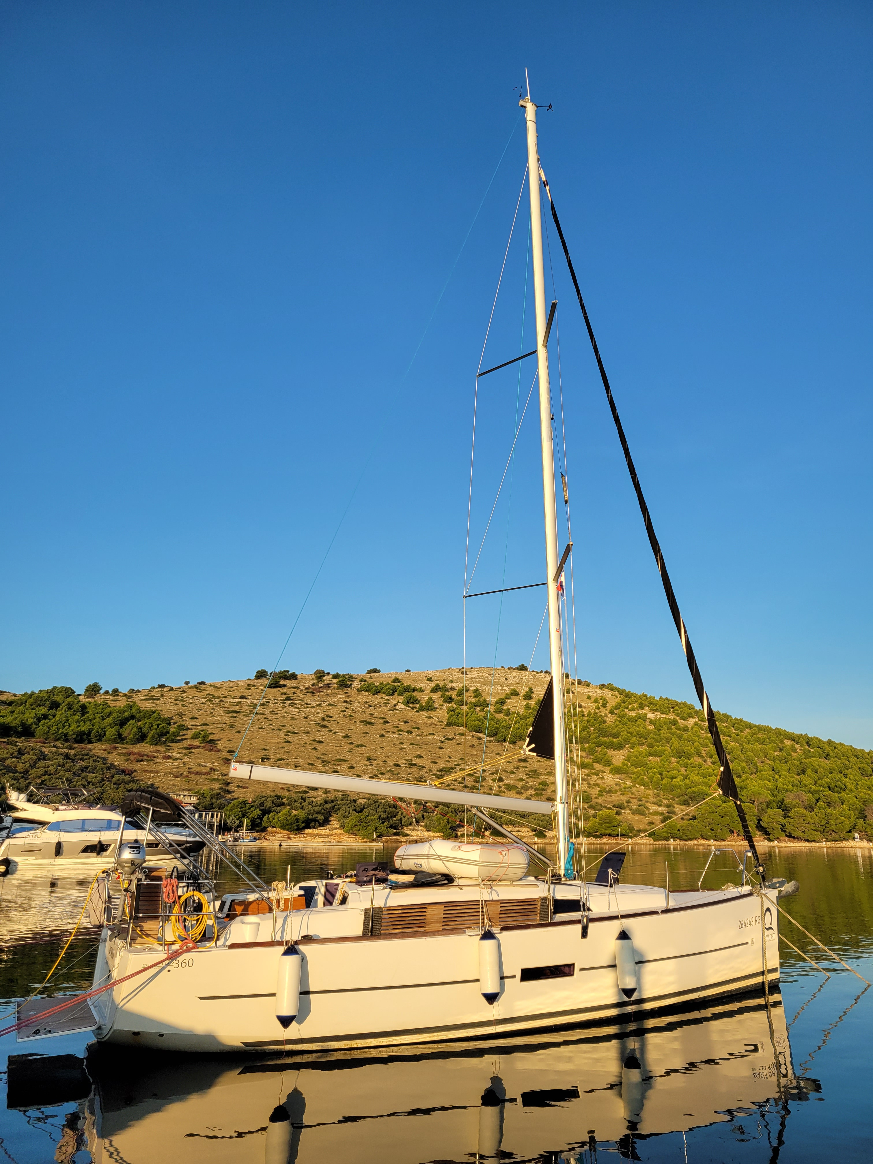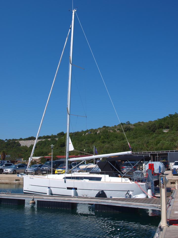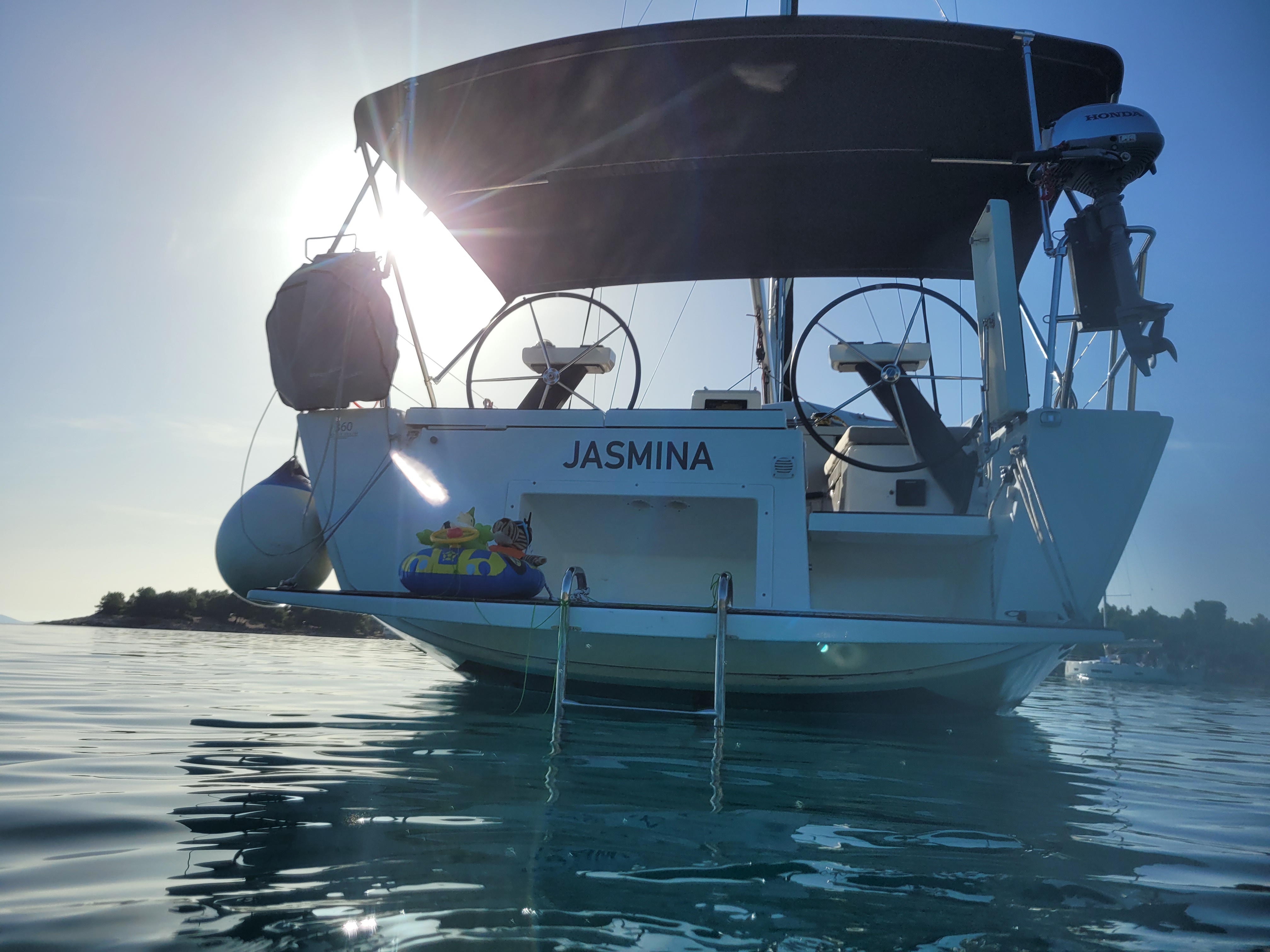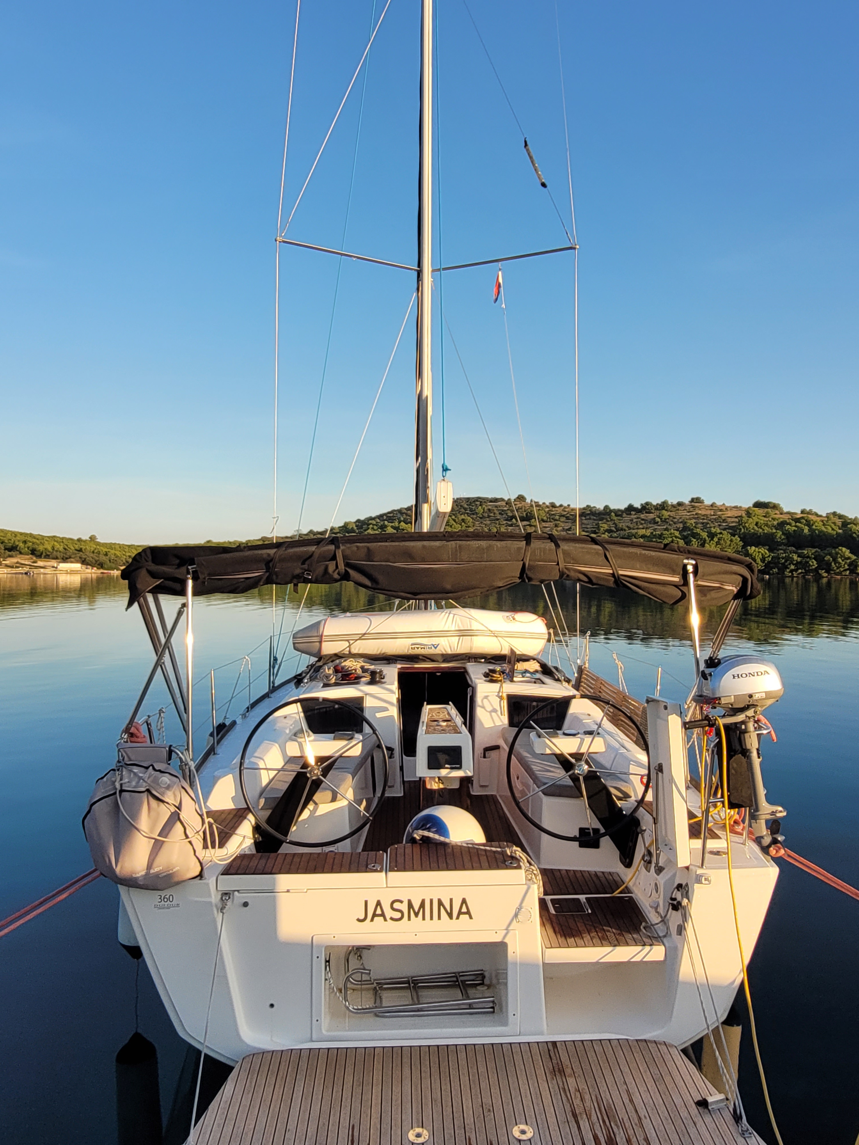 | Outside | 220 V-Landanschluss, Anker mit Kette, Badeplattform, Biminitop, Bootshaken, Cockpitdusche, Cockpitlautsprecher, Cockpitpolster, Cockpittisch, Dieselkanister , elektr. Ankerwinsch, Fender, Festmacherleinen, Gangway, Grill, Kugelfender, Kunststoff-Eimer (Pütz), Sprayhood, Teak im Cockpit, Wasserkanister , Wasserschlauch |