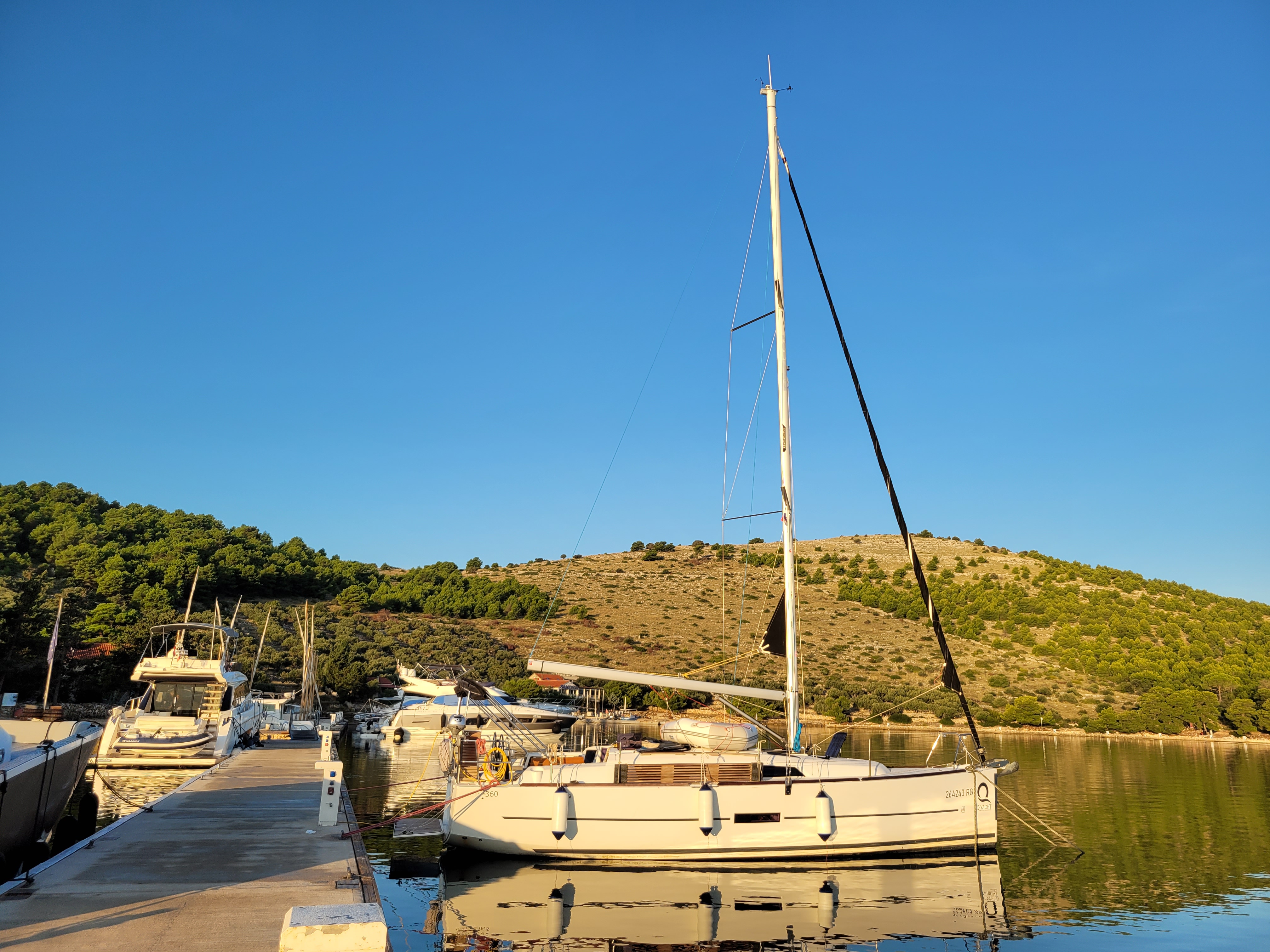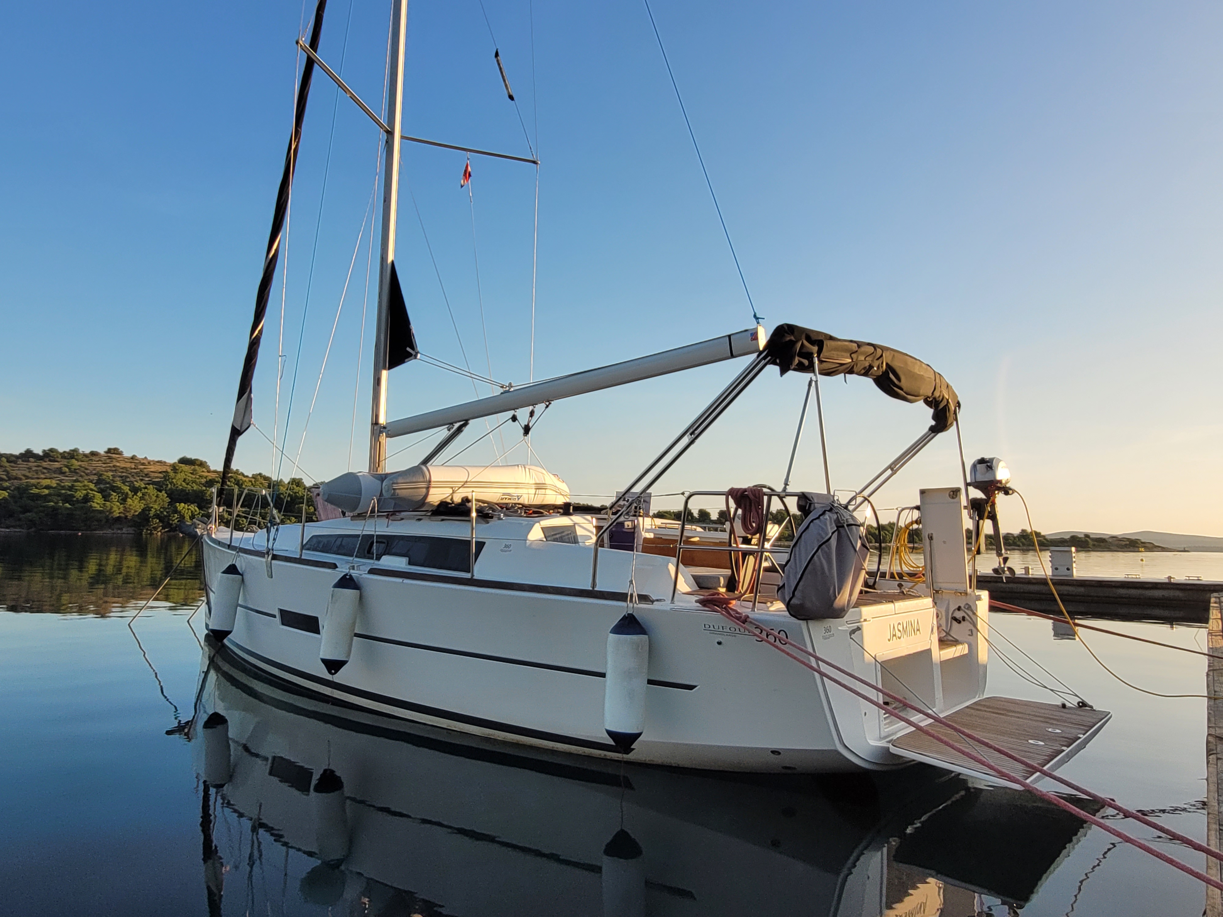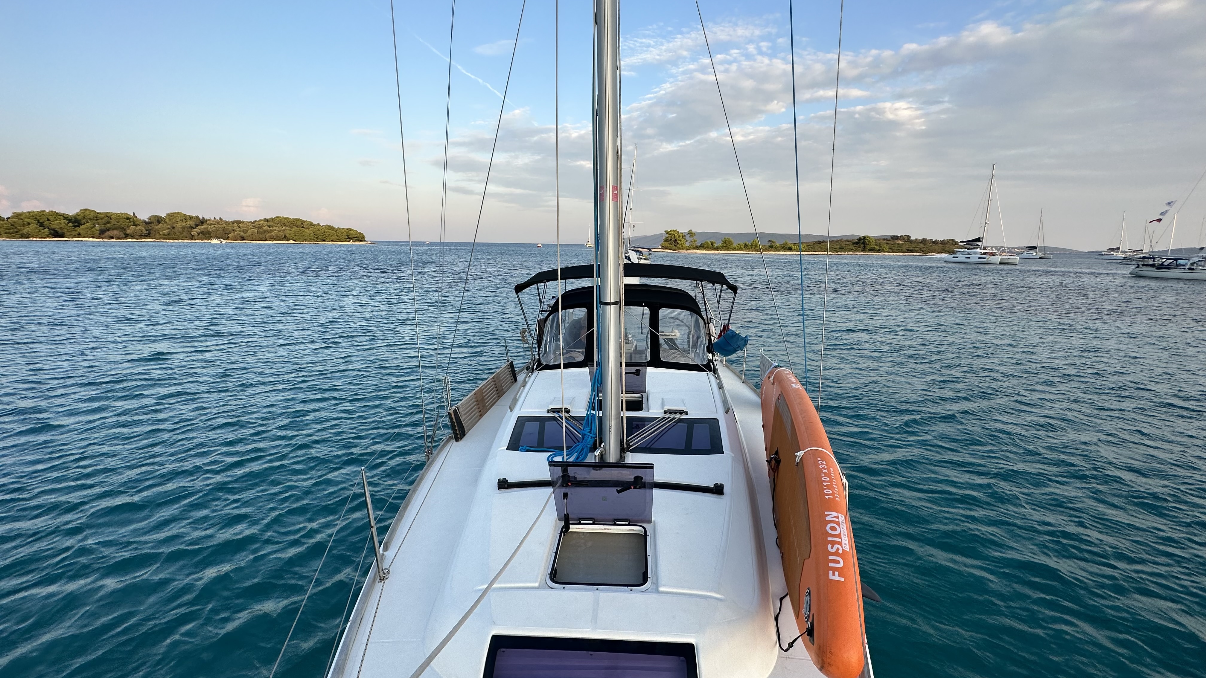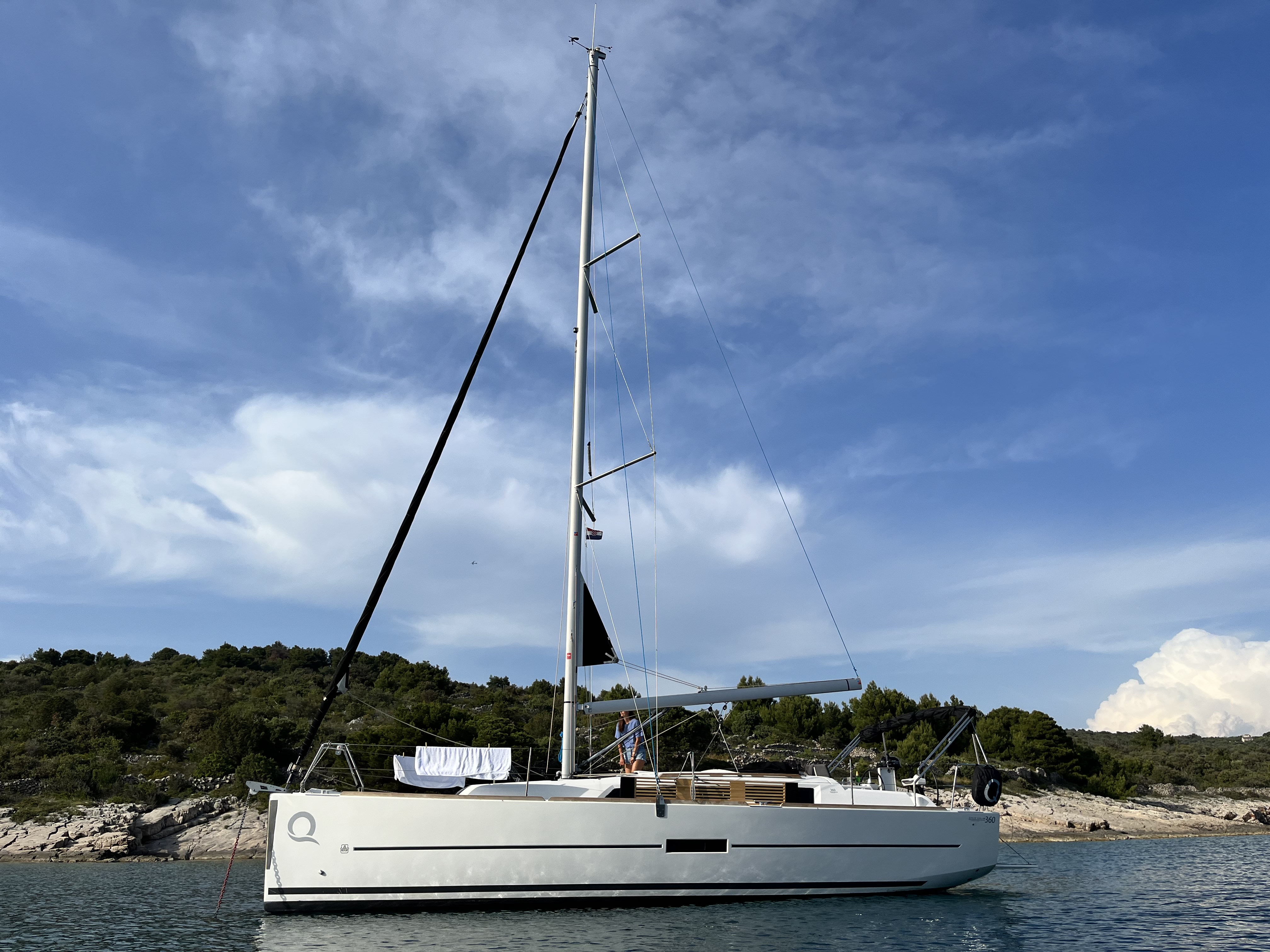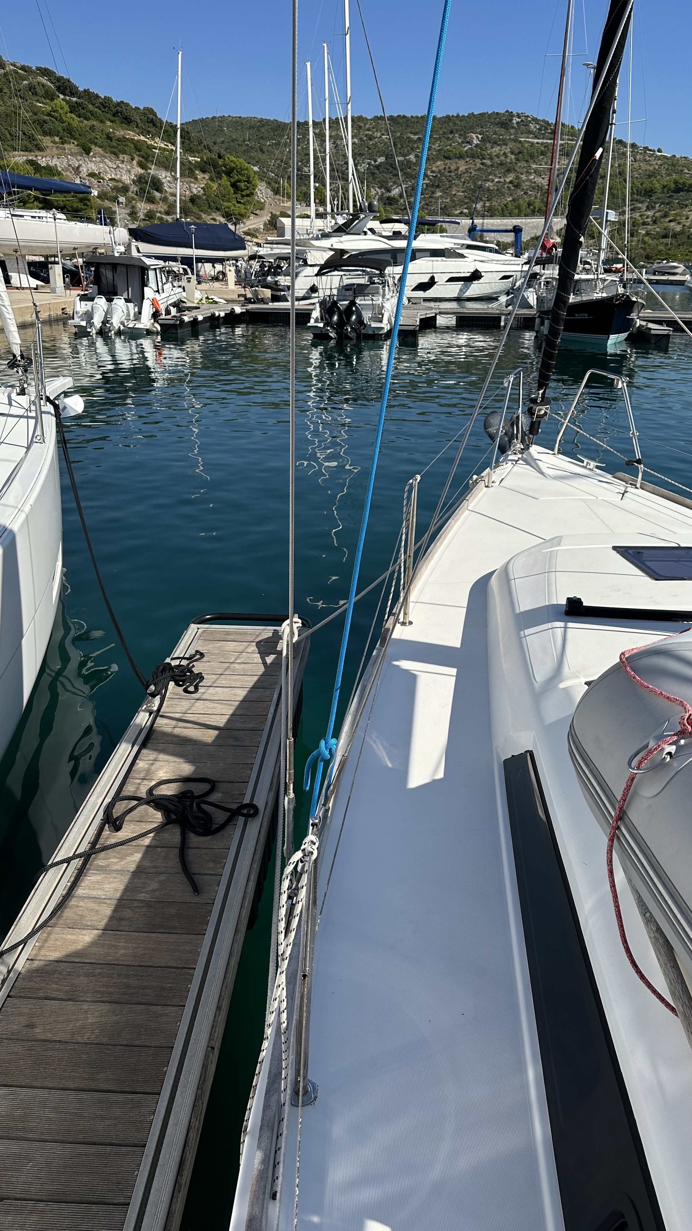 | Outside | 220 V-Landanschluss, Anker mit Kette, Badeplattform, Biminitop, Bootshaken, Cockpitdusche, Cockpitlautsprecher, Cockpitpolster, Cockpittisch, Dieselkanister , elektr. Ankerwinsch, Fender, Festmacherleinen, Gangway, Grill, Kugelfender, Kunststoff-Eimer (Pütz), Sprayhood, Teak im Cockpit, Wasserkanister , Wasserschlauch |