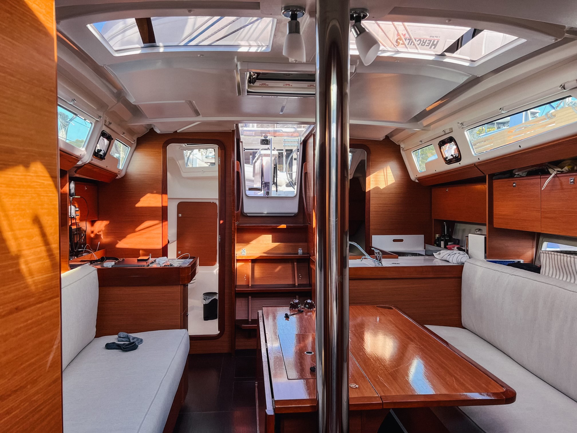 | Inside | Dusche, Heizung, Klimaanlage (Landstrom), Kühlschrank, Ladegerät, Luftpumpe für Beiboot, Pantryausstattung, Radio mit CD und MP3, Salontisch absenkbar, Warmwasser |