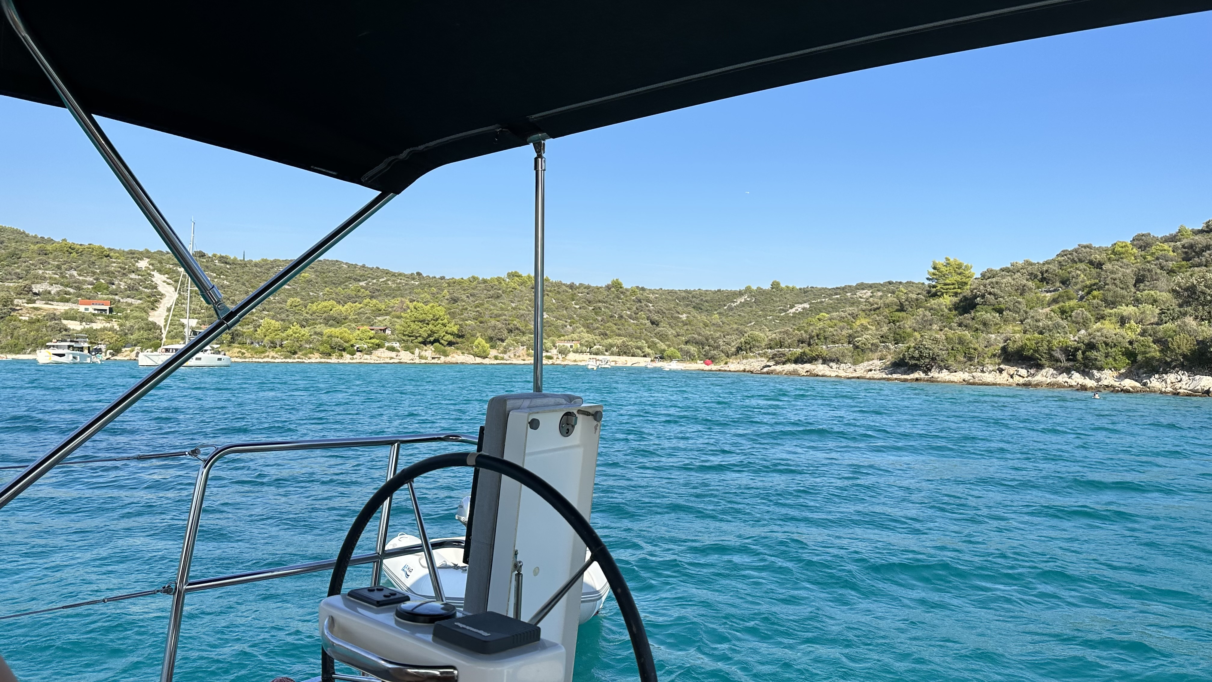 | Navigation | Fernglas mit Peilkompass, GPS mit Kartenplotter im Cockpit, Hafenhandbücher, Navigationsbesteck, Seekarten, Tridata (Log, Echolot, Windm.) |