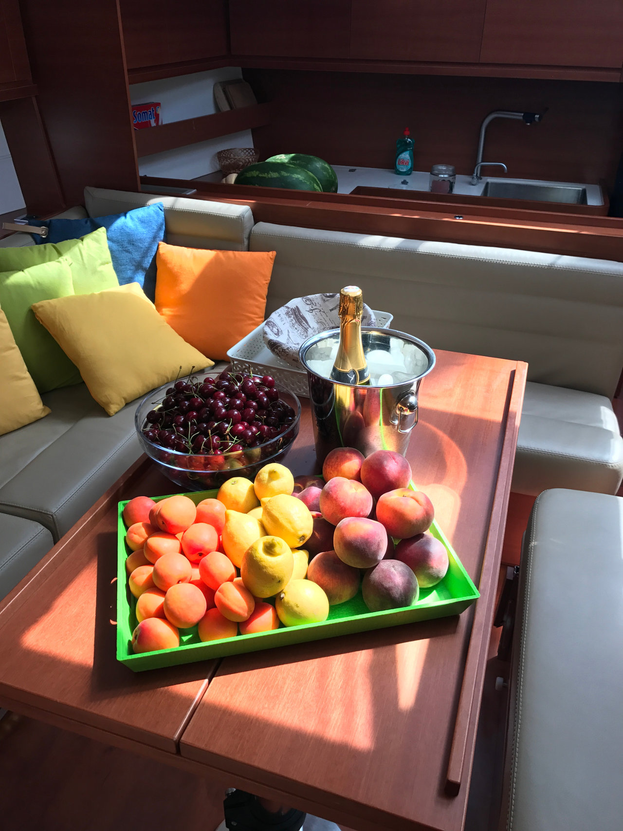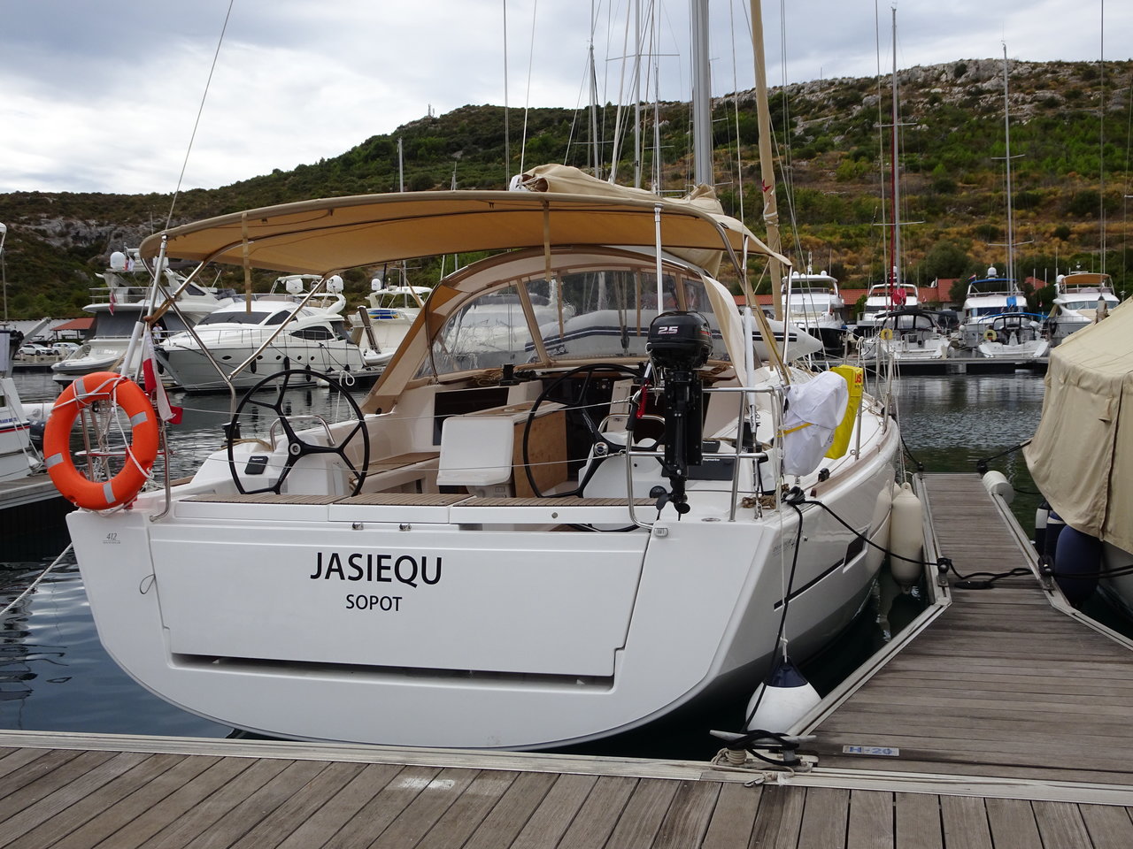 | Outside | Anker mit Kette, Badeleiter, Biminitop, Cockpitdusche, Cockpitlautsprecher, Deckpolster, Faltpropeller, Grill, Sprayhood |
