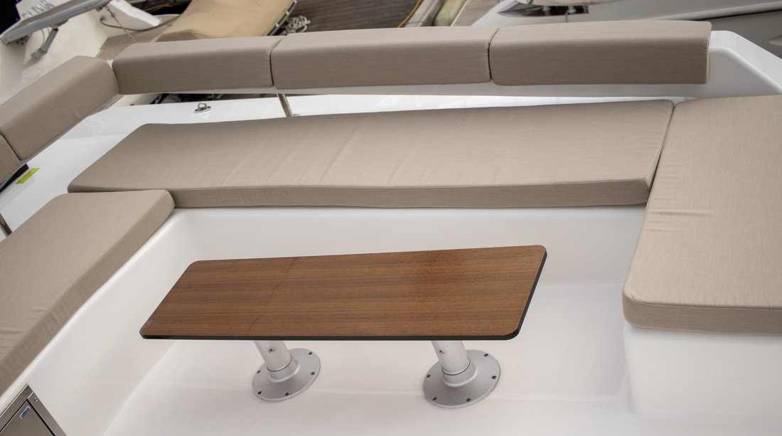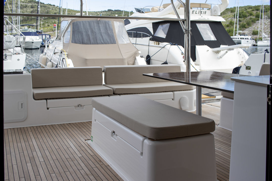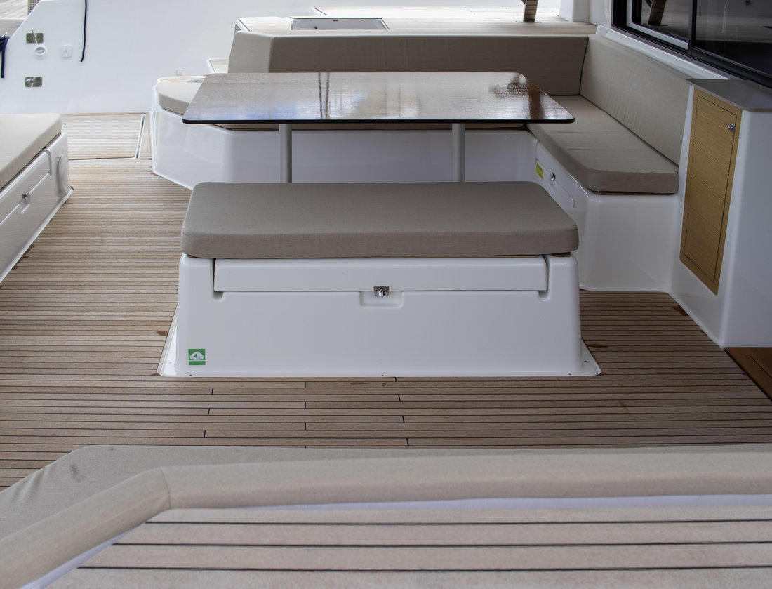 | Outside | Cockpitkühlschrank, Deckpolster, elektr. Winsch, Grill, hydraul. Gangway, Kühlschrank auf Flybridge, Teak im Cockpit, Teakdeck, Unterwasserbeleuchtung |