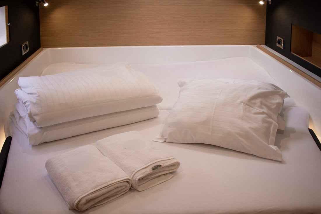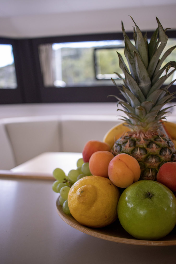 | Inside | Fäkalientank, FUSION Sound System, Gefrierschrank, Generator, Geschirrspüler, Heizung, Inverter 12V/220V, Kaffeemaschine, Klimaanlage (ohne Landstrombedarf), Kühlschrank, LED-Innenleuchten, Mikrowelle, TV, Ventilatoren in Kabinen, WC (elektr.) |