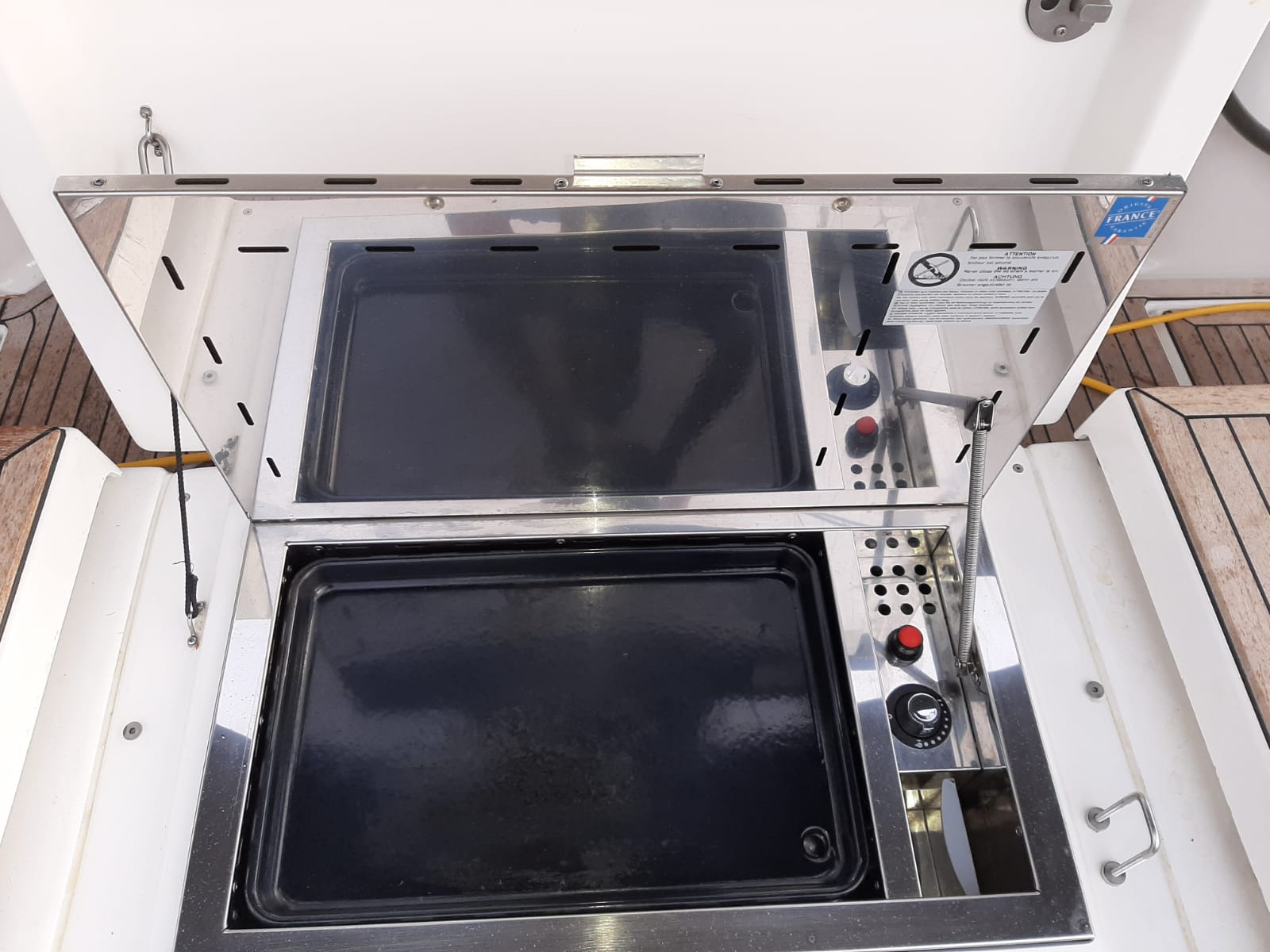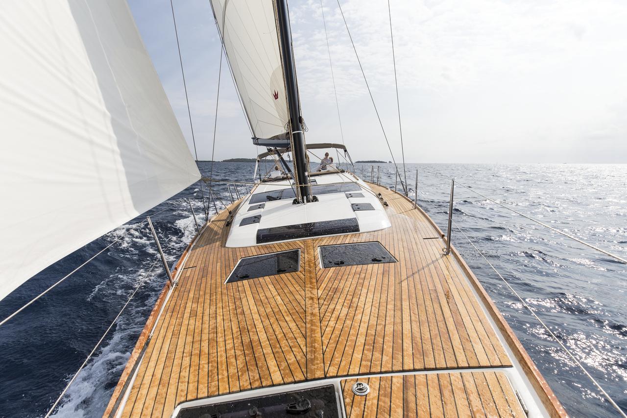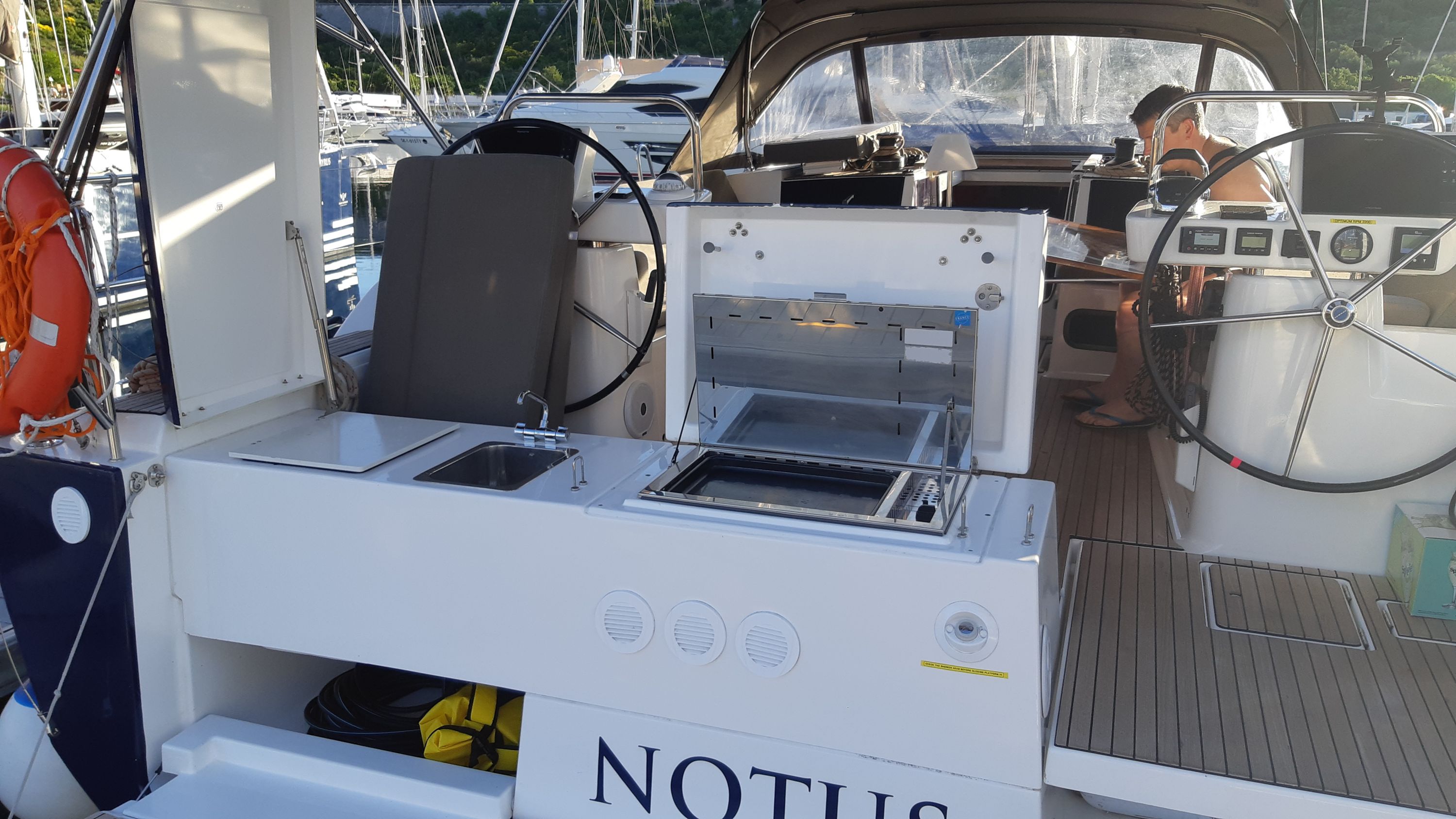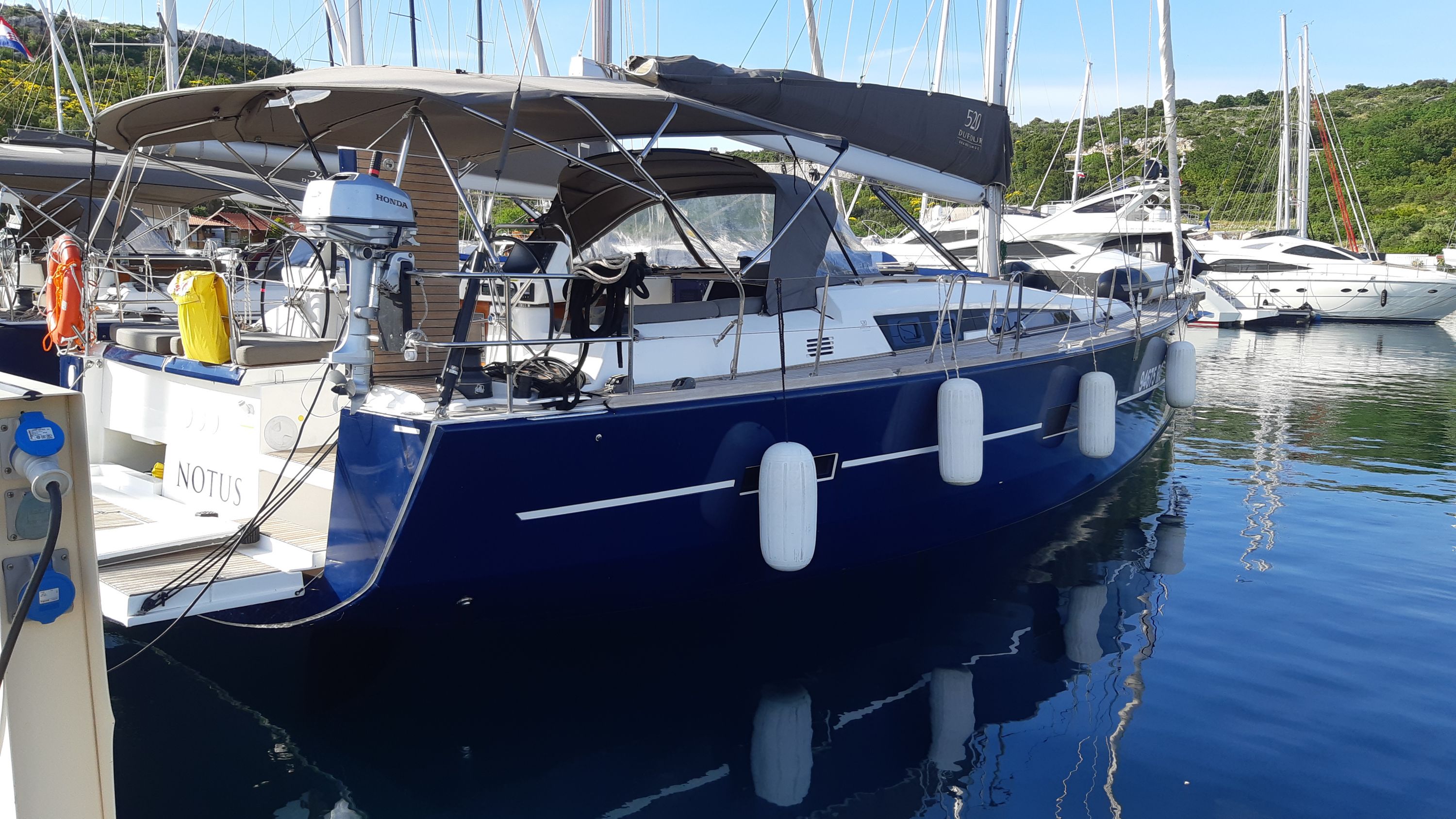 | Outside | Biminitop, Cockpitkühlschrank, Deckpolster, elektr. Großwinsch, Grill, Sprayhood, Teak im Cockpit, Teakdeck, Unterwasserbeleuchtung |