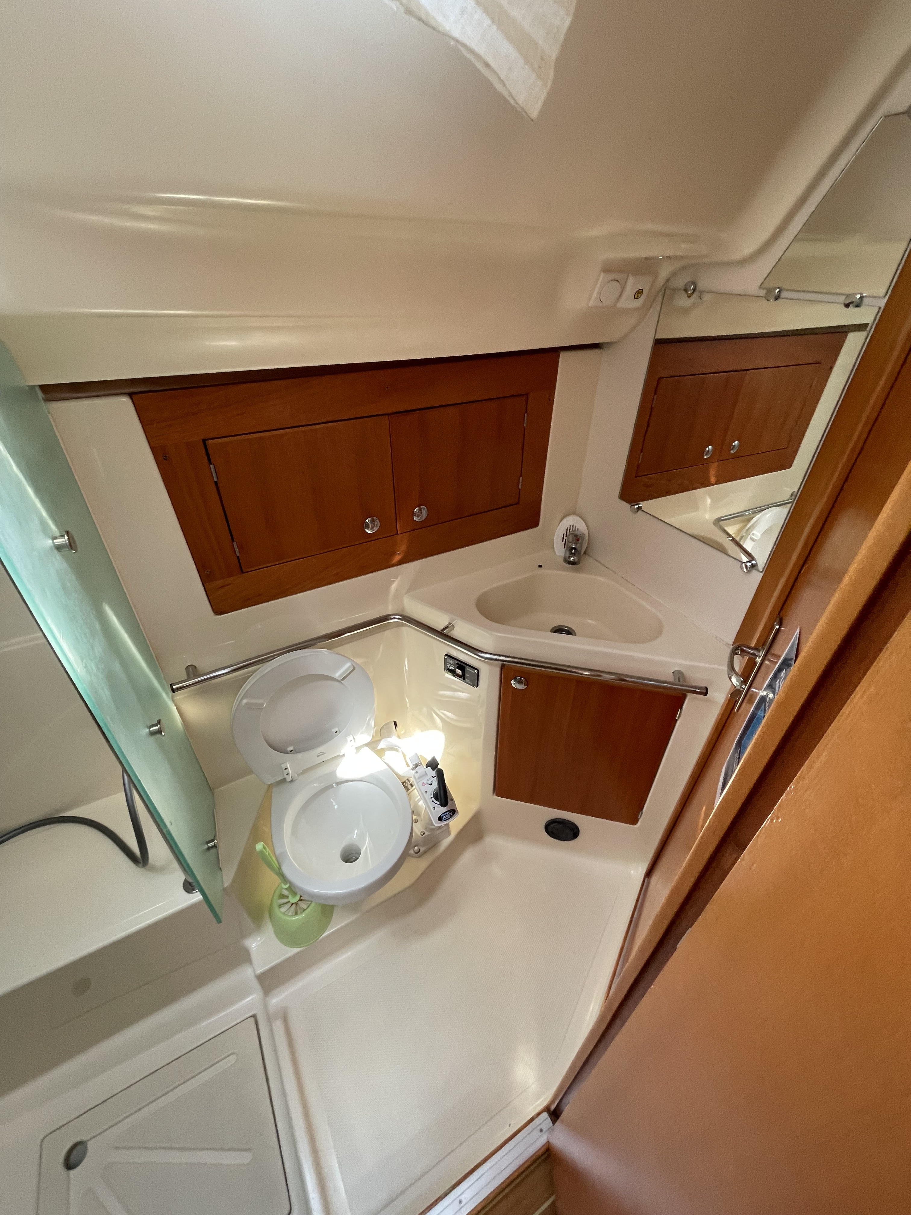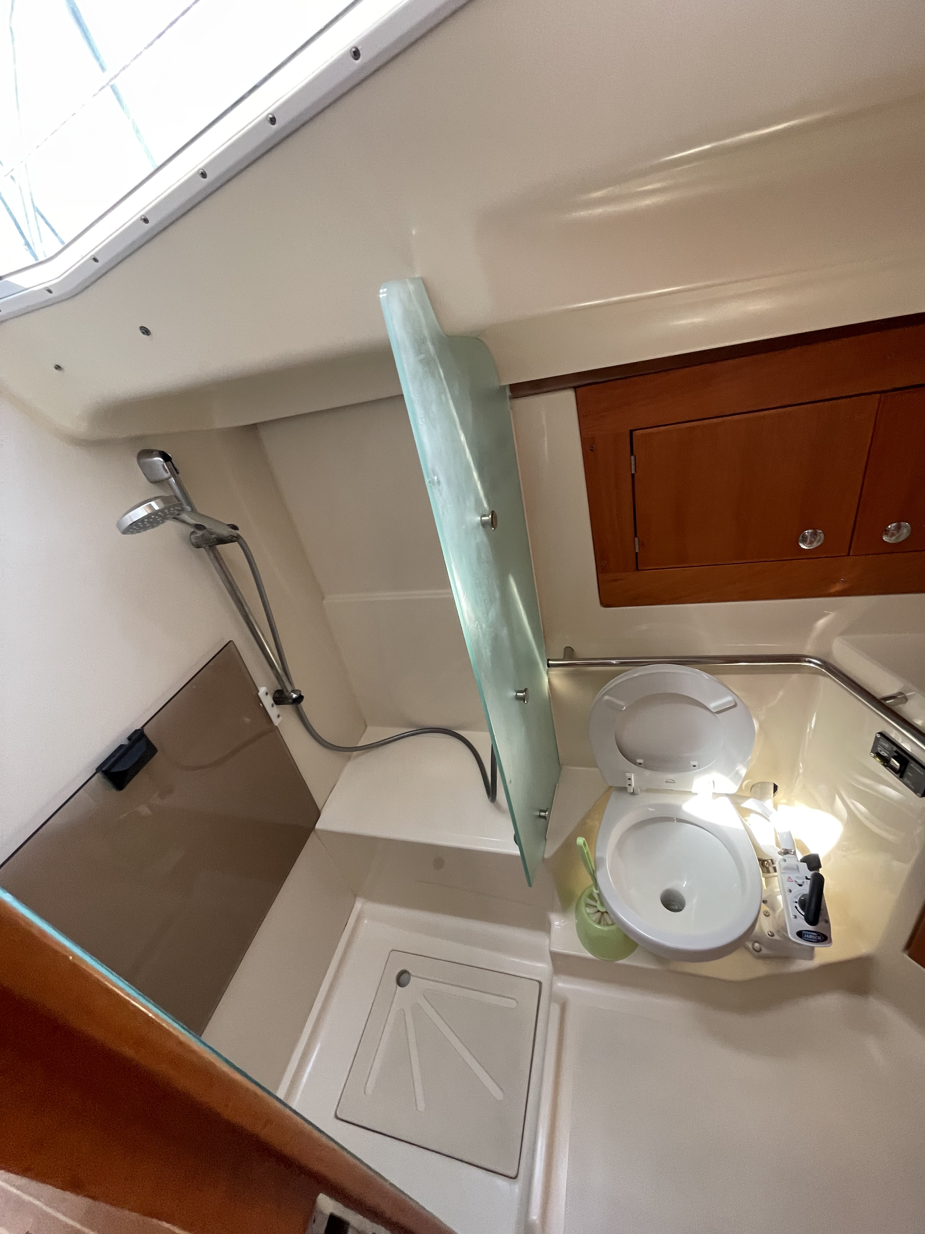 | Outside | Außendusche, Biminitop, Cockpitdusche, Cockpitlautsprecher, Cockpittisch, elektr. Ankerwinsch, Sprayhood |