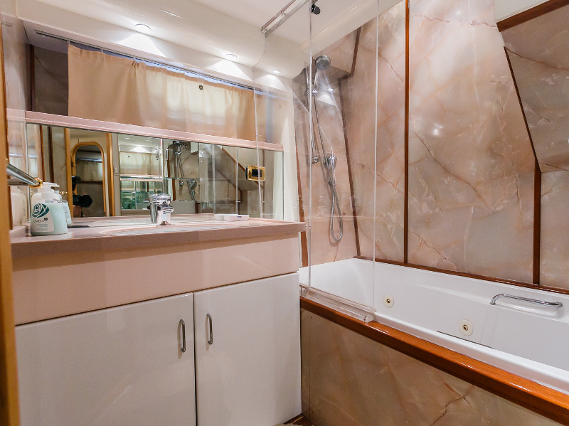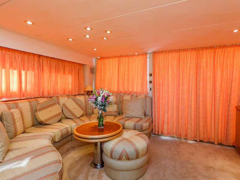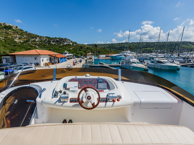 | Outside | 220 V-Landanschluss, Anker mit Kette, Badeleiter, Badeplattform, Biminitop, Cockpitdusche, elektr. Ankerwinsch, elektr. Davits, Fender, Festmacherleinen, Flybridge, Sonnendeck |