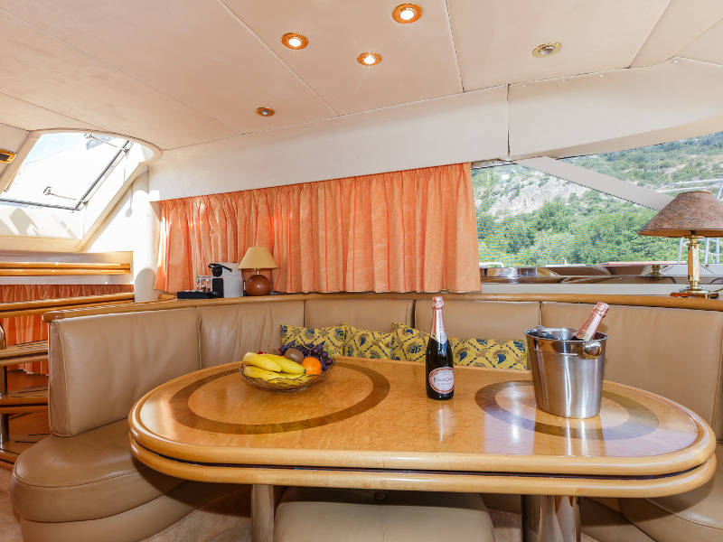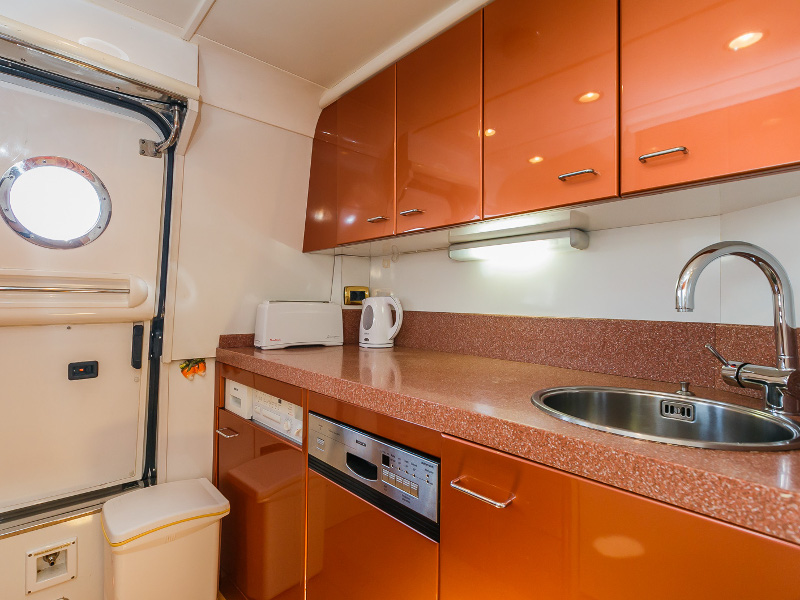 | Inside | Geschirr, Heizung, Kaffeemaschine, Klimaanlage (ohne Landstrombedarf), Ladegerät, Pantryausstattung, Radio mit CD und MP3, Warmwasser, Wasserkocher, Watermaker, WC (elektr.) |