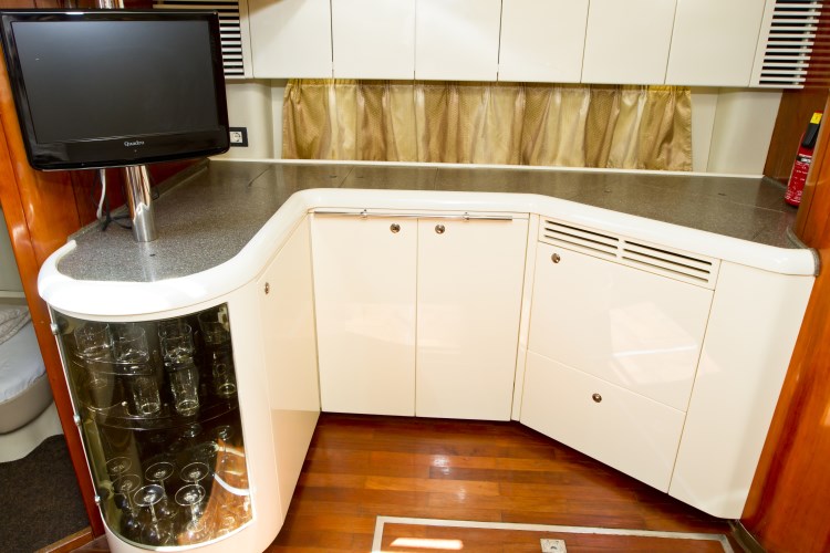 | Inside | DVD-Player, Eiswürfelmaschine, Generator, Geschirr, Herd mit Ceranfeld, Kaffeemaschine, Klimaanlage (ohne Landstrombedarf), Kühlschrank, Ladegerät, Pantryausstattung, Radio mit CD und USB, Warmwasser, WC (elektr.) |