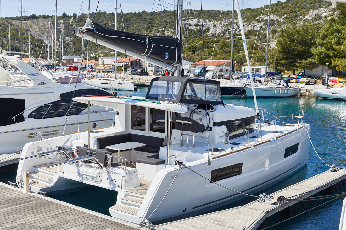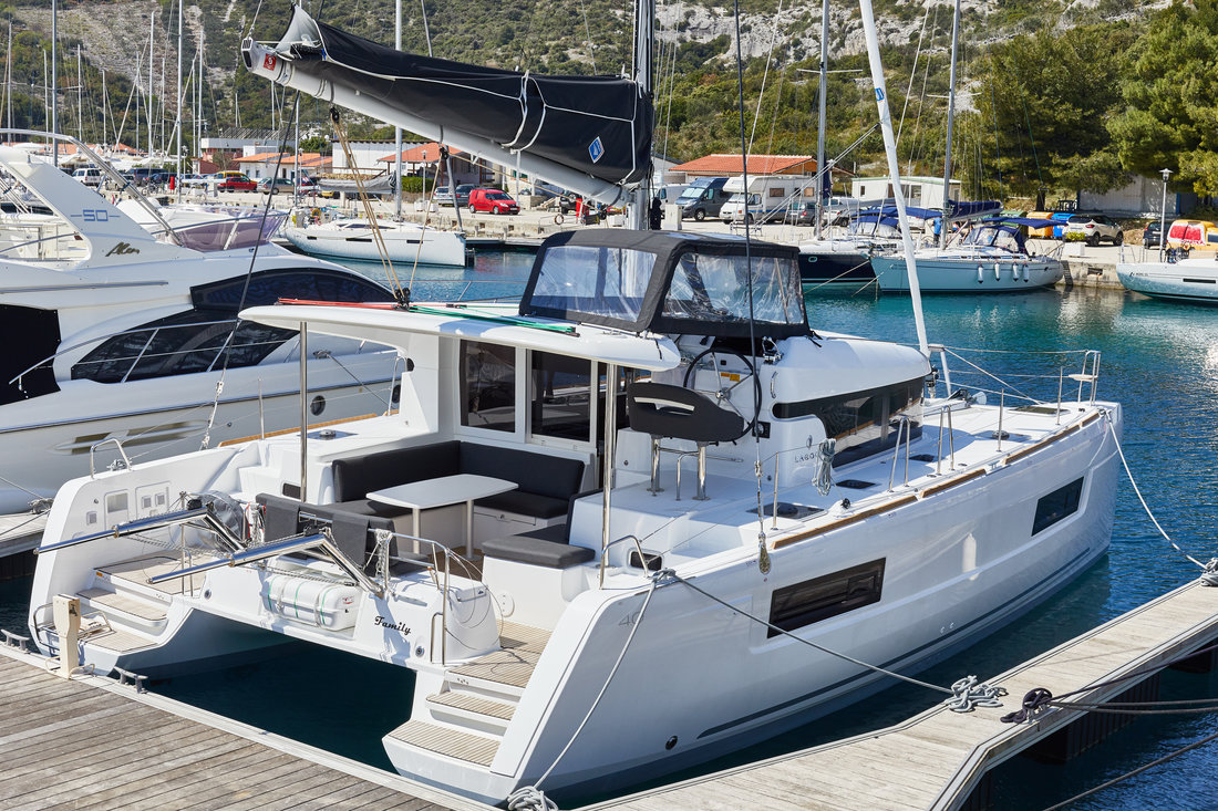 220 V-Landanschluss, Badeleiter, Biminitop, Bootshaken, Cockpitdusche, Cockpitlautsprecher, Cockpitpolster, Cockpittisch, Delta-Anker, elektr. Ankerwinsch, Fender, Festmacherleinen, Gangway, Solaranlage, Sonnendeck, Unterwasserbeleuchtung, Wasserschlauch, Winschen |