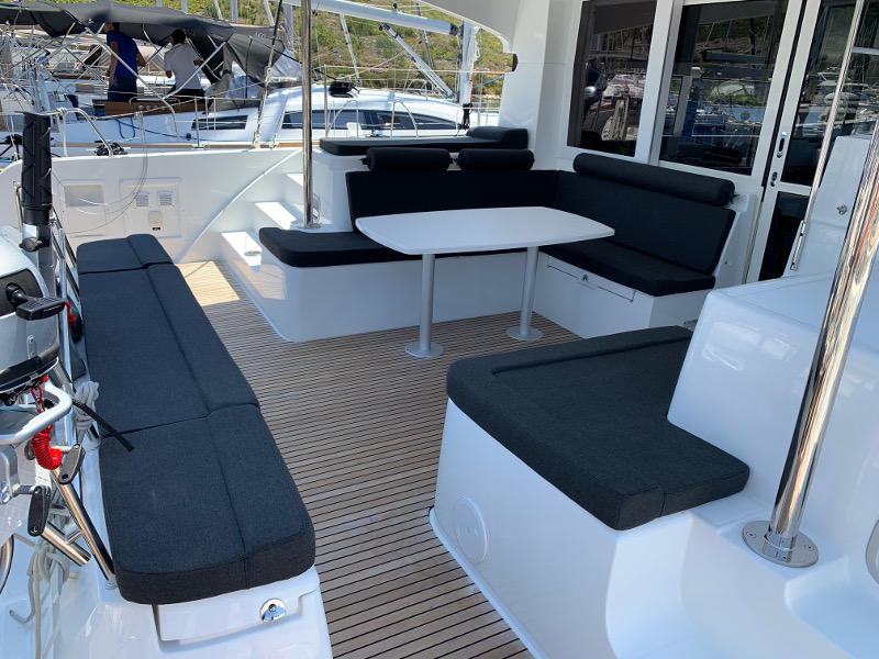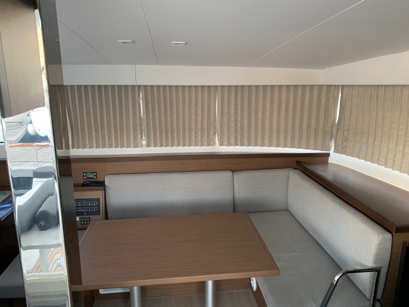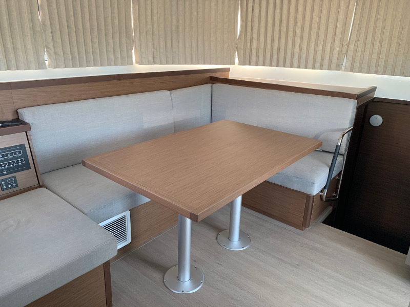 | Outside | 12 V-Anschluss, 220 V-Landanschluss, Anker mit Kette, Badeleiter, Biminitop, Cockpitdusche, Cockpitlautsprecher, Cockpitpolster, Cockpittisch, Deckpolster, Flybridge, Teak im Cockpit |