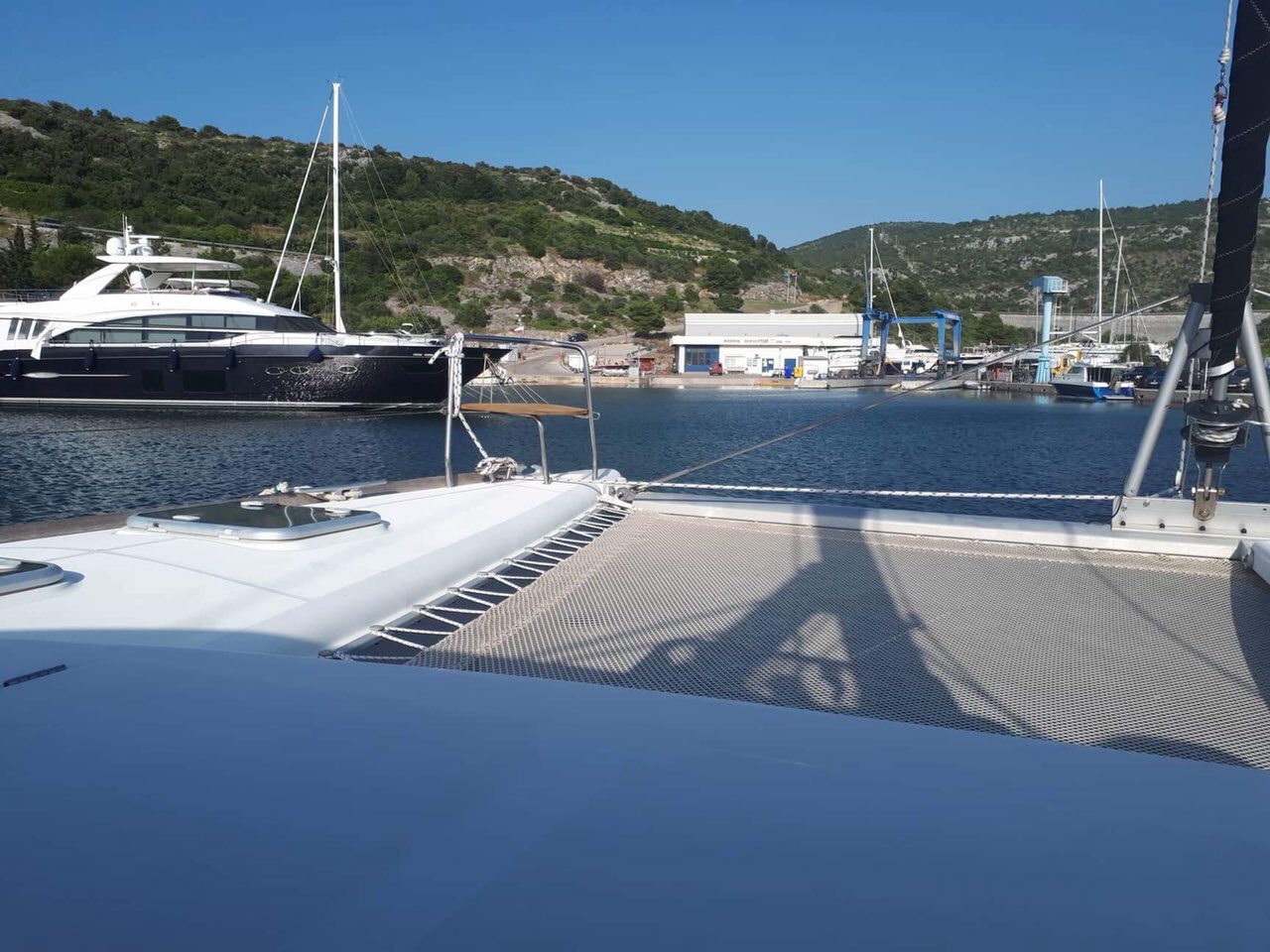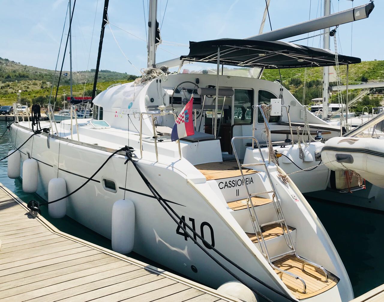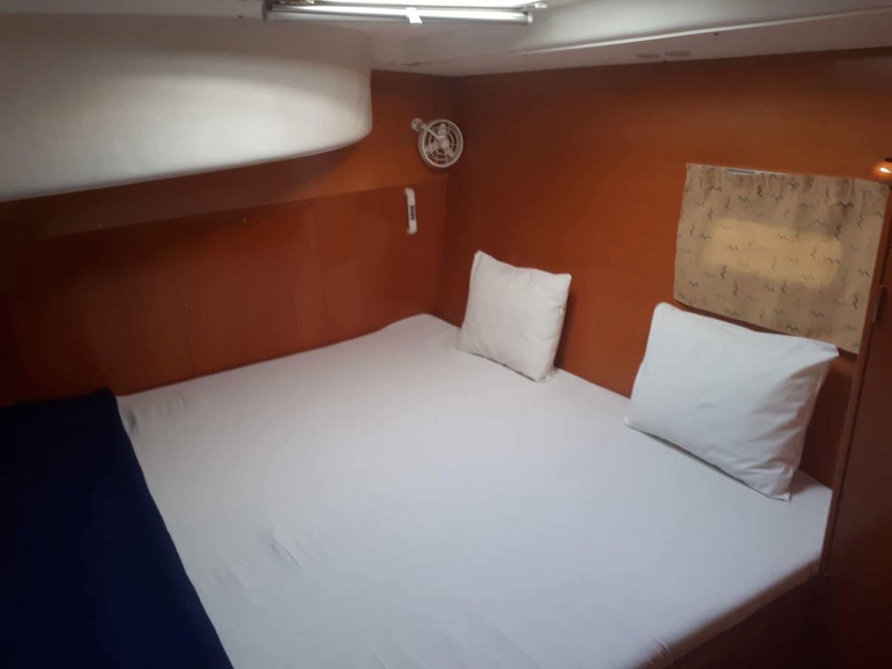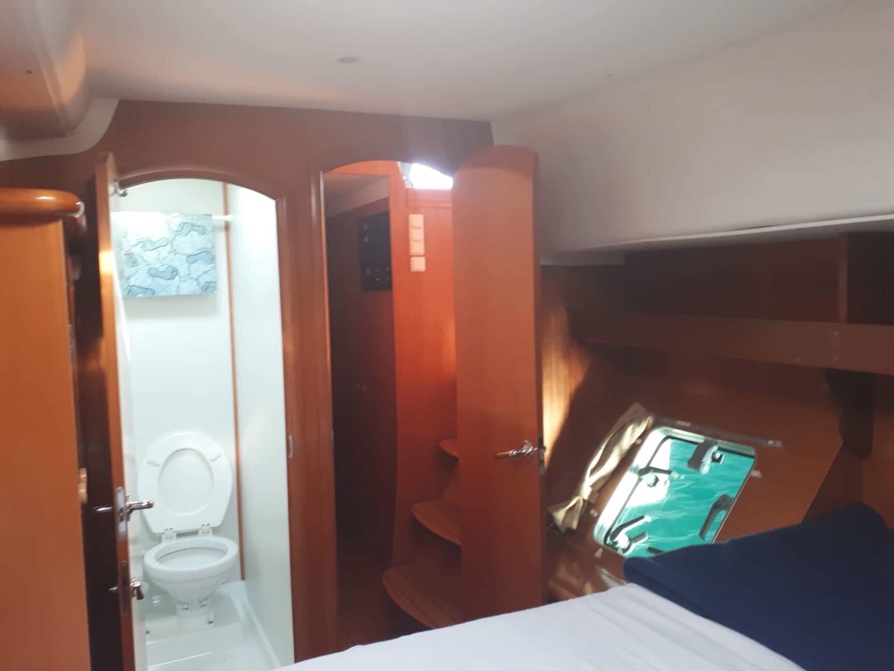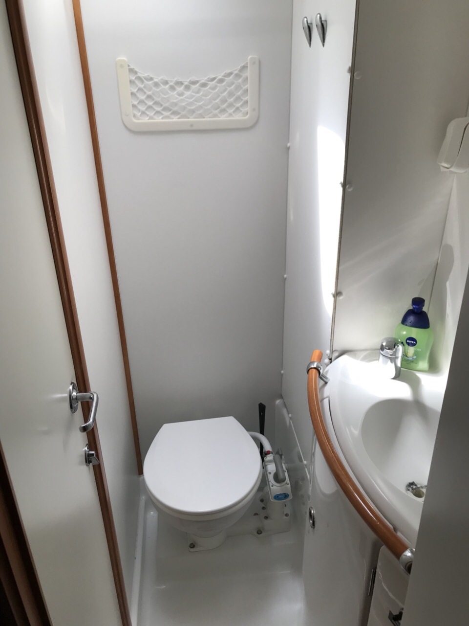 | Navigation | Barometer, Fernglas, GPS mit Kartenplotter im Salon, Hafenhandbücher, Handpeilkompass, Kompass, Seekarten, Sumlog, Tridata (Log, Echolot, Windm.) |