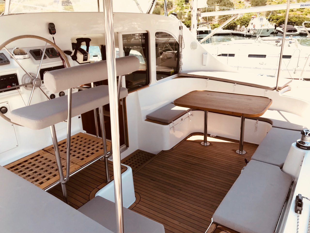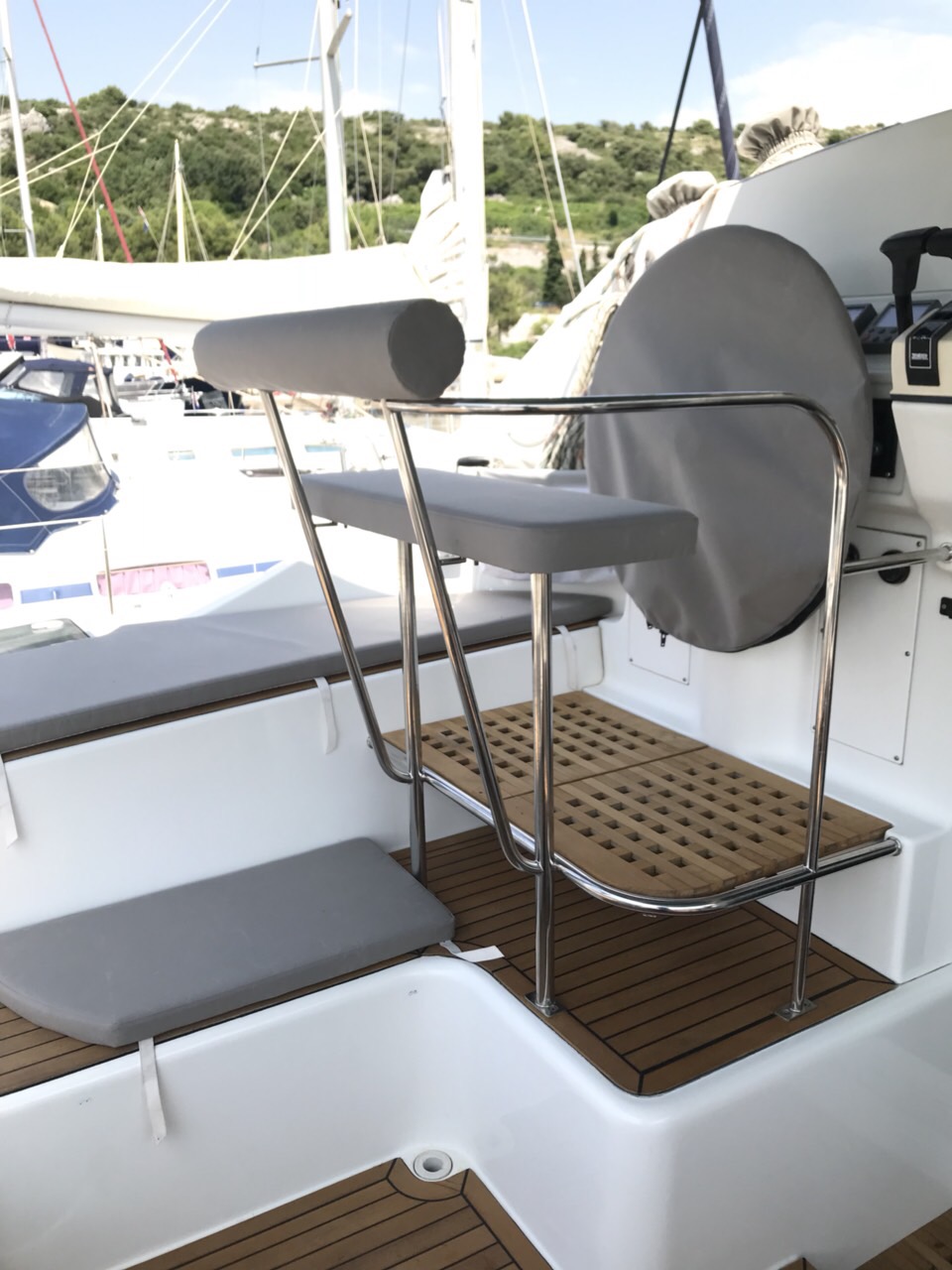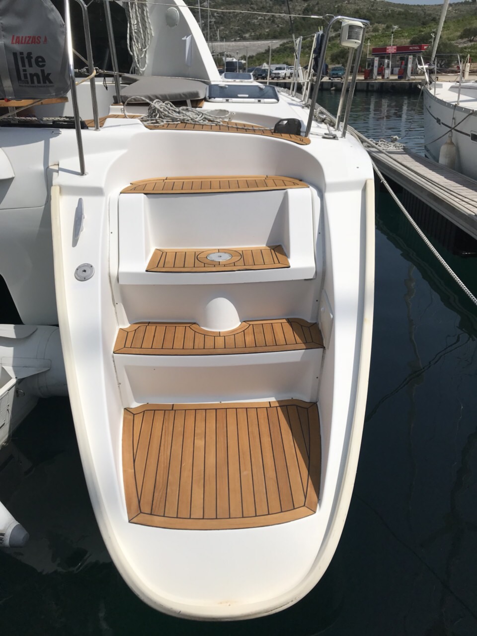 | Outside | Anker mit Kette, Badeleiter, Biminitop, Cockpitlautsprecher, Cockpittisch, elektr. Ankerwinsch, Gangway, Teakdeck, Windex |