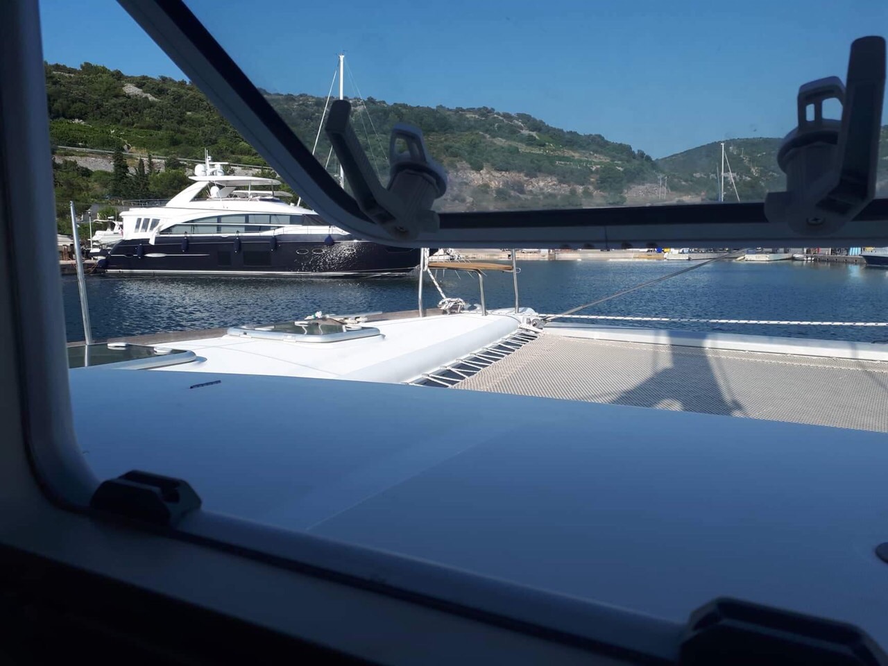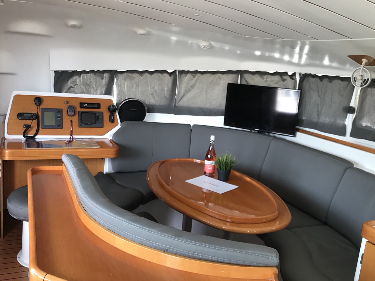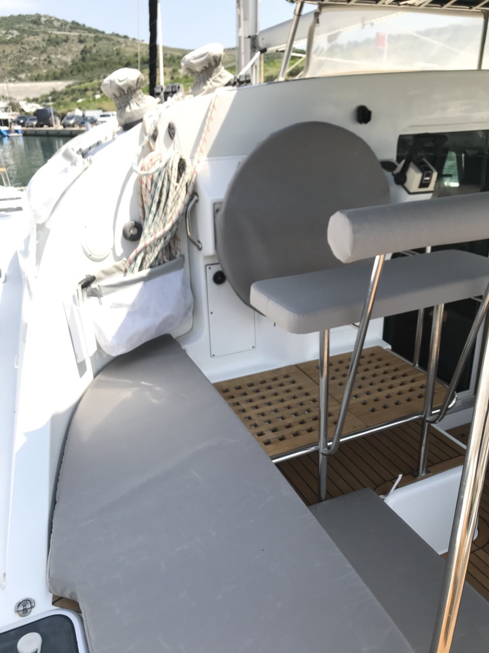| Outside | Anker mit Kette, Badeleiter, Biminitop, Cockpitlautsprecher, Cockpittisch, elektr. Ankerwinsch, Gangway, Teakdeck, Windex |