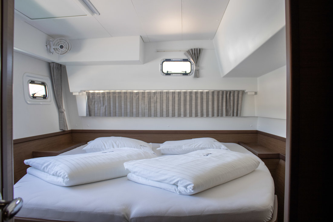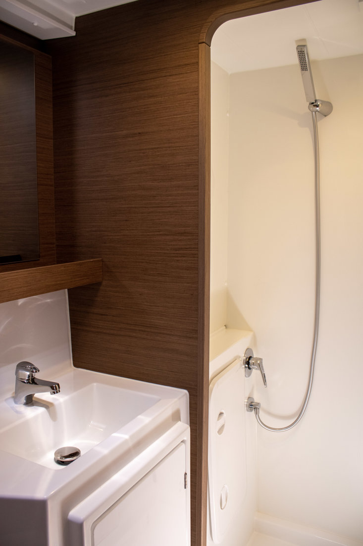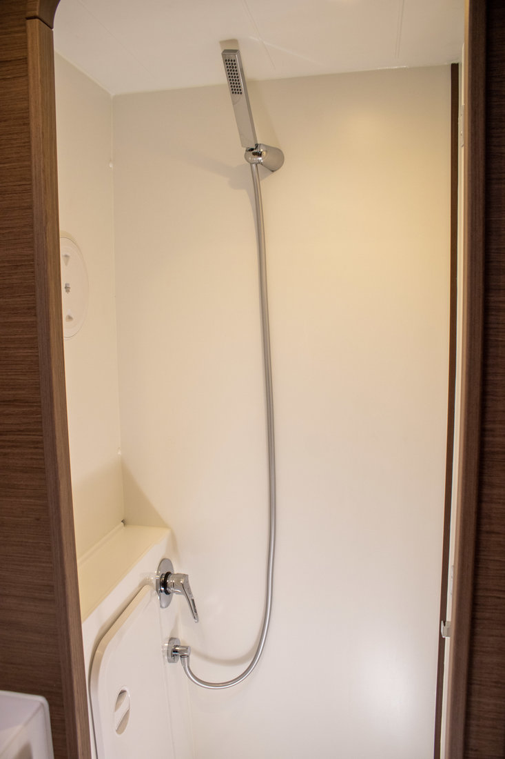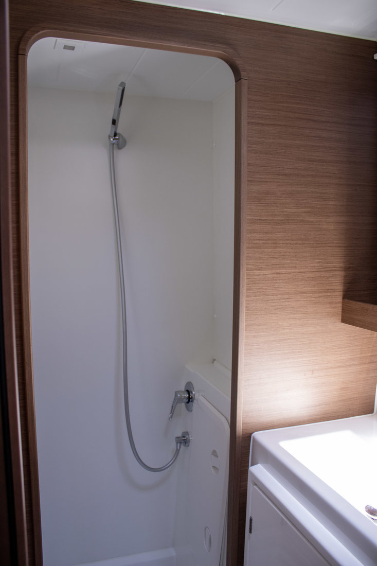 Backofen, Gasherd, Heizung, Inverter 12V/220V, Kaffeemaschine, Klimaanlage (Landstrom), Kühlschrank, Ladegerät, Pantryausstattung, Radio mit Bluetooth, Salontisch absenkbar, TV, Ventilatoren in Kabinen, Warmwasser |