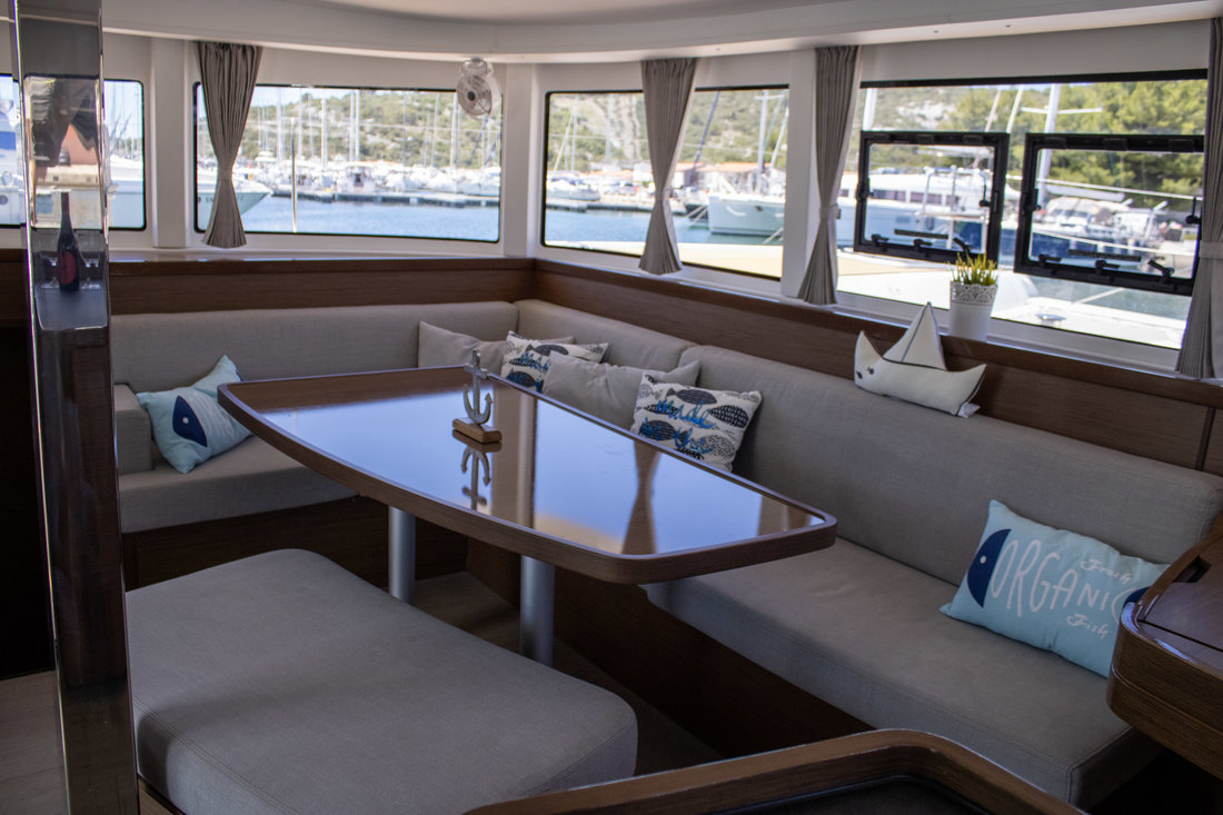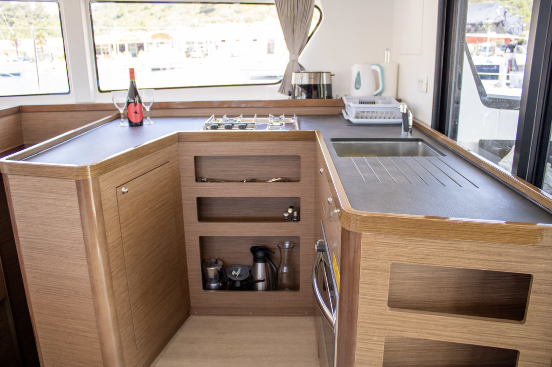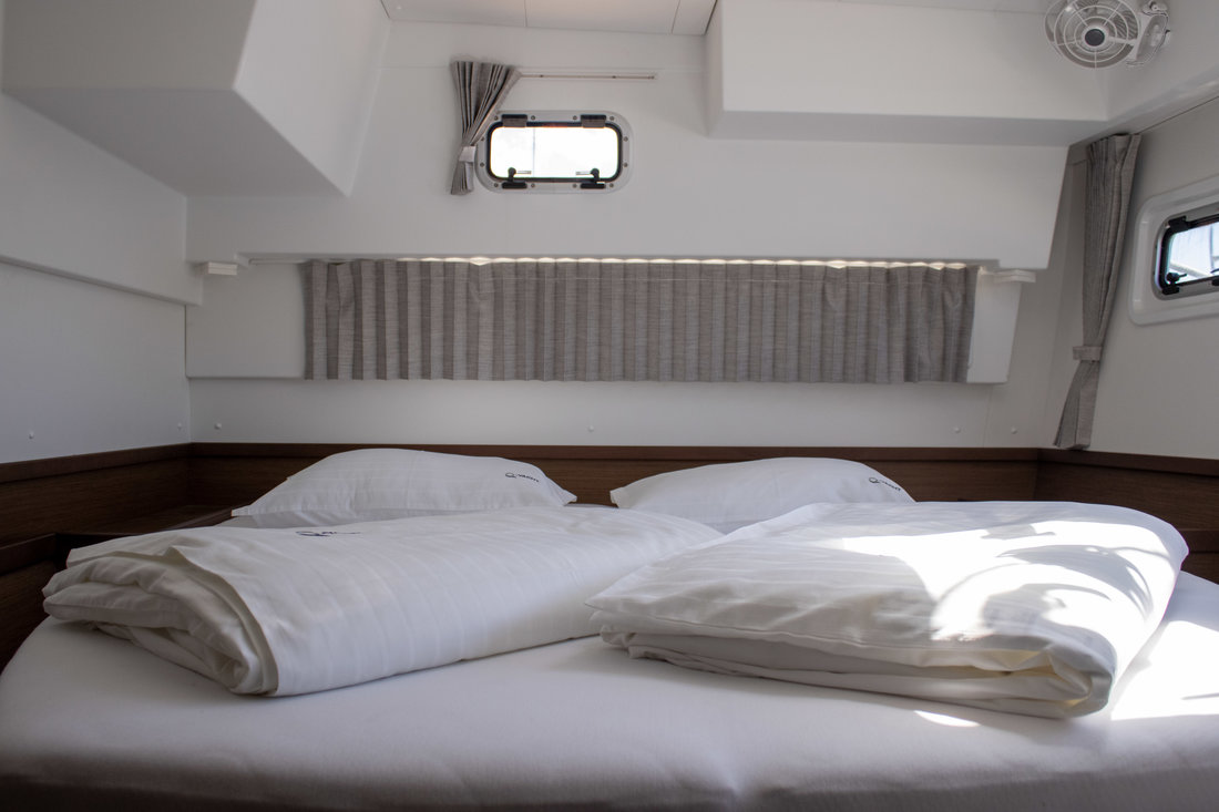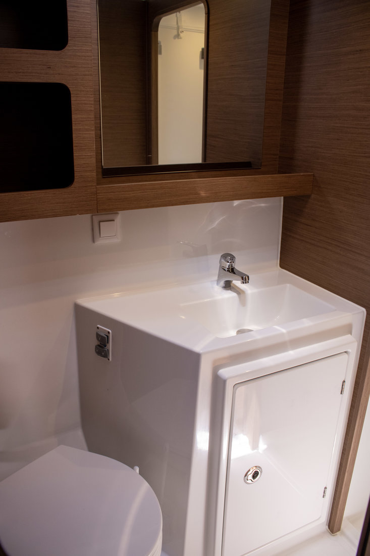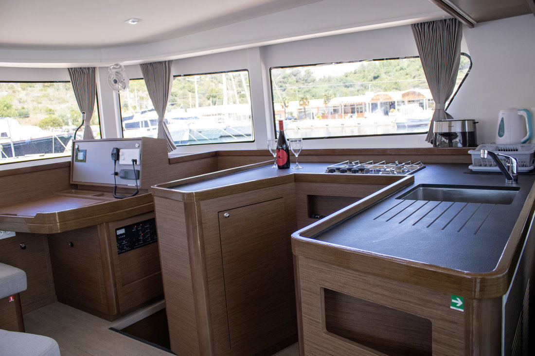 Backofen, Gasherd, Heizung, Inverter 12V/220V, Kaffeemaschine, Klimaanlage (Landstrom), Kühlschrank, Ladegerät, Pantryausstattung, Radio mit Bluetooth, Salontisch absenkbar, TV, Ventilatoren in Kabinen, Warmwasser |