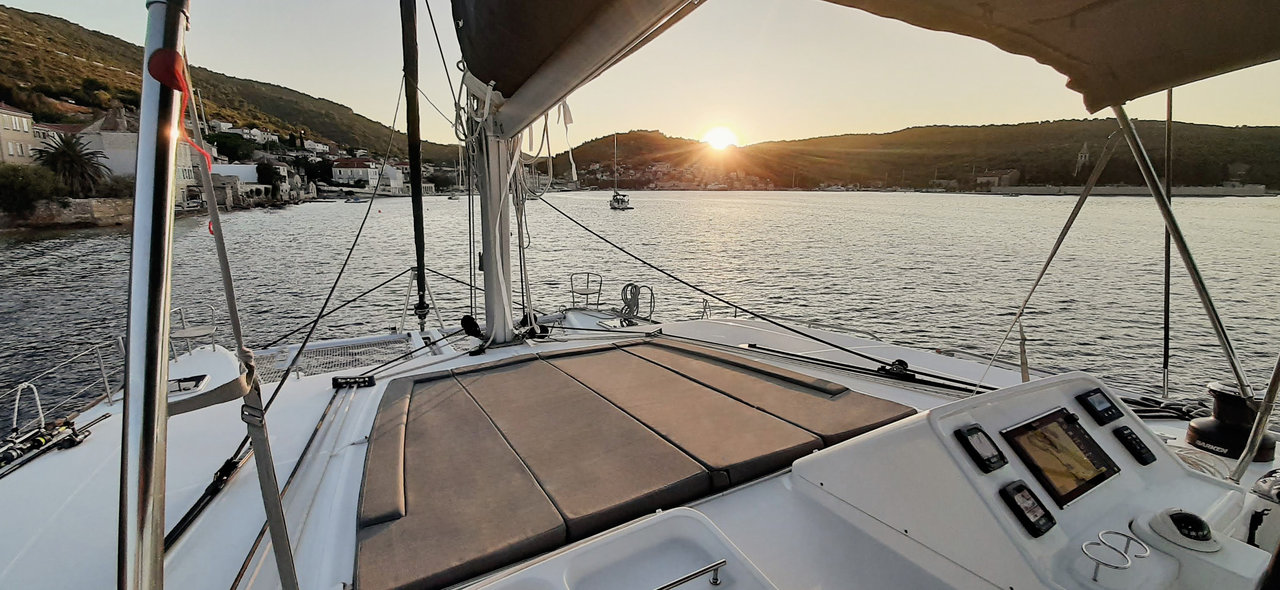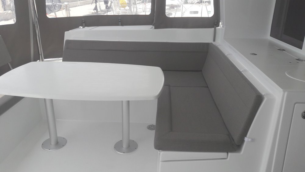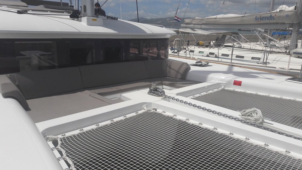 | Outside | Anker mit Kette, Anker mit Seil, Ankerkettenzähler, Biminitop, Bootshaken, Cockpitdusche, Cockpitkühlschrank, Cockpitlautsprecher, Cockpittisch, elektr. Ankerwinsch, elektr. Winsch, Festmacherleinen, Kugelfender, Wasserkanister , Wasserschlauch, Winschen |