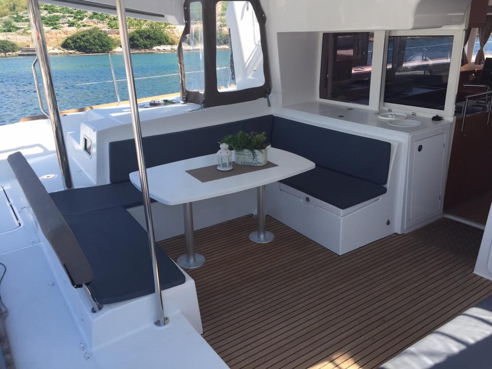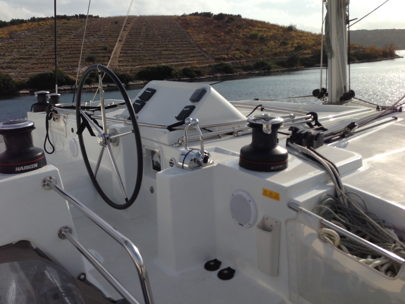 | Outside | Biminitop, Cockpitdusche, Cockpittisch, elektr. Ankerwinsch, elektr. Großwinsch, Gangway, Sprayhood, Teak im Cockpit |